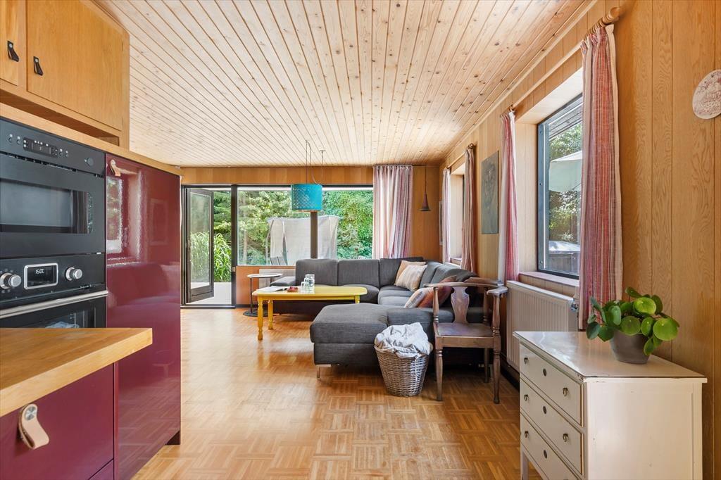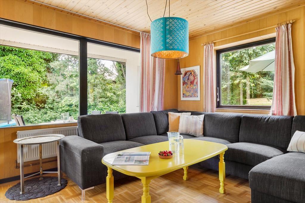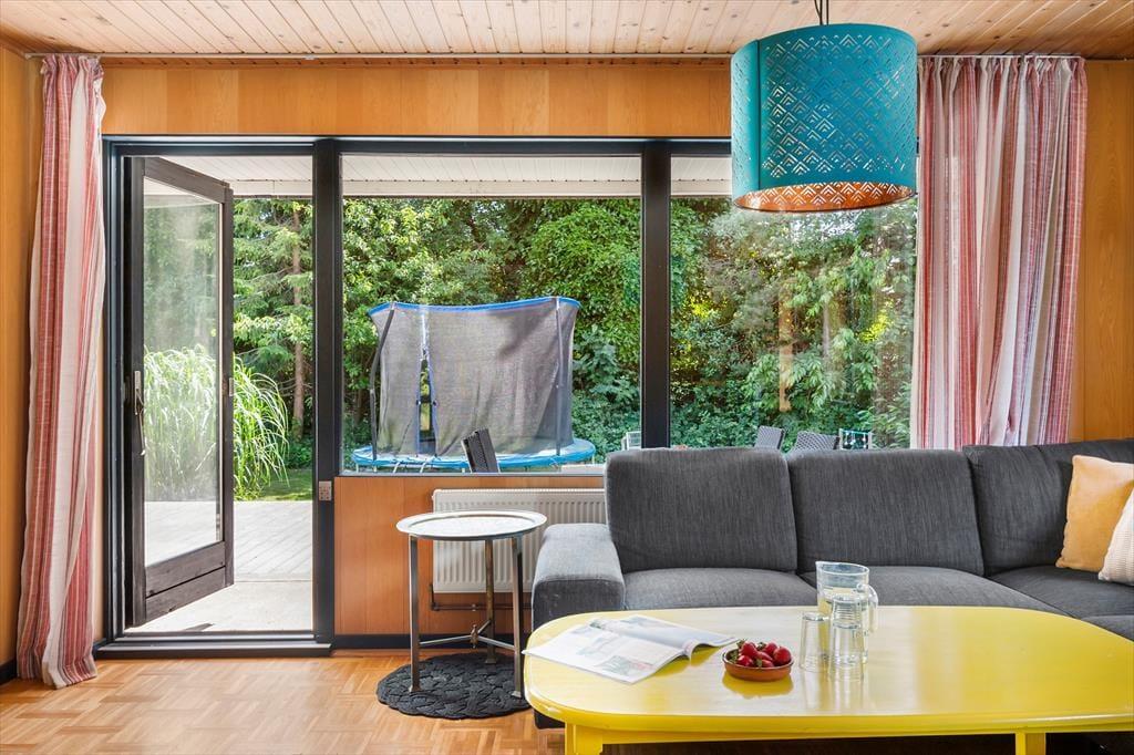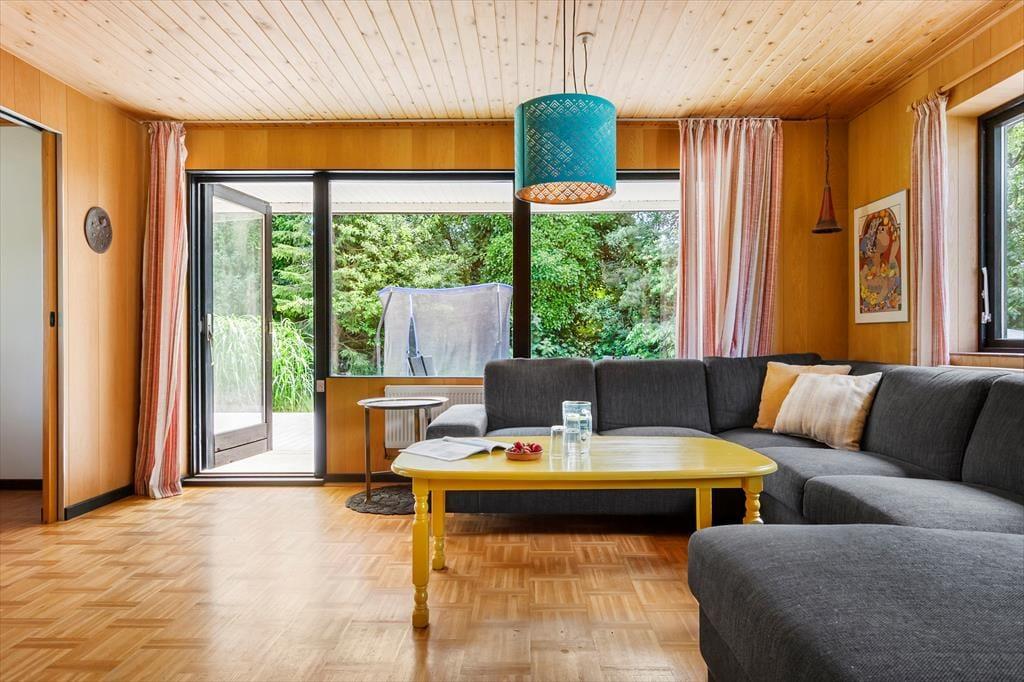 Dette autentiske sommerhus emmer af nostalgi og retro, hvor den originale atmosfære er bevaret. Indretningen tager dig tilbage i tiden, men med moderne komfort, så ferien bliver både hyggelig og afslappende. I den indbydende opholdsstue kan du synke ned i de komfortable møbler og nyde udsigten til haven. Herfra er der direkte udgang til terrassen, der forlænger opholdsrummet ud i det fri.