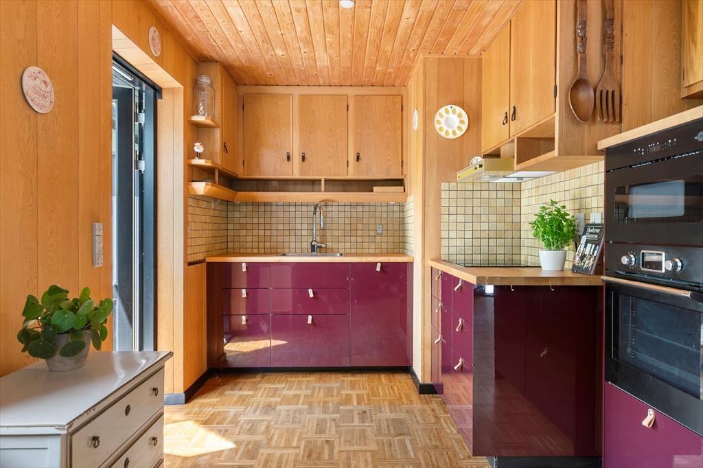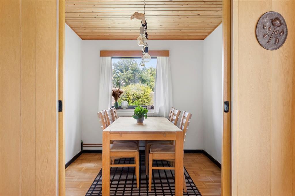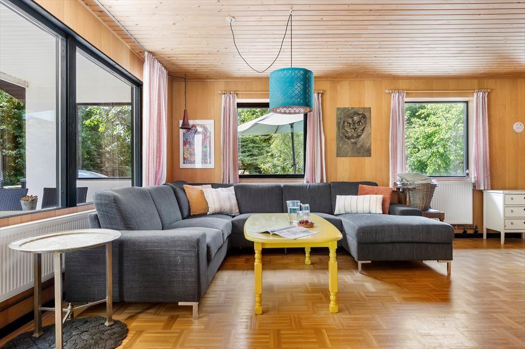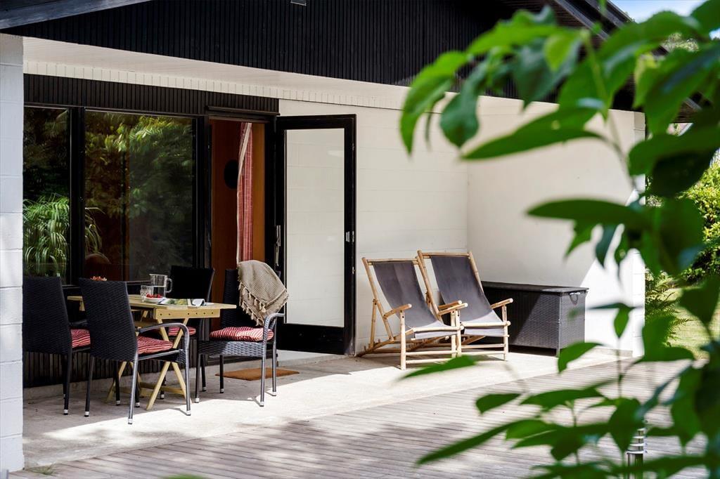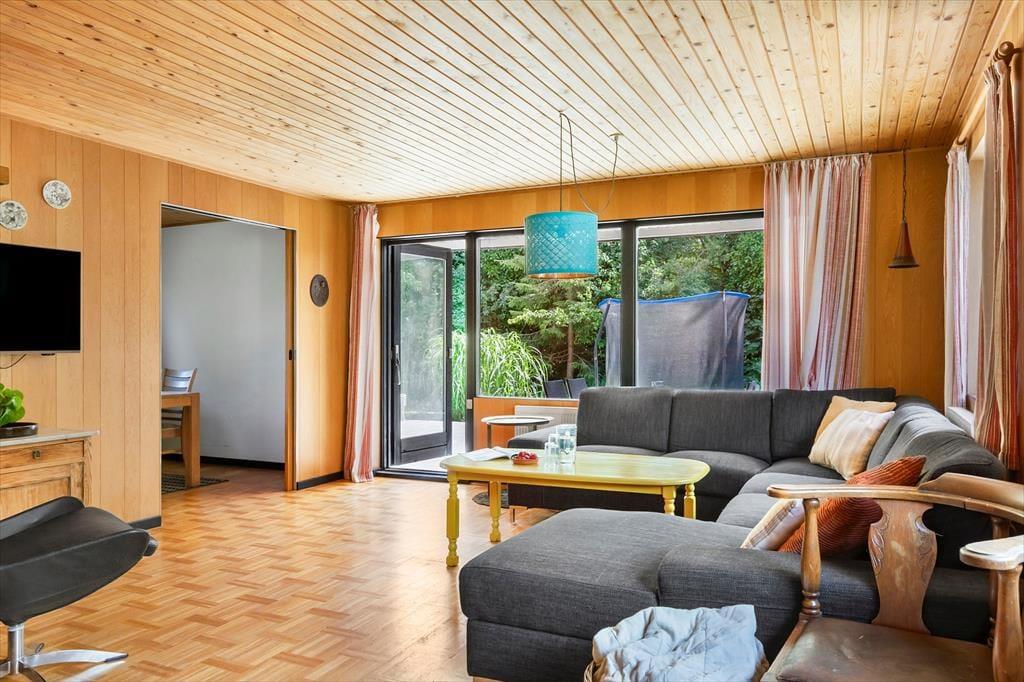 Dette autentiske sommerhus emmer af nostalgi og retro, hvor den originale atmosfære er bevaret. Indretningen tager dig tilbage i tiden, men med moderne komfort, så ferien bliver både hyggelig og afslappende. I den indbydende opholdsstue kan du synke ned i de komfortable møbler og nyde udsigten til haven. Herfra er der direkte udgang til terrassen, der forlænger opholdsrummet ud i det fri.
