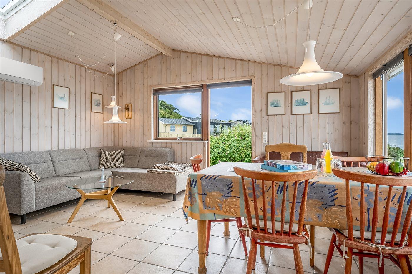 Charmerende sommerhus i Hvalpsund med terrasse og tæt på fjord og strand.