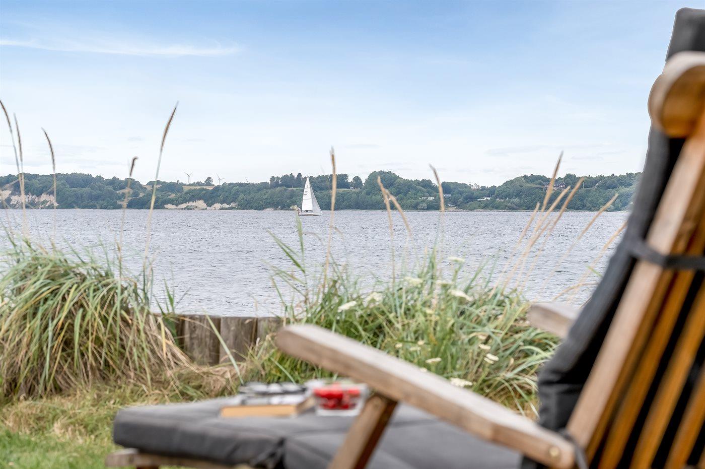 Sommerhus med fjordudsigt og strandnær terrasse