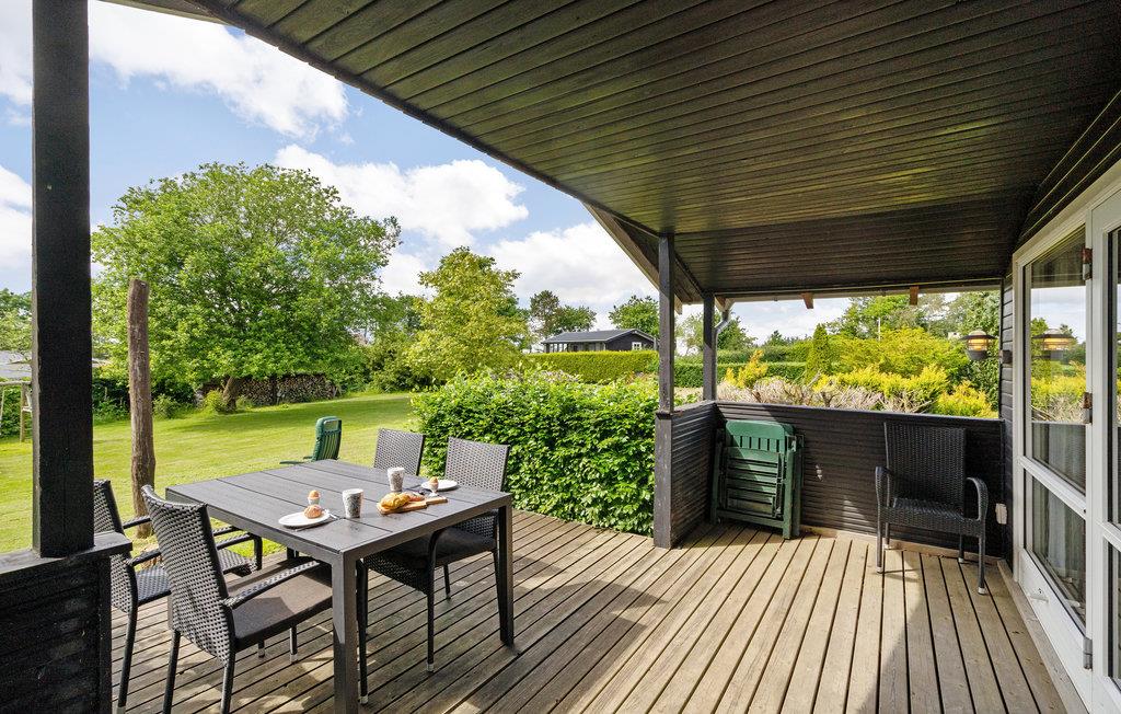 Læn jer tilbage på den delvist overdækkede terrasse. Senere kan I alle samles ved bålpladsen. Det er dejligt praktisk, at I også kan lade jeres bil ved huset.
