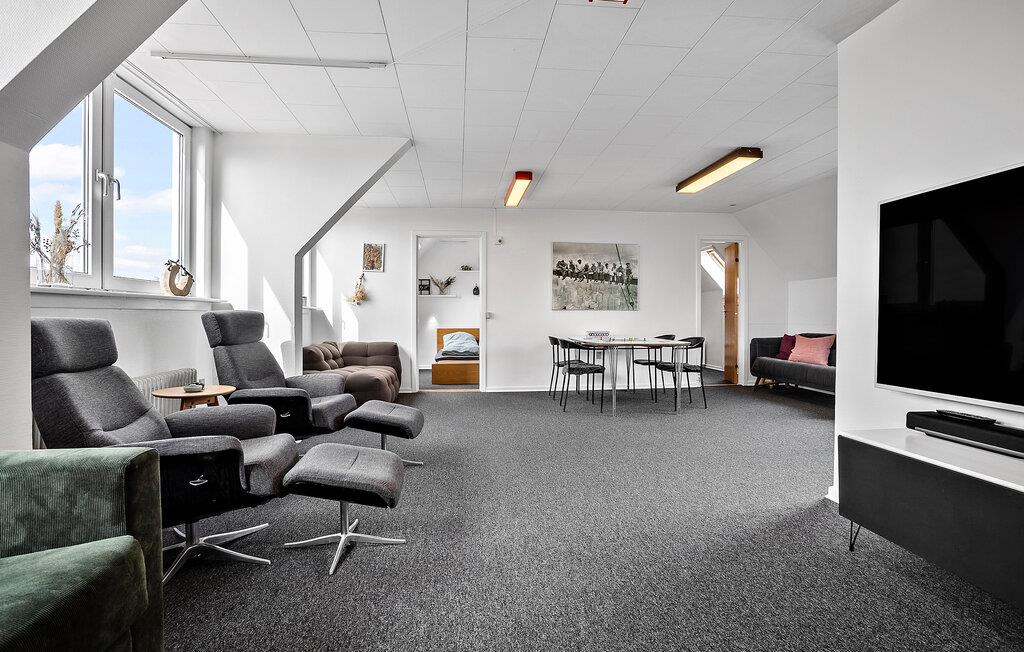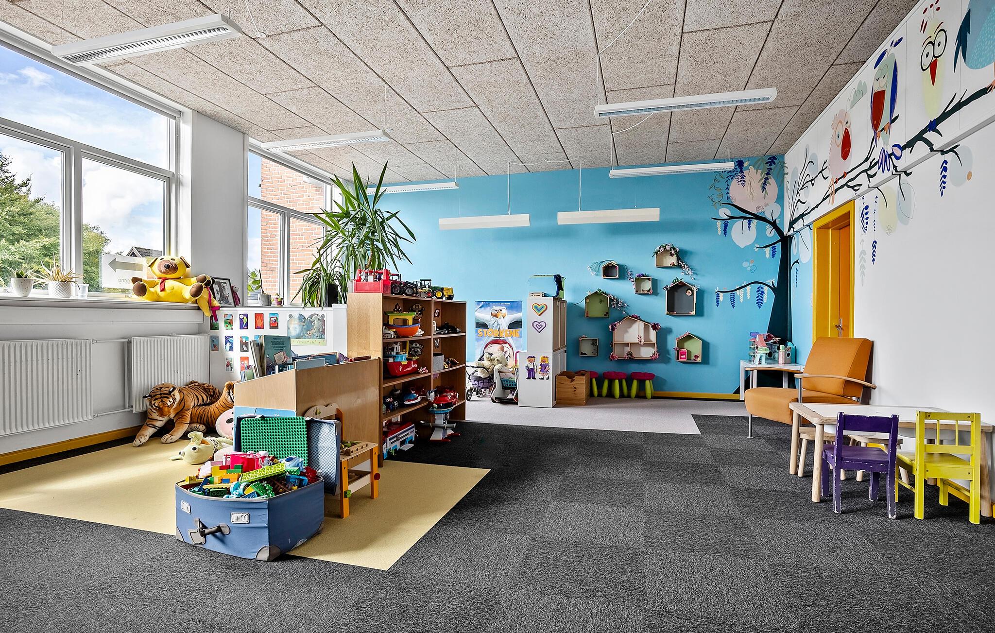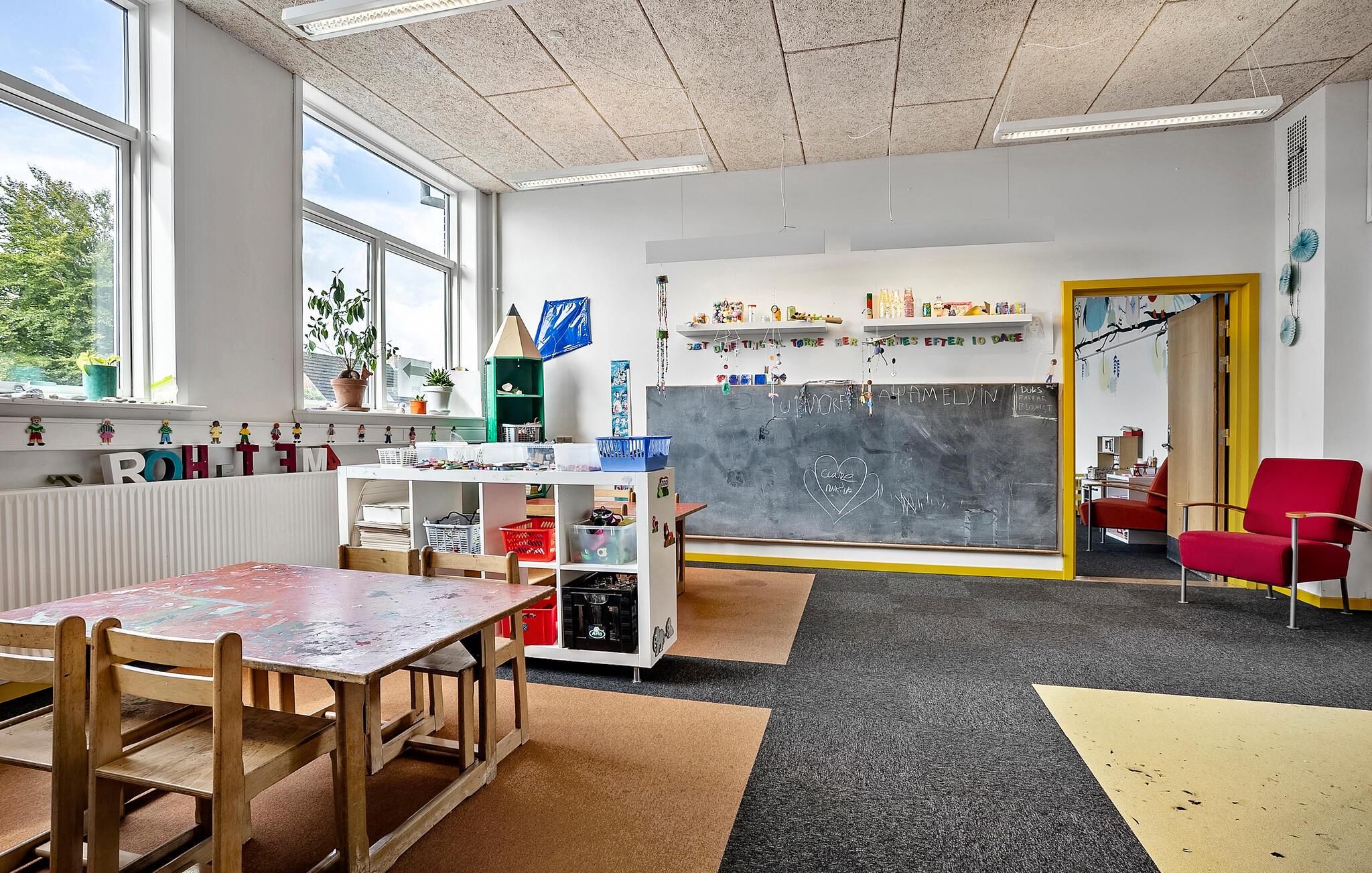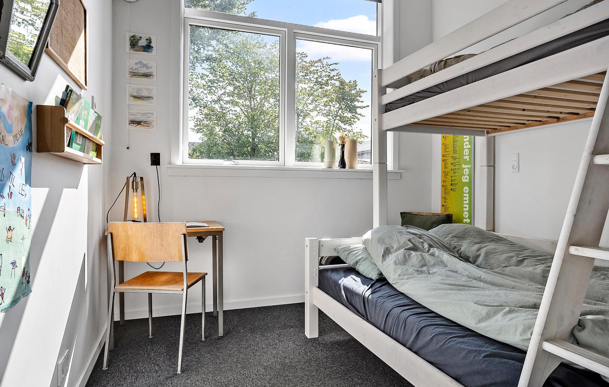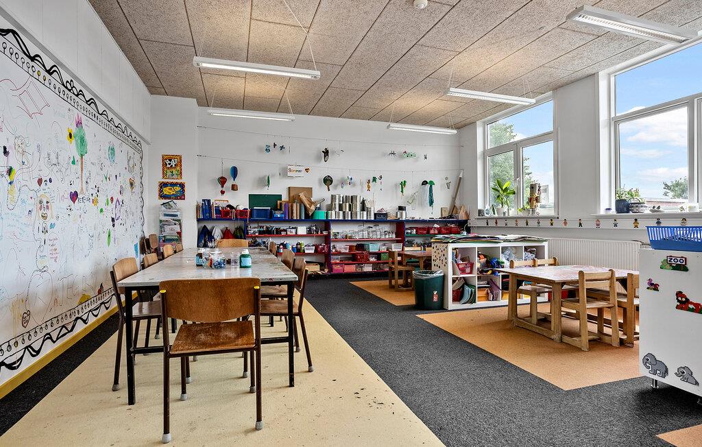 Hvad med en ferie på en skole? Bare rolig: Her er ingen lektier, bare masser af plads, spil, fællesskab og afslapning. Velkommen til den tidligere skole i Hvidbjerg, vest for Skive. Her lærer I især én ting, nemlig hvordan I virkelig nyder jeres ferie. De tidligere klasseværelser rummer nu lyse fællesrum med hyggelige siddeområder, spilleborde og stilleområder. Selv charmen fra skolens gange er bevaret. Brug det store, moderne køkken med kogeø til kreative madlavningstimer med hele familien. I grupperummene kan nogle lave kreative aktiviteter sammen, mens andre kan slappe af. Idrætstimerne afholdes i skolens gamle gymnastiksal, der tilbyder mange muligheder for fysisk udfoldelse.