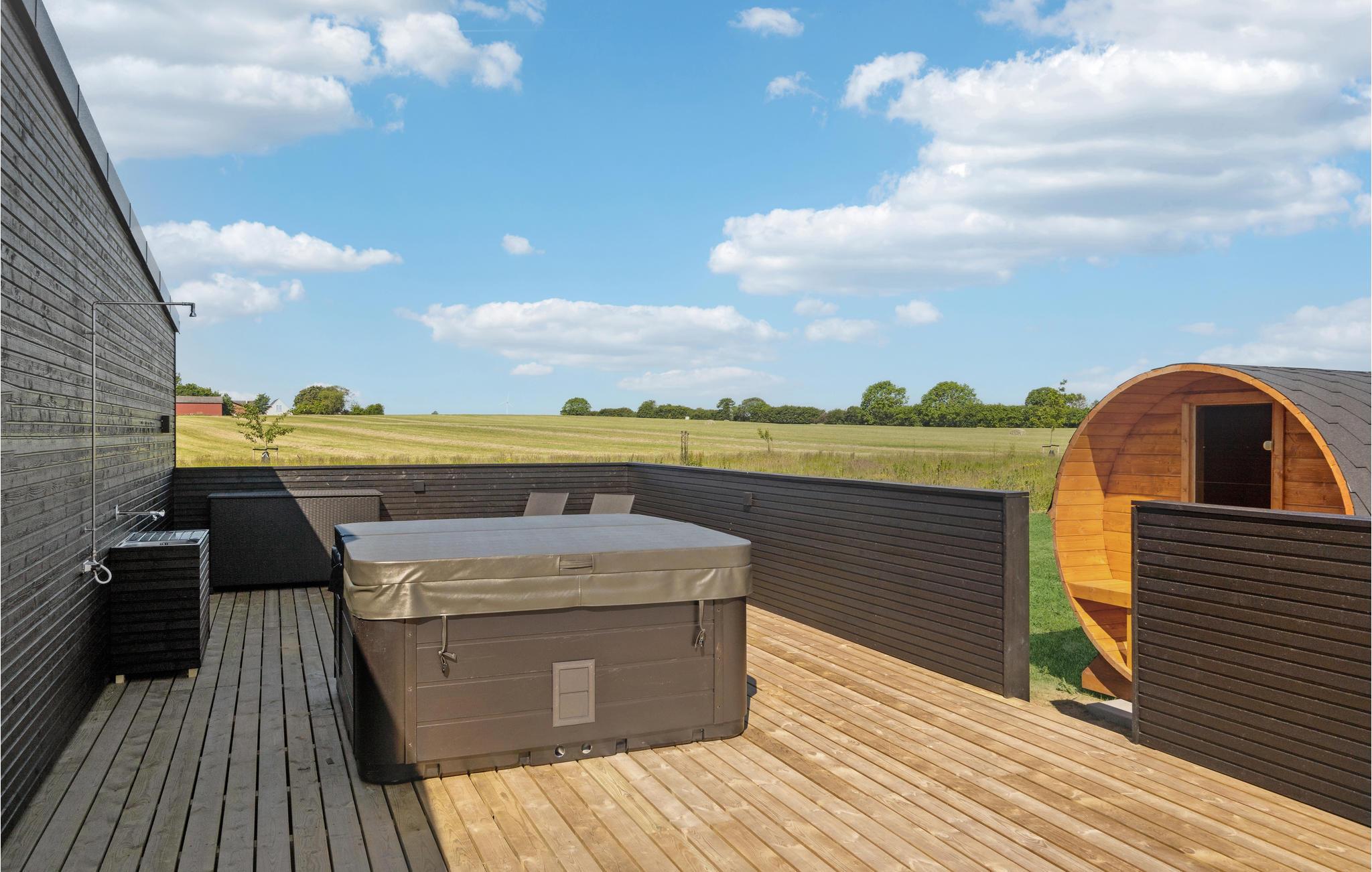 Topmoderne feriehus ved Hvidbjerg Strand med jacuzzi, sauna og fantastisk udsigt til Vejle Fjord.