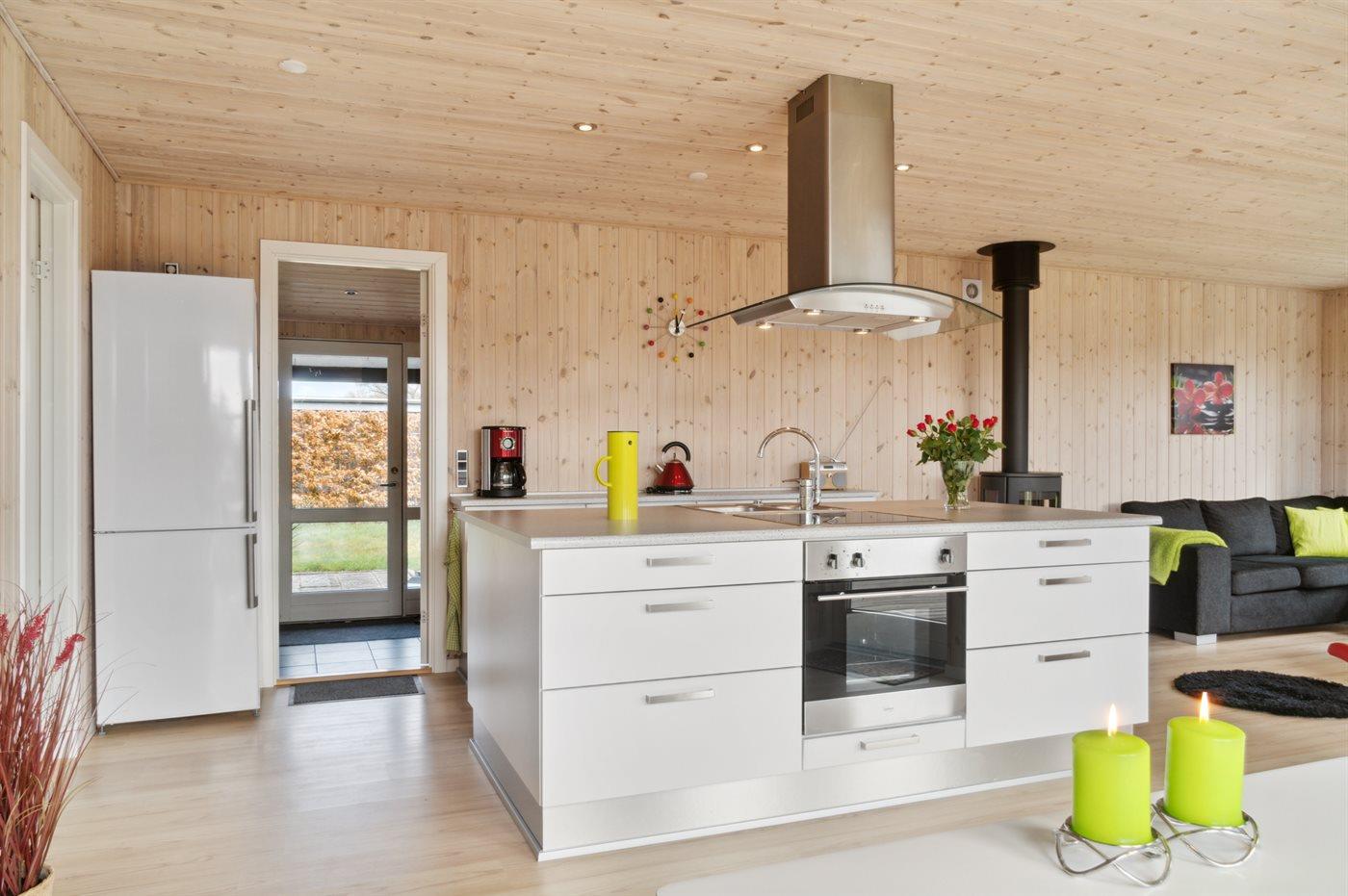 Køkkenet er udstyret med 1 køleskab. Der er 4 keramiske kogeplader, varmluftovn, mikrobølgeovn samt opvaskemaskine.