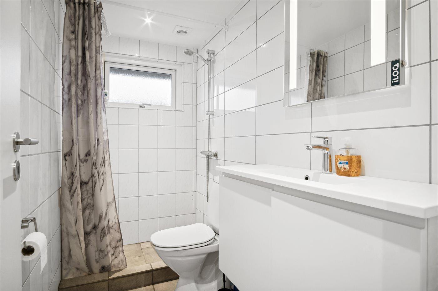 Der er 1 badeværelse med bruseniche og 1 toilet.