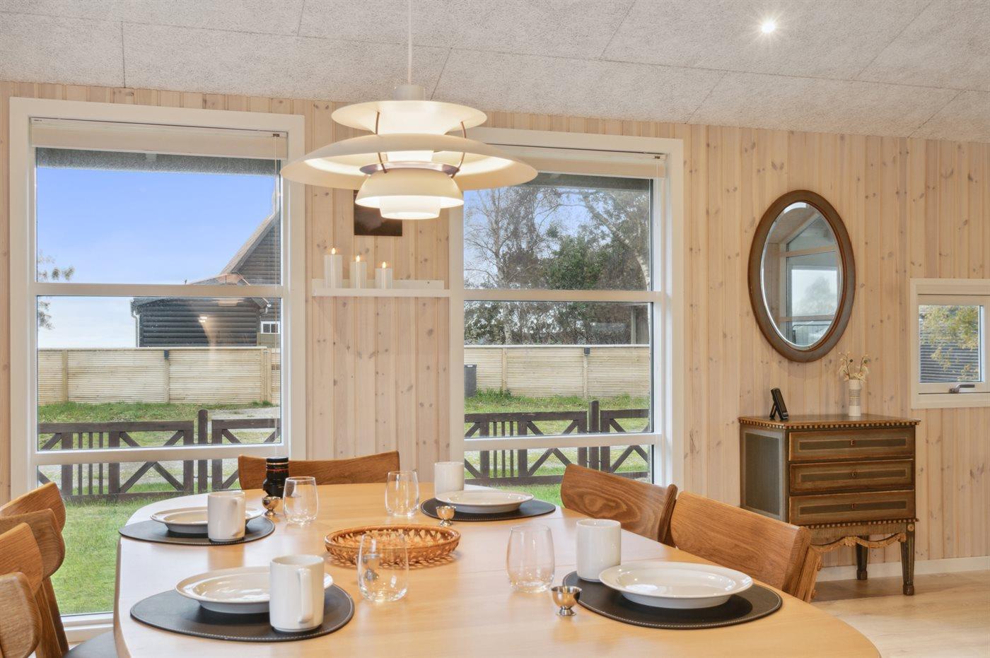 Hyggeligt sommerhus tæt på Hvidbjerg strand med havudsigt og moderne faciliteter.
