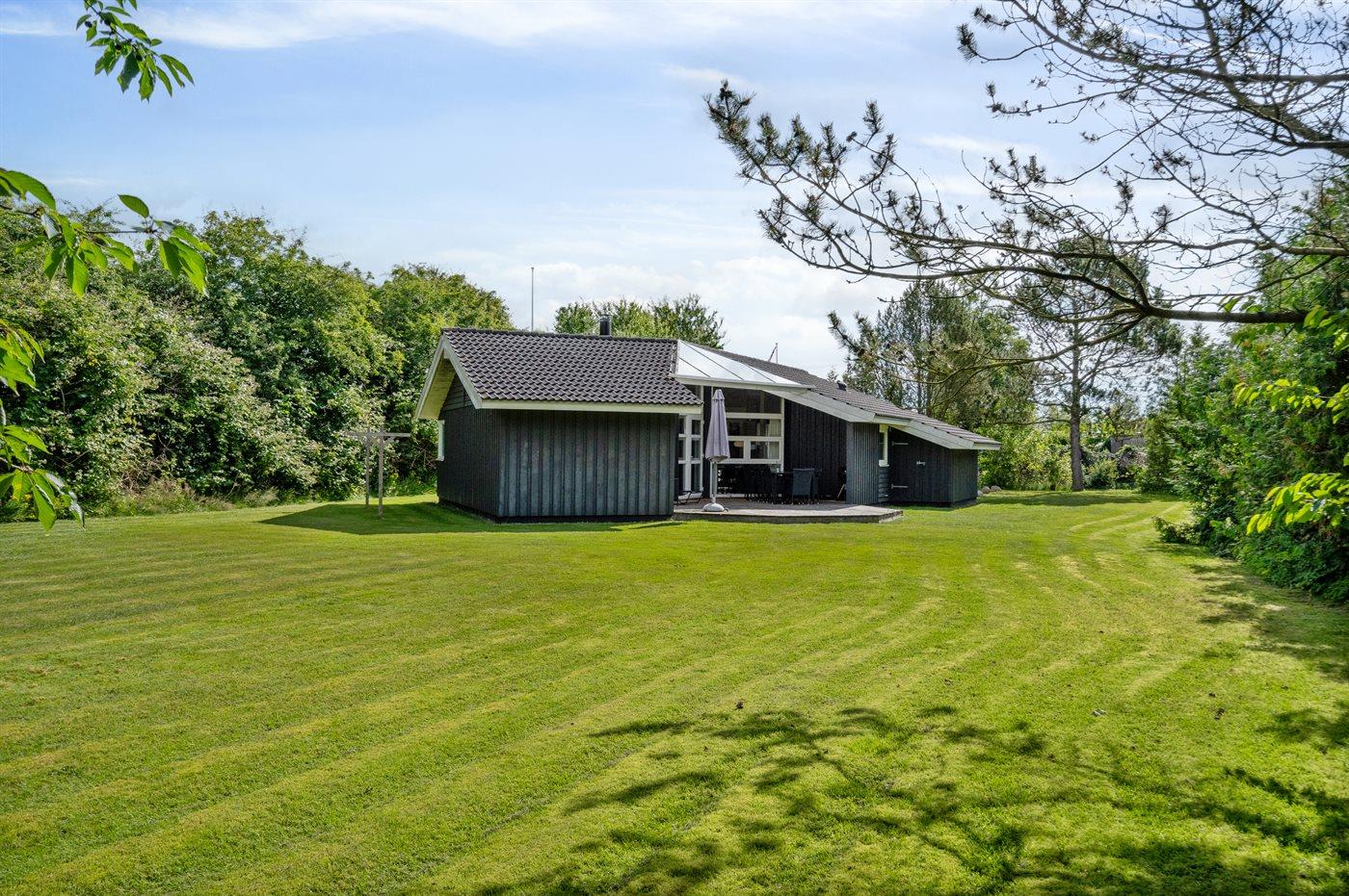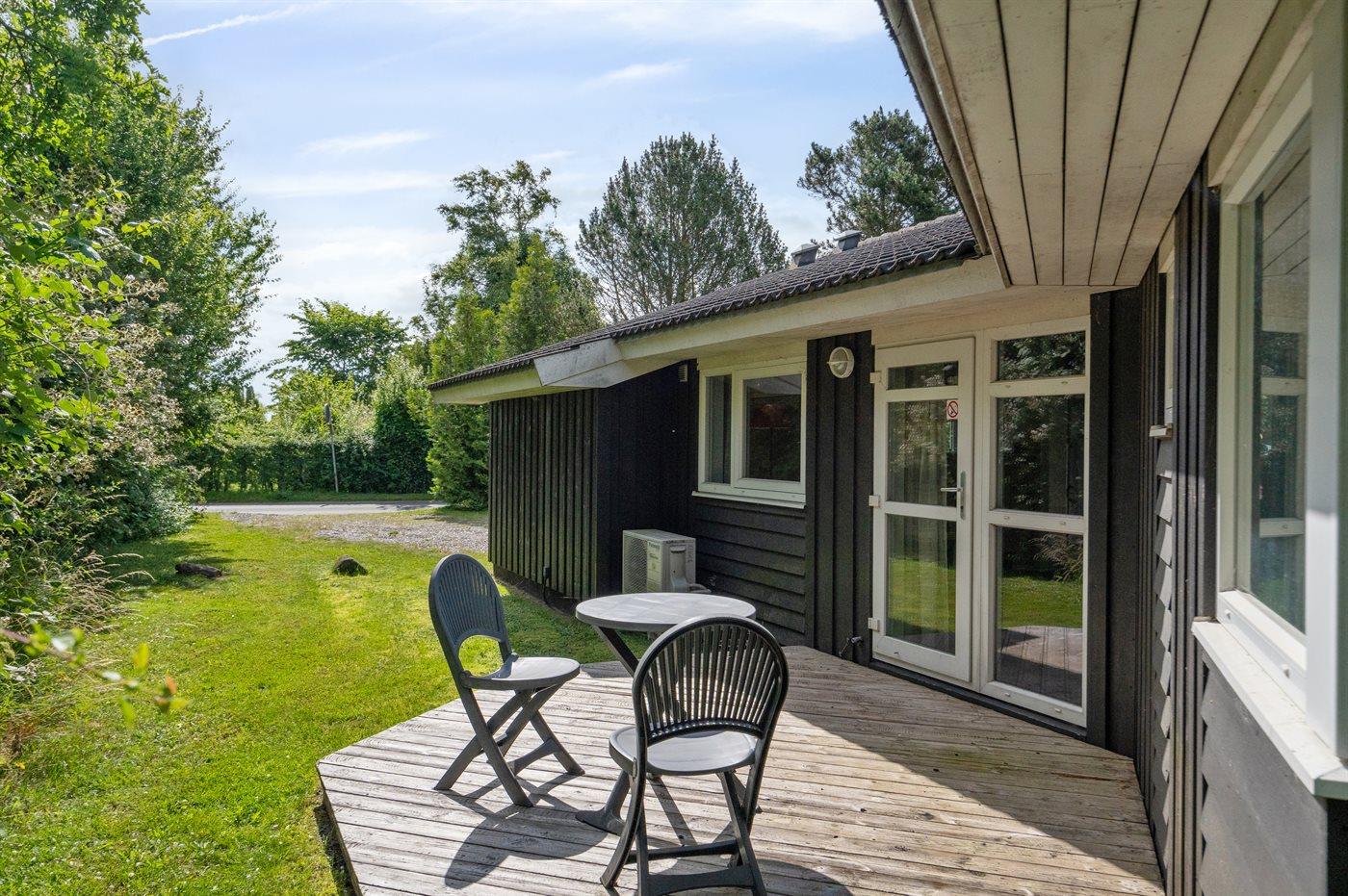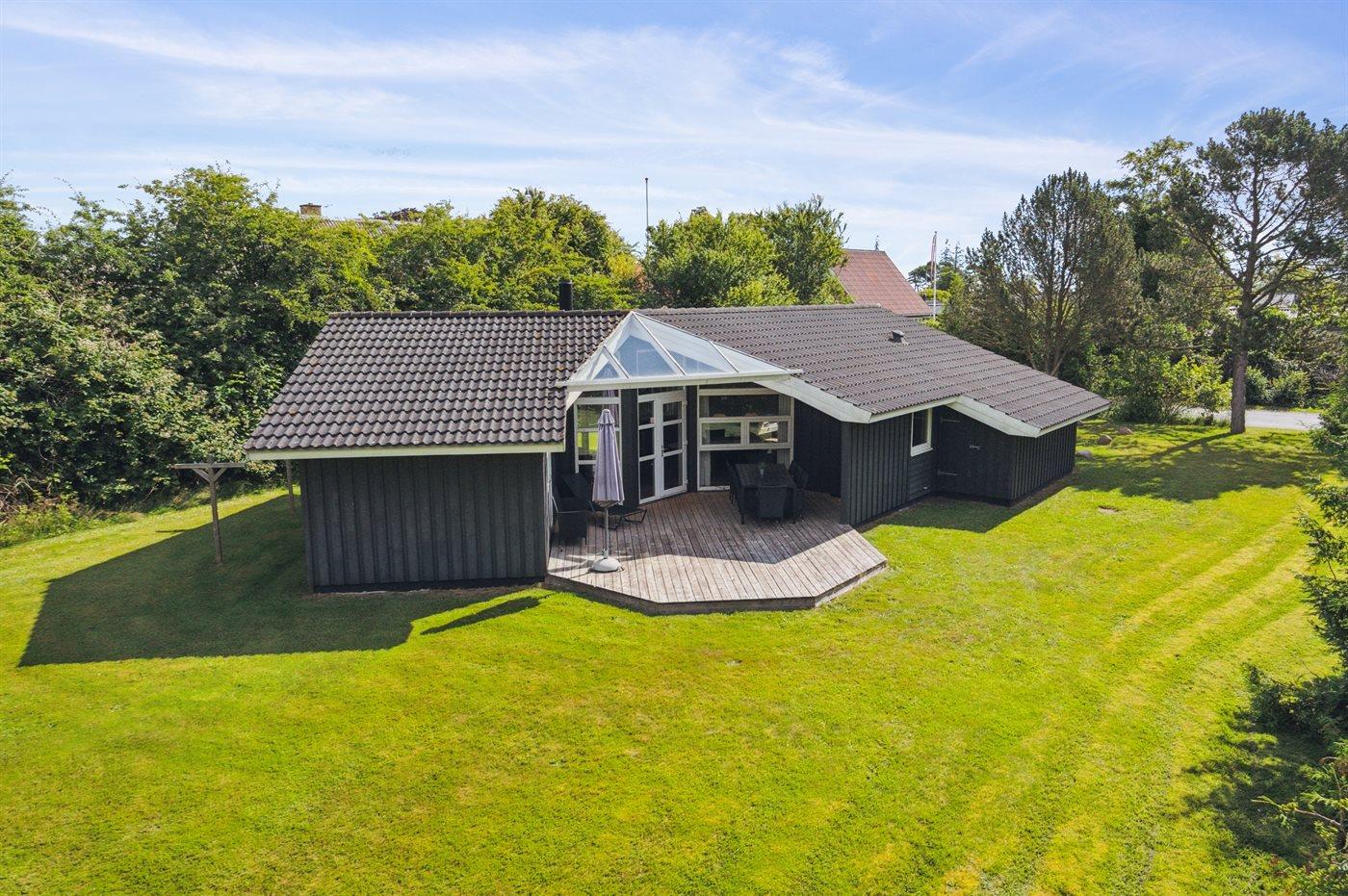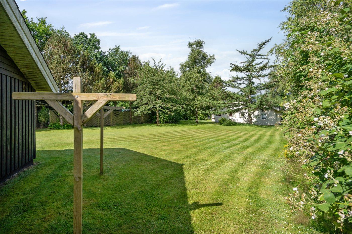 Den skønne have er et herligt sted at opholde sig. Grunden ligger dejlig ugenert, og her er der god plads til, at børn kan boltre sig på den store græsplæne. Sommerhuset har et skønt terrasseareal, som er delvist overdækket således der er mulighed for at nyde de dejlige sommeraftener selv, når duggen falder. På terrassen kan man sidde og nyde stilheden i fulde drag, og der er altid mulighed for at finde et dejligt læfyldt hjørne.
