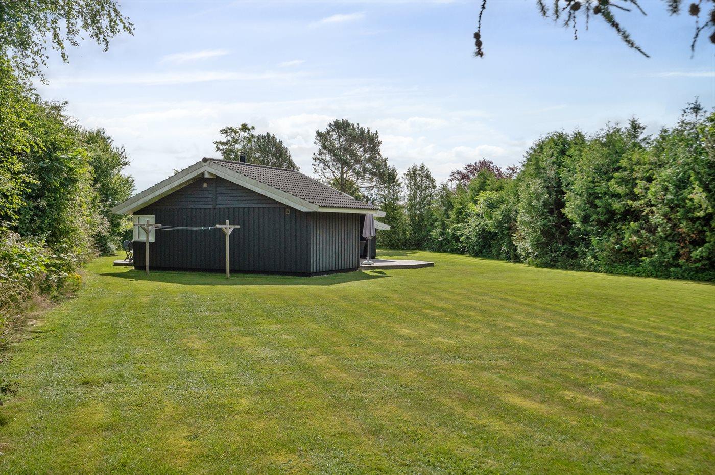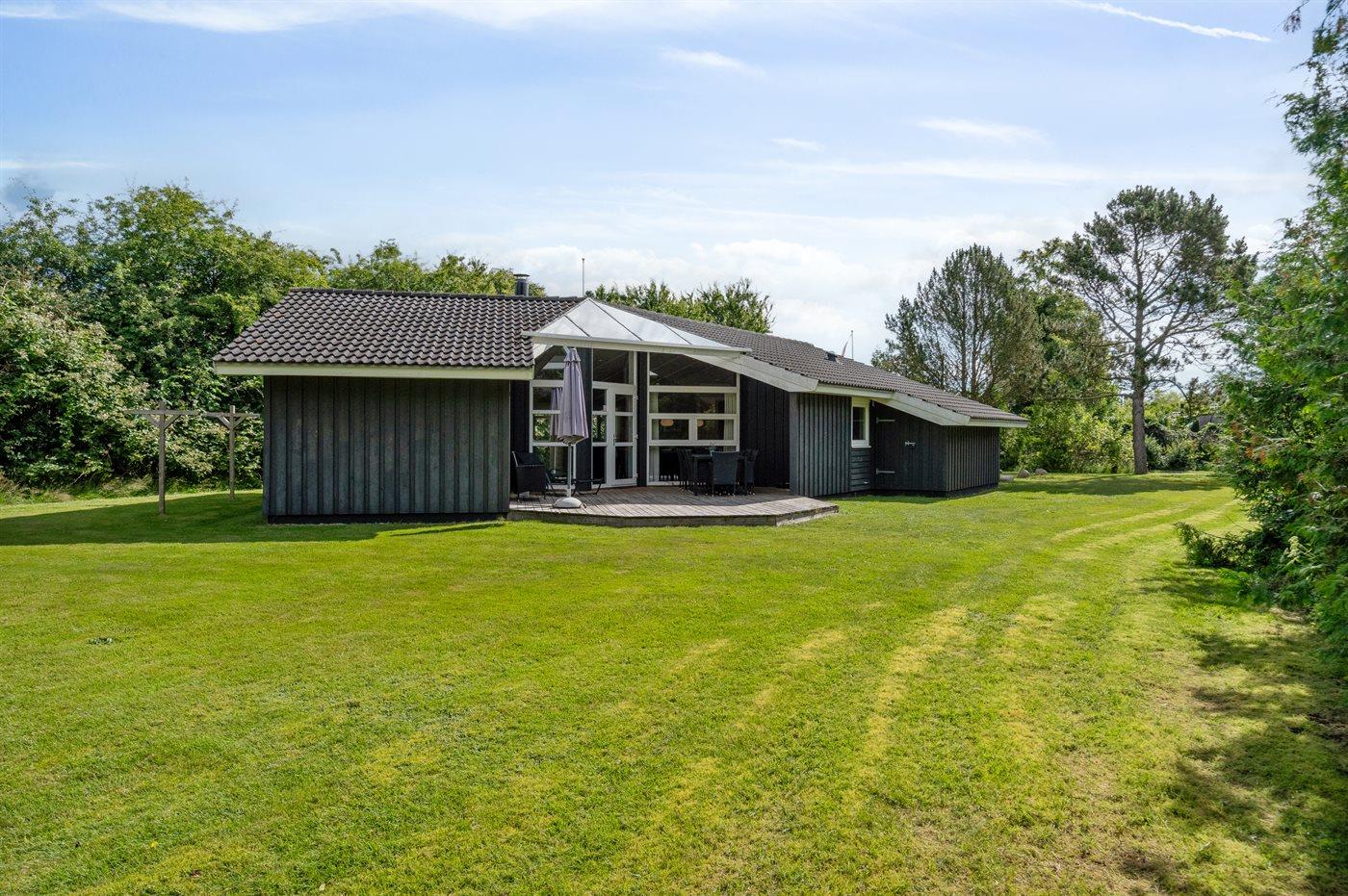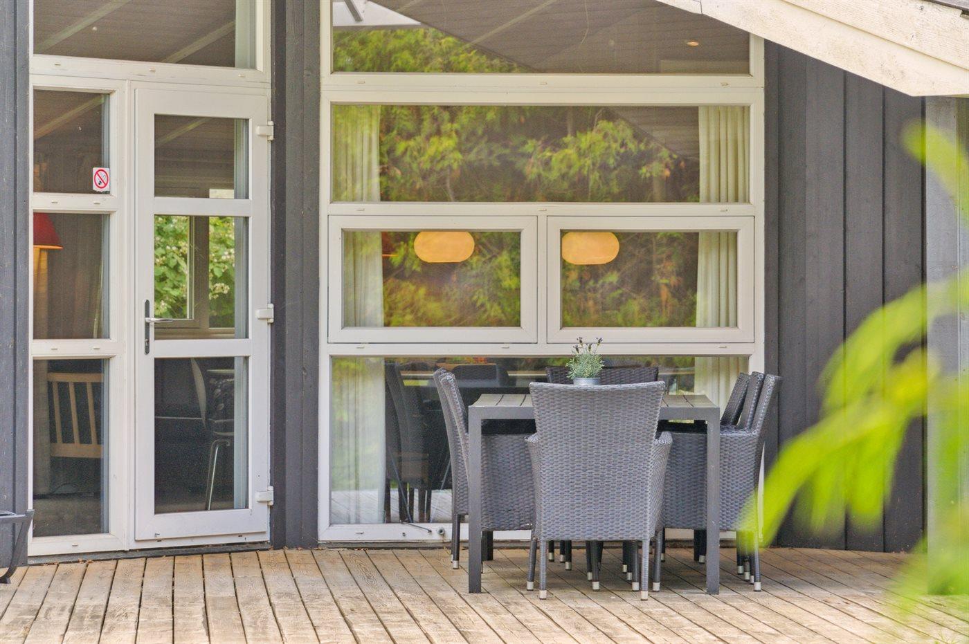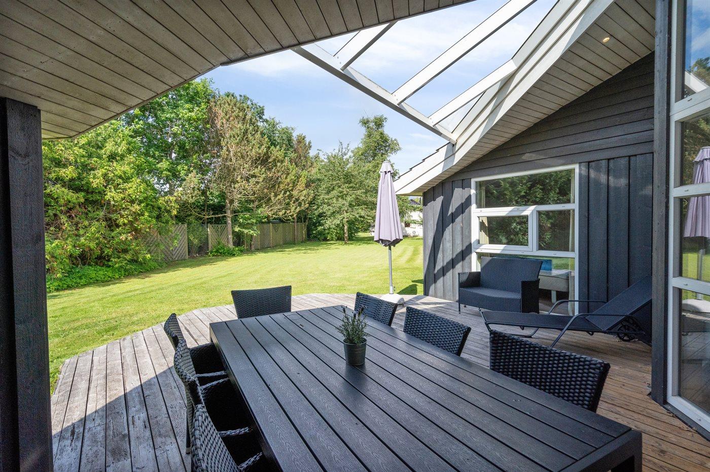 Den skønne have er et herligt sted at opholde sig. Grunden ligger dejlig ugenert, og her er der god plads til, at børn kan boltre sig på den store græsplæne. Sommerhuset har et skønt terrasseareal, som er delvist overdækket således der er mulighed for at nyde de dejlige sommeraftener selv, når duggen falder. På terrassen kan man sidde og nyde stilheden i fulde drag, og der er altid mulighed for at finde et dejligt læfyldt hjørne.