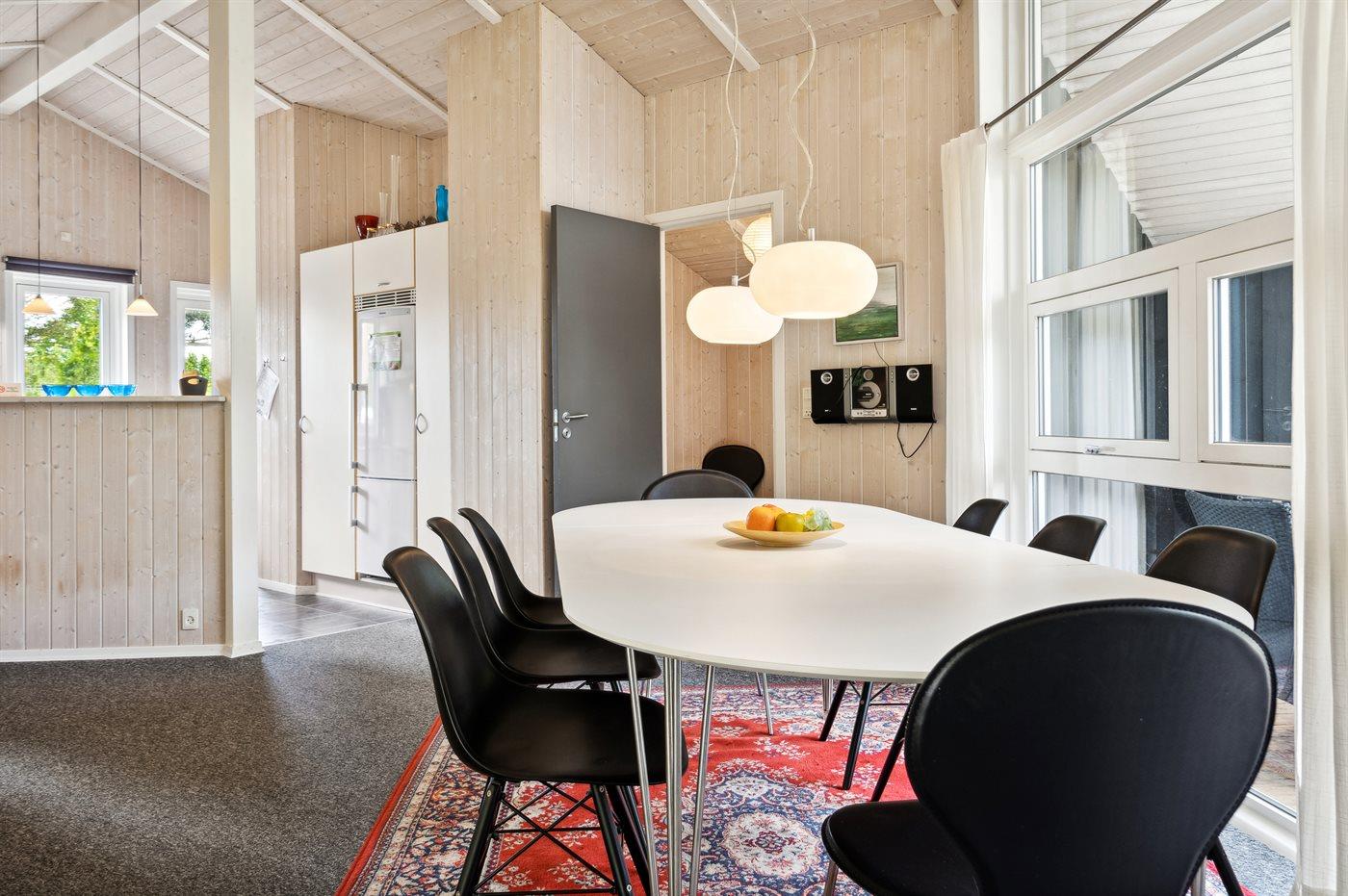 Indvendigt fremstår feriehuset lyst og moderne med en rigtig god planløsning, således boligen er oplagt til f.eks. én familie med 2-3 børn eller 2 familier. Der er også mulighed for at invitere bedsteforældrene med på ferie. Sommerhuset byder på 4 gode soveværelser og husets hjerte er det store flotte køkken/alrum, som ligger i åben forbindelse med opholdsstuen. Her er højt til loftet med masser af lysindfald, som gør det til et oplagt sted at samles, hvis vejret udenfor skulle vise sig fra sin mindre gode side.