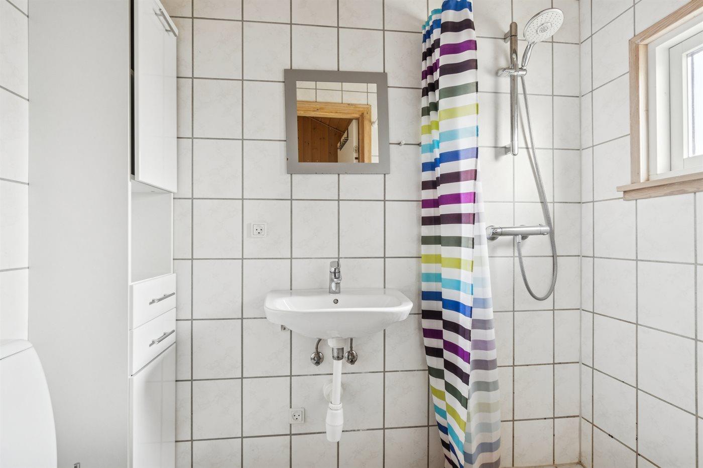 Der er 2 badeværelser med bruseniche og 2 toiletter. Der er gulvvarme på 2 badeværelser. I saunaen er der mulighed for afslapning.