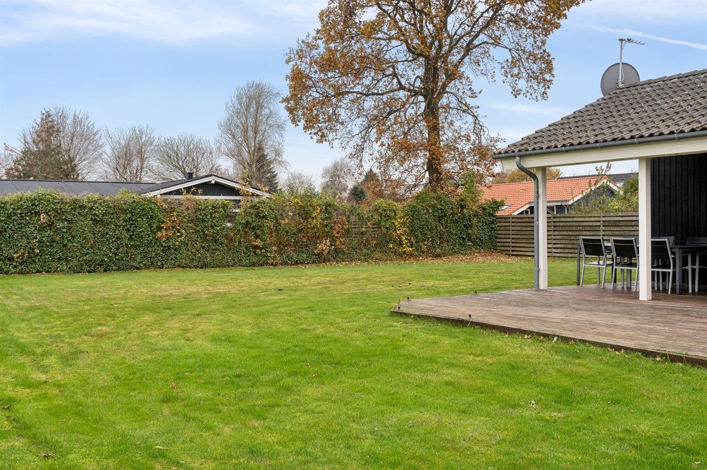 Til huset hører nogle skønne terrassearealer, som er delvist overdækket. Det er altid muligt at finde en plads i solen, et hjørne med læ og en plads i skyggen. Grunden er overskuelig og helt oplagt til udendørs aktiviteter for børn.