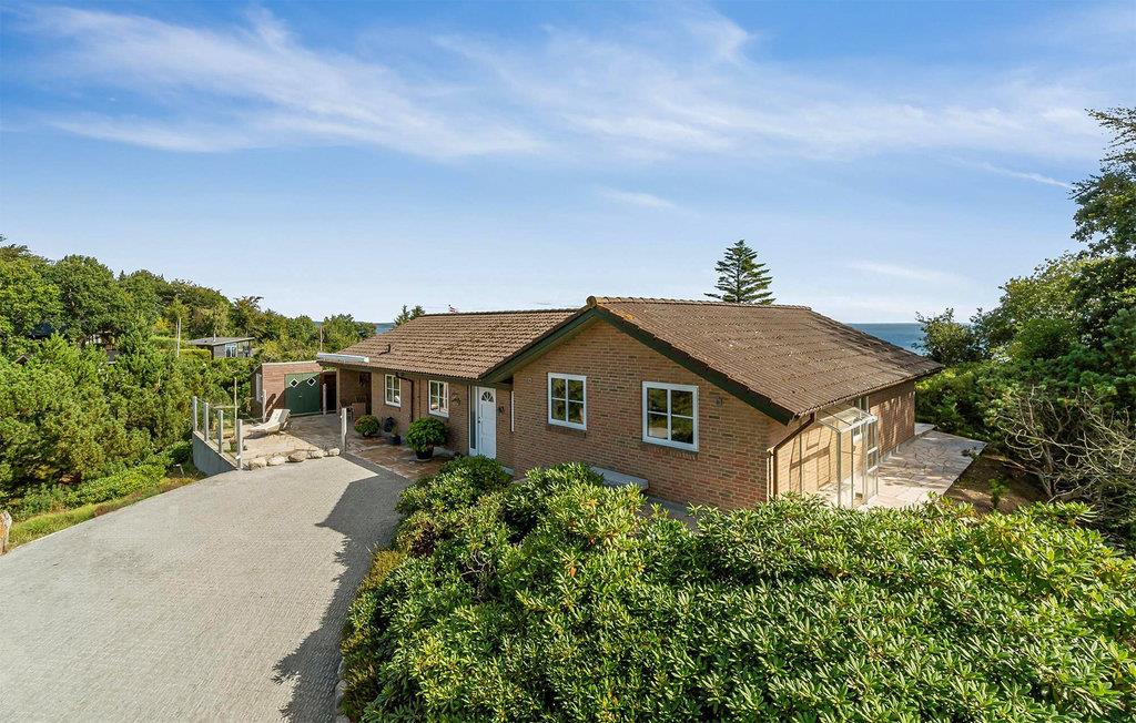 Luksuriøst feriehus ved Hvidbjerg Strand med spa, sauna og panoramaudsigt over vandet.