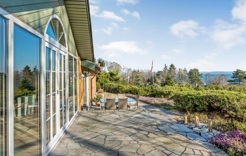 Terrassen er også et højdepunkt. Her kan I sole jer fra liggestole af høj kvalitet, spise jeres måltider sammen og grille - alt sammen med fjorden i baggrunden. Til børnenes underholdning er der gynge, sandkasse, rutsjebane og diverse udendørsspil.