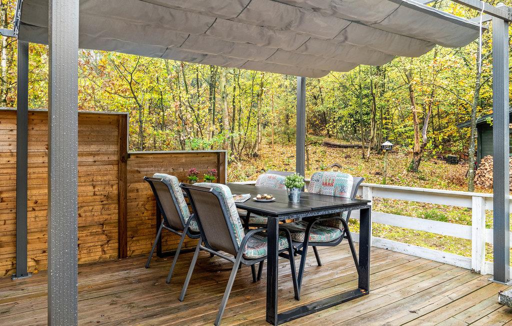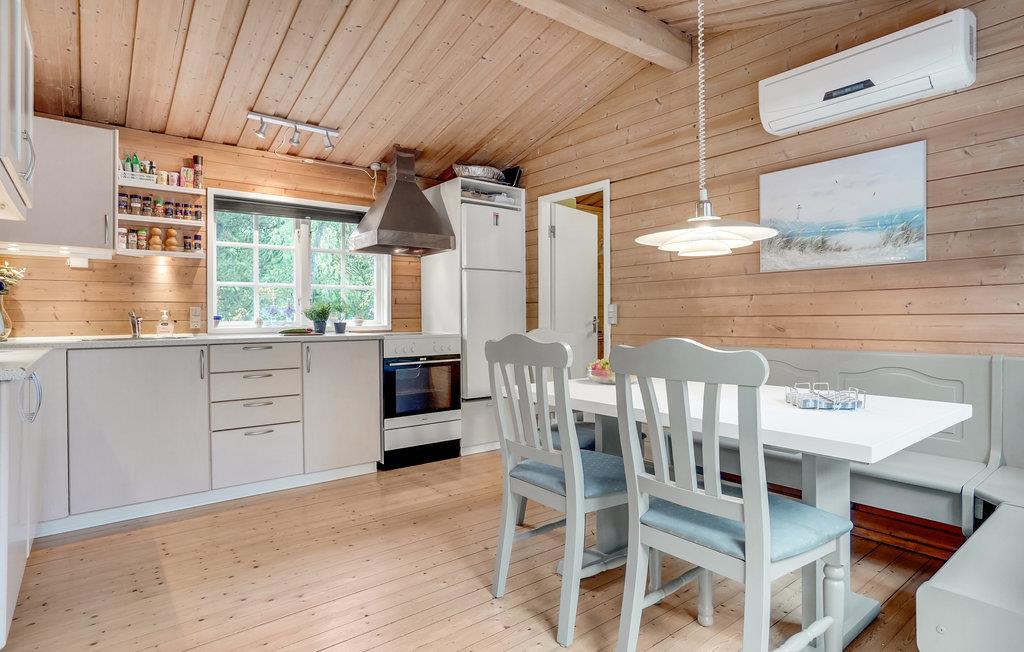 Kun få hundrede meter fra fjorden finder I dette indbydende træhus på en dejlig naturgrund. Indenfor venter lyse, praktisk indrettede værelser og en fredelig atmosfære på jer. Tilbring hyggelige timer med jeres kære i stuen og varm jer foran brændeovnen på kølige aftener. Når vejret er godt, inviterer terrassen til afslappende dage og stemningsfulde aftener.