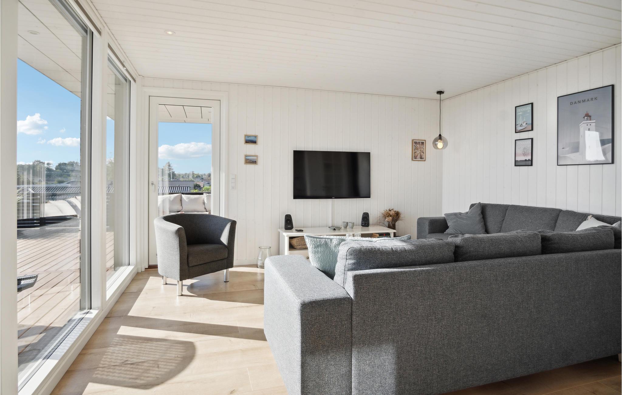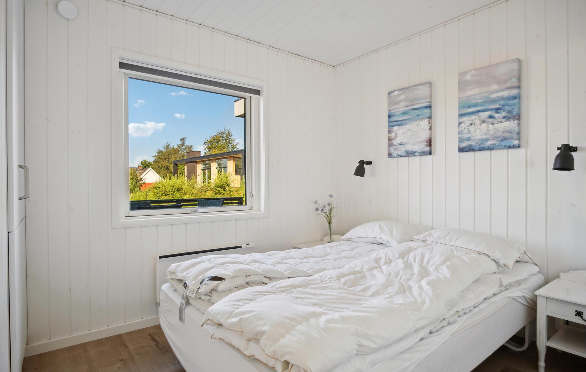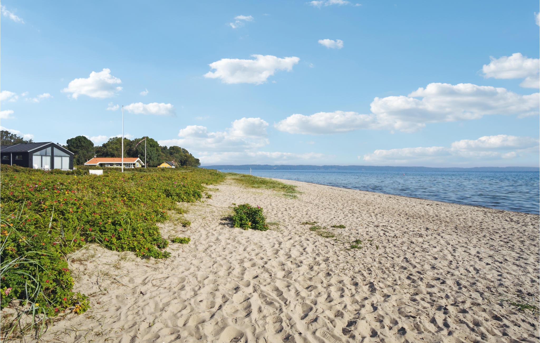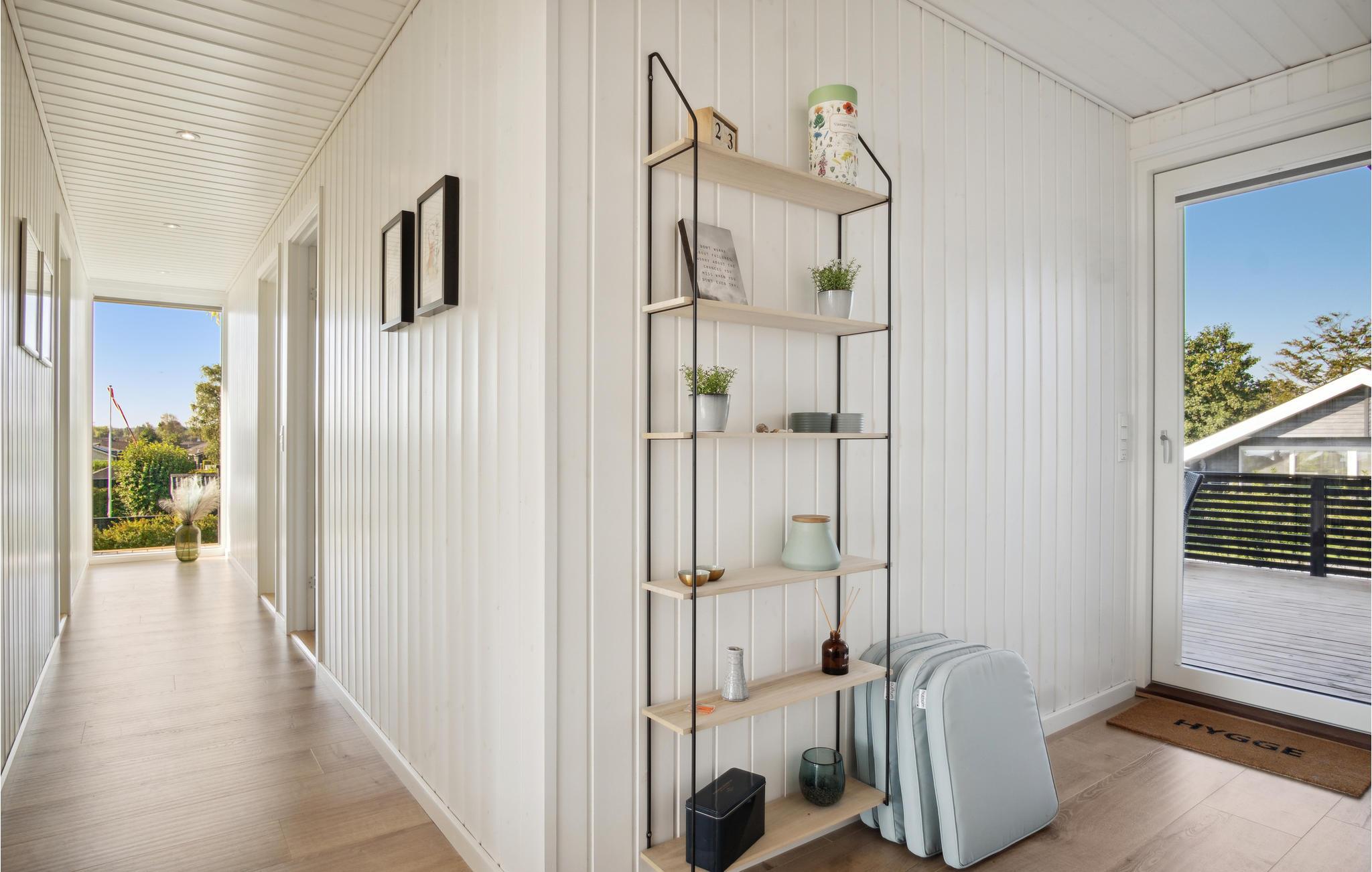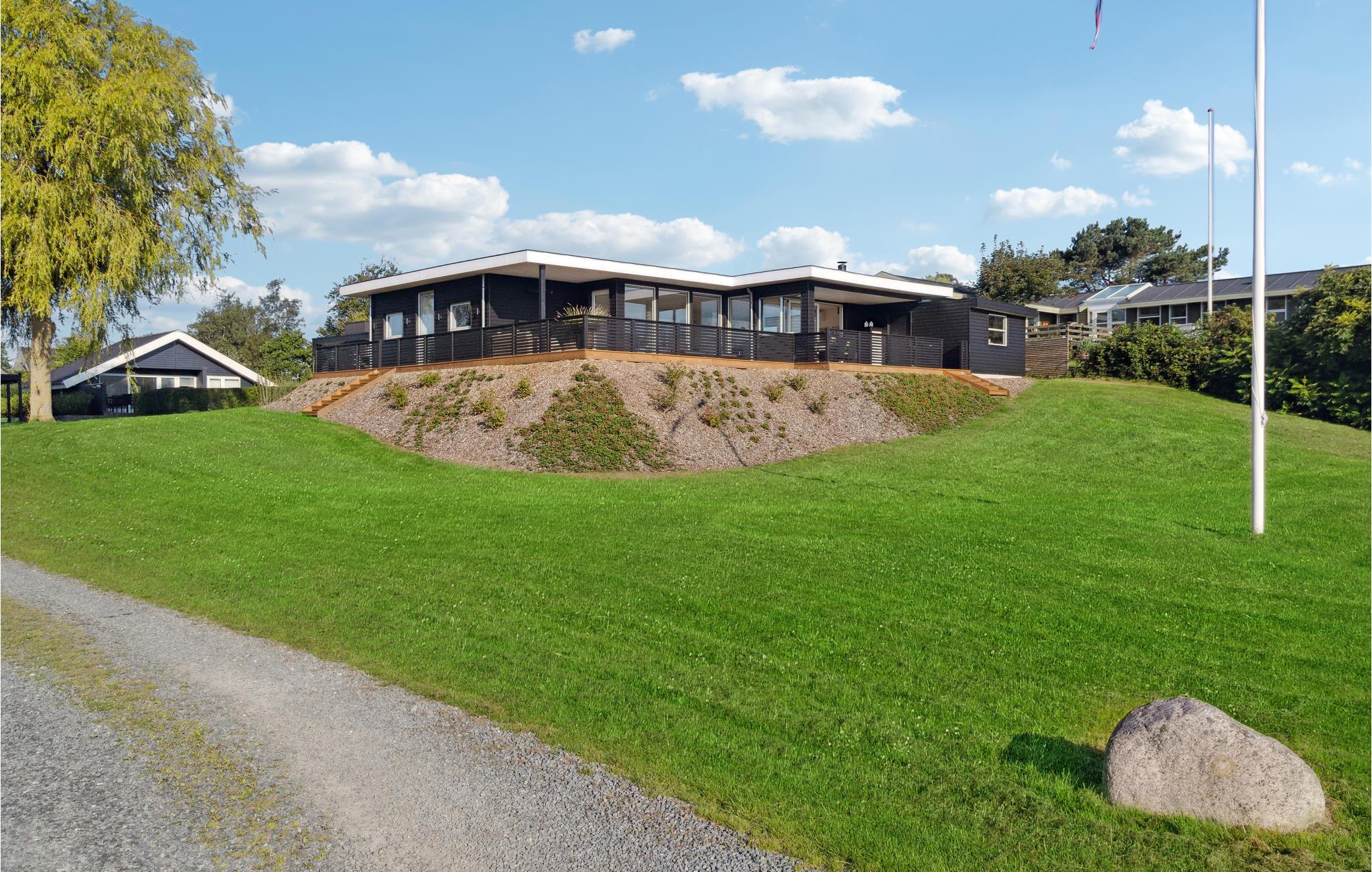 Her kan I slappe af med udsigt over fjorden. Det er sikkert en drøm, der bliver til virkelighed. Der er kun få skridt til stranden, så badeglæde og naturoplevelser kommer I ikke til at gå glip af på jeres ferie. I den stilfulde atmosfære kan hele familien slappe af. De lyse værelser får deres charme fra kontrasten mellem de mørke møbler og det fortryllende dagslys, der kommer ind gennem store panoramavinduer. Hold hyggelige filmaftener og skab en særlig behagelig atmosfære med ild i brændeovnen. Slå jer ned på terrassen og nyd solen og udsigten over vandet. Det perfekte sted for en afstressende tid. Gå en tur til fjorden og nyd en forfriskende dukkert på den børnevenlige strand.
