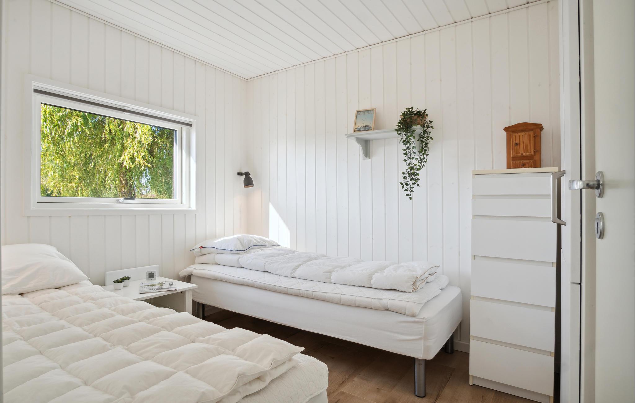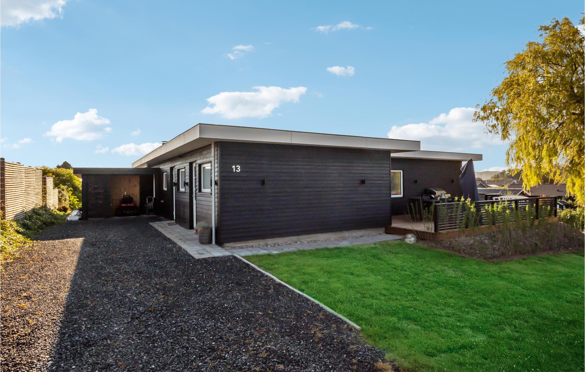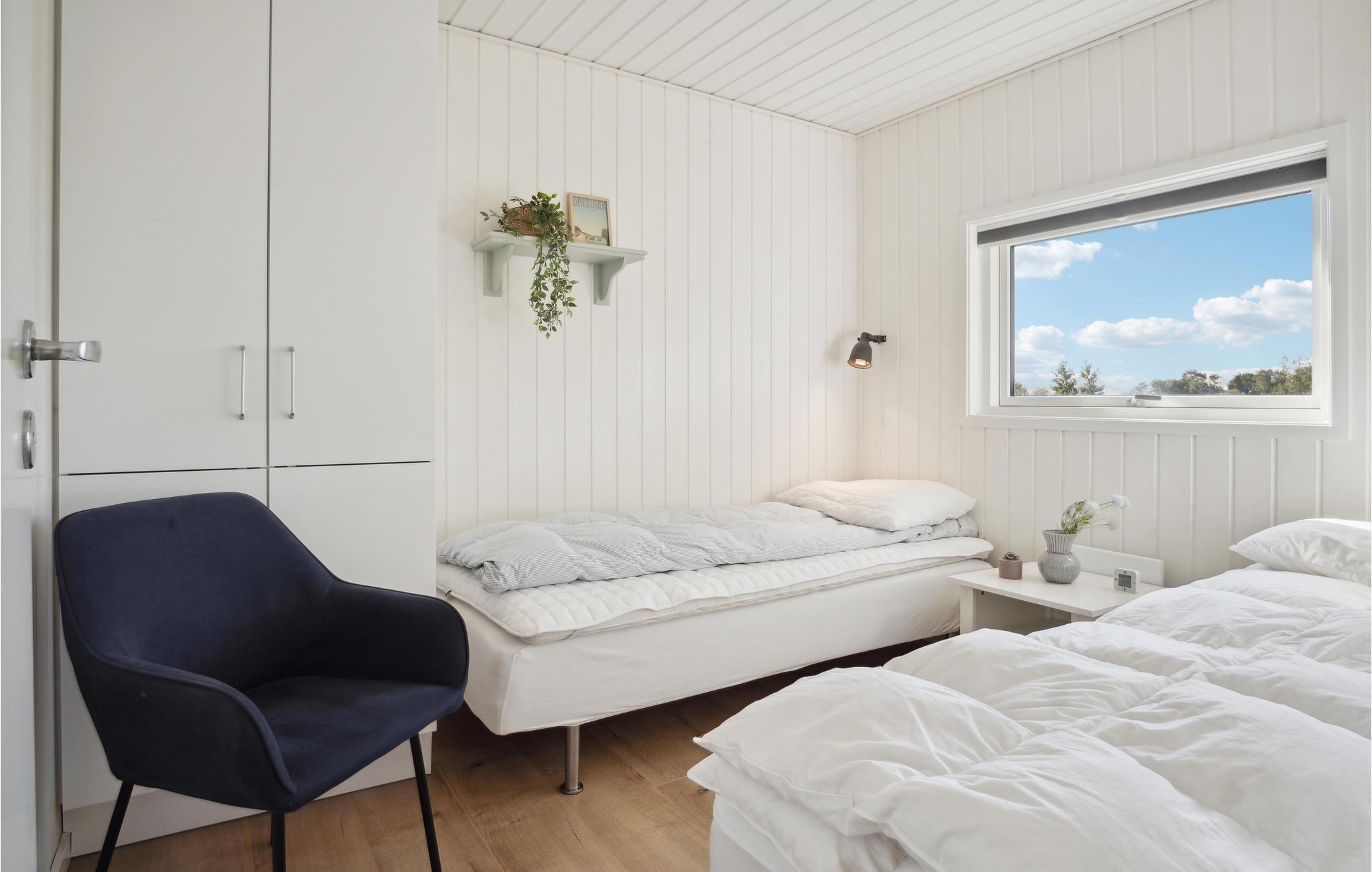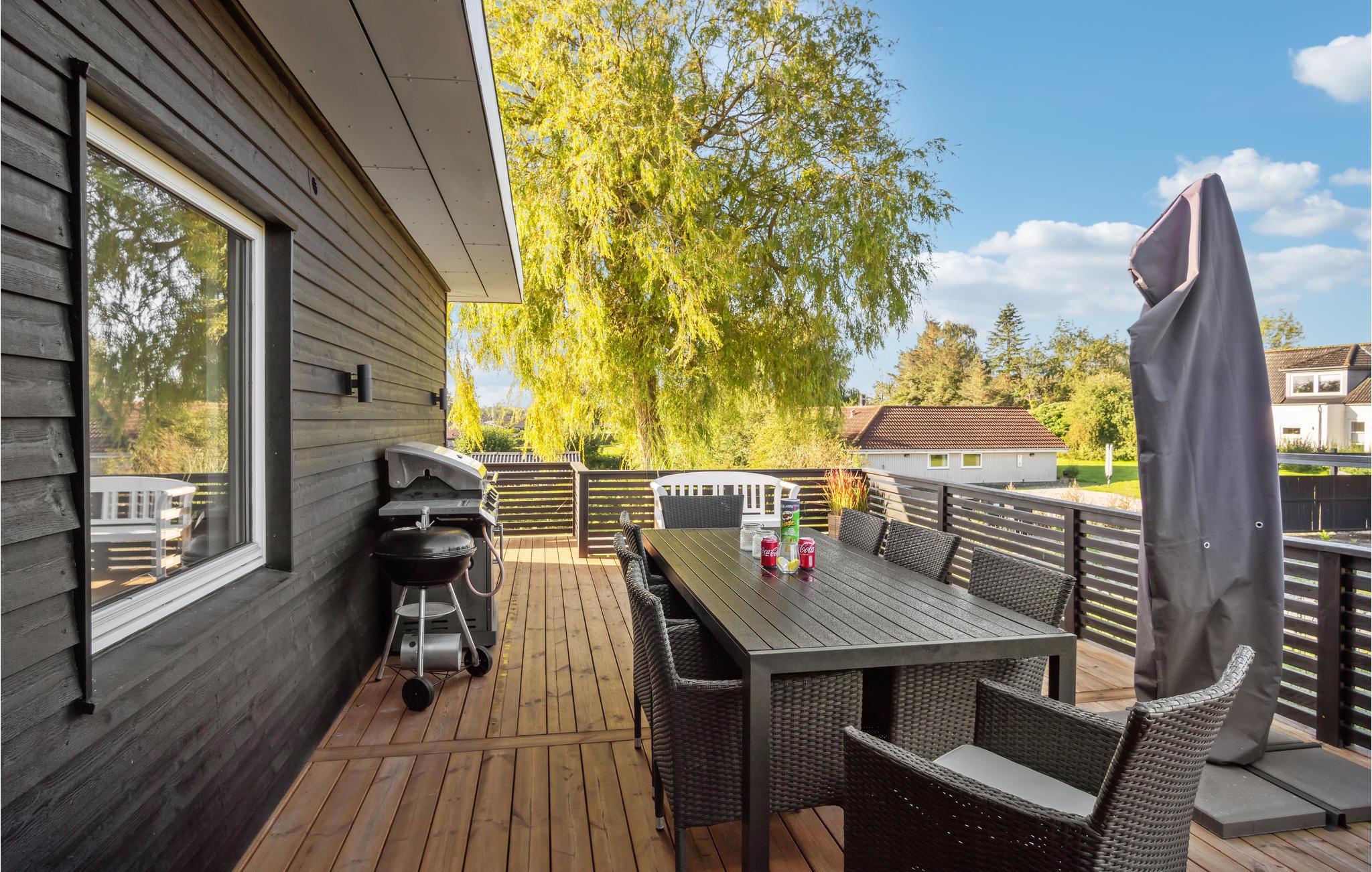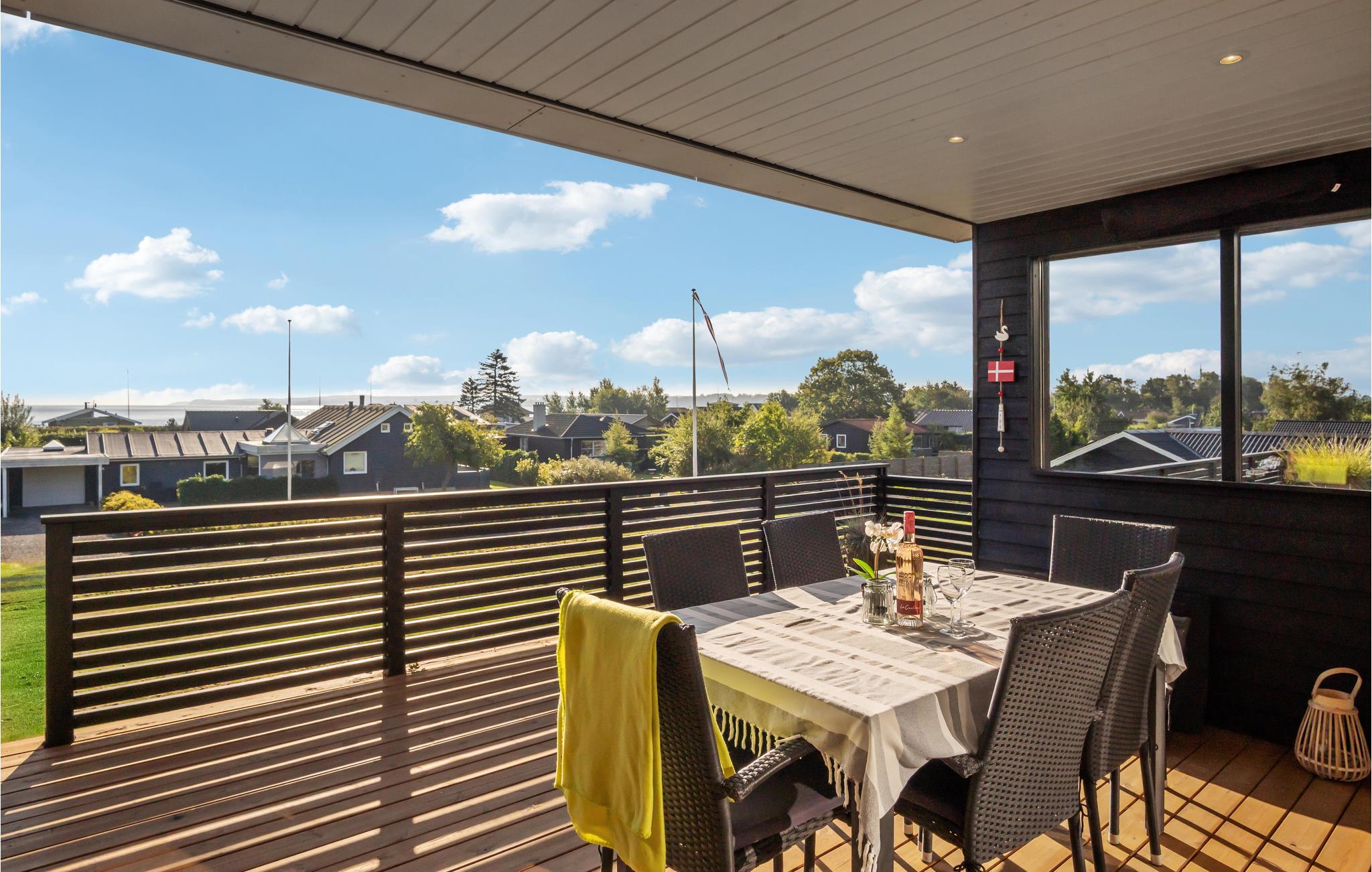 Her kan I slappe af med udsigt over fjorden. Det er sikkert en drøm, der bliver til virkelighed. Der er kun få skridt til stranden, så badeglæde og naturoplevelser kommer I ikke til at gå glip af på jeres ferie. I den stilfulde atmosfære kan hele familien slappe af. De lyse værelser får deres charme fra kontrasten mellem de mørke møbler og det fortryllende dagslys, der kommer ind gennem store panoramavinduer. Hold hyggelige filmaftener og skab en særlig behagelig atmosfære med ild i brændeovnen. Slå jer ned på terrassen og nyd solen og udsigten over vandet. Det perfekte sted for en afstressende tid. Gå en tur til fjorden og nyd en forfriskende dukkert på den børnevenlige strand.