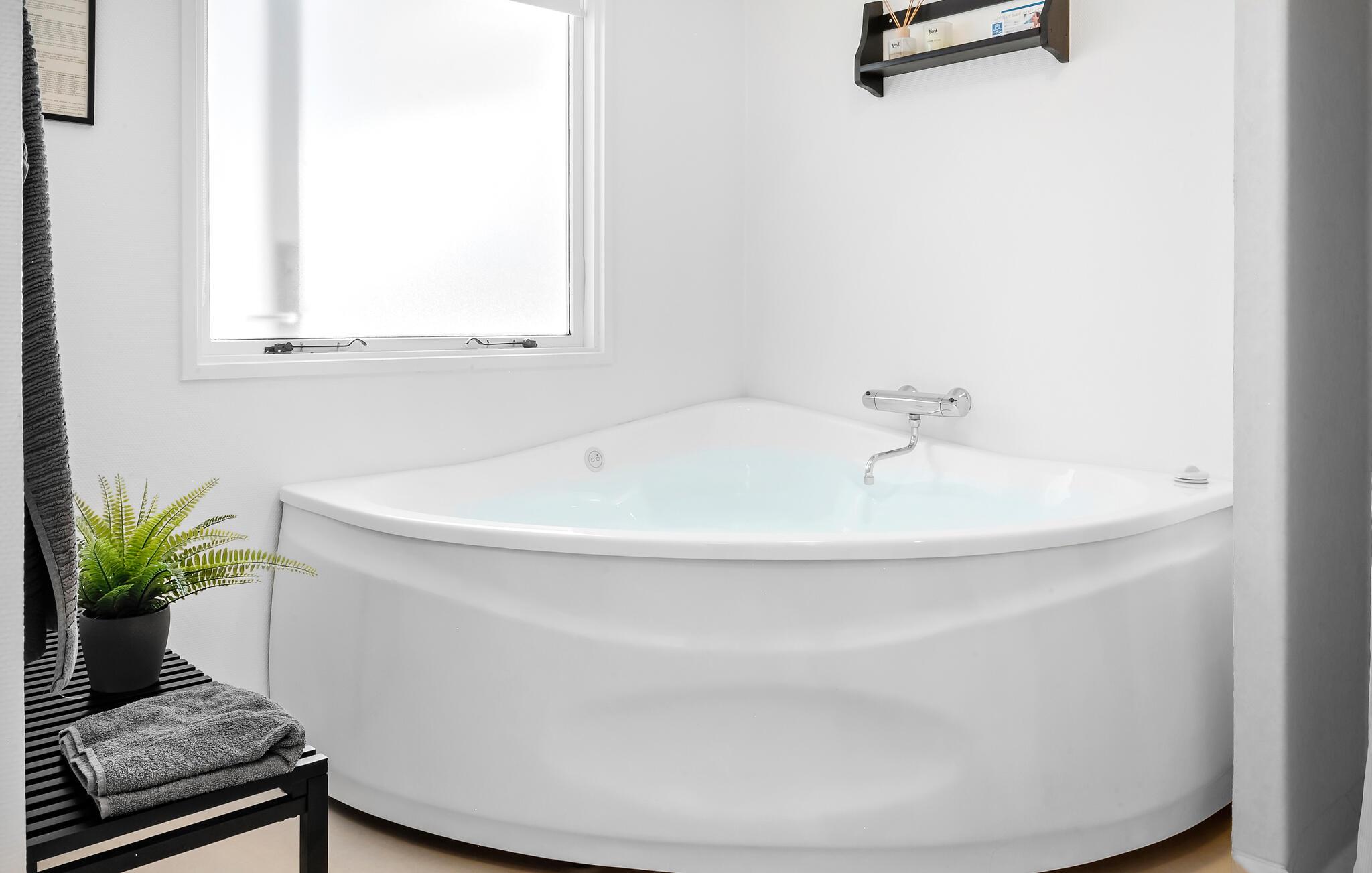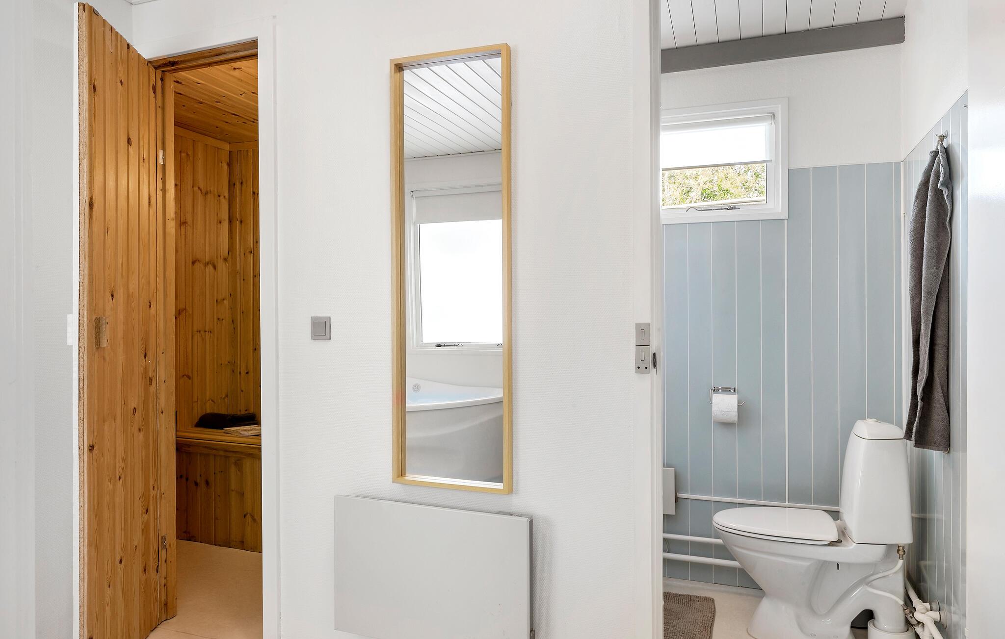 Oplev dette indbydende og komfortable feriehus, der giver jer et godt udgangspunkt for en vellykket ferie med hele familien. Den moderne og samtidig hyggelige indretning sørger for en behagelig atmosfære, hvor I straks vil føle dig hjemme. Det praktisk indrettede køkken indbyder til at tilberede lækre retter. Nyd jeres måltider ved spisebordet i det lyse opholdsrum. Giv både krop og sind en velfortjent pause i jeres lille, private wellnessafdeling med spabad og sauna.