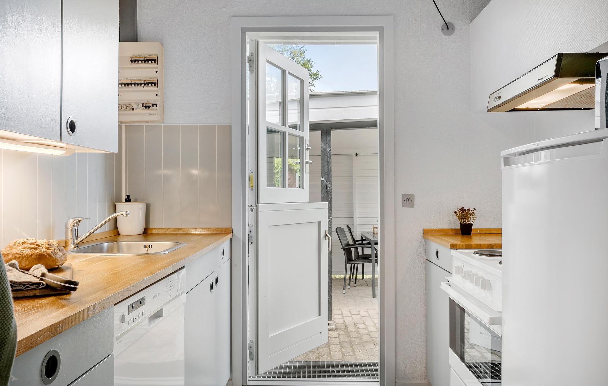 På den rummelige terrasse kan I spise udenfor under parasollen eller blot nyde den friske luft og roen. Huset er smukt beliggende ved Vejle Fjord, hvor I kan tage på lange gåture og nyde forfriskende dage med badning i fjorden. Den nærmeste sandstrand ligger kun et stenkast fra jeres hus. Kør også til Vejle, hvor I kan tage på restaurant eller café og opleve spændende seværdigheder og attraktioner.