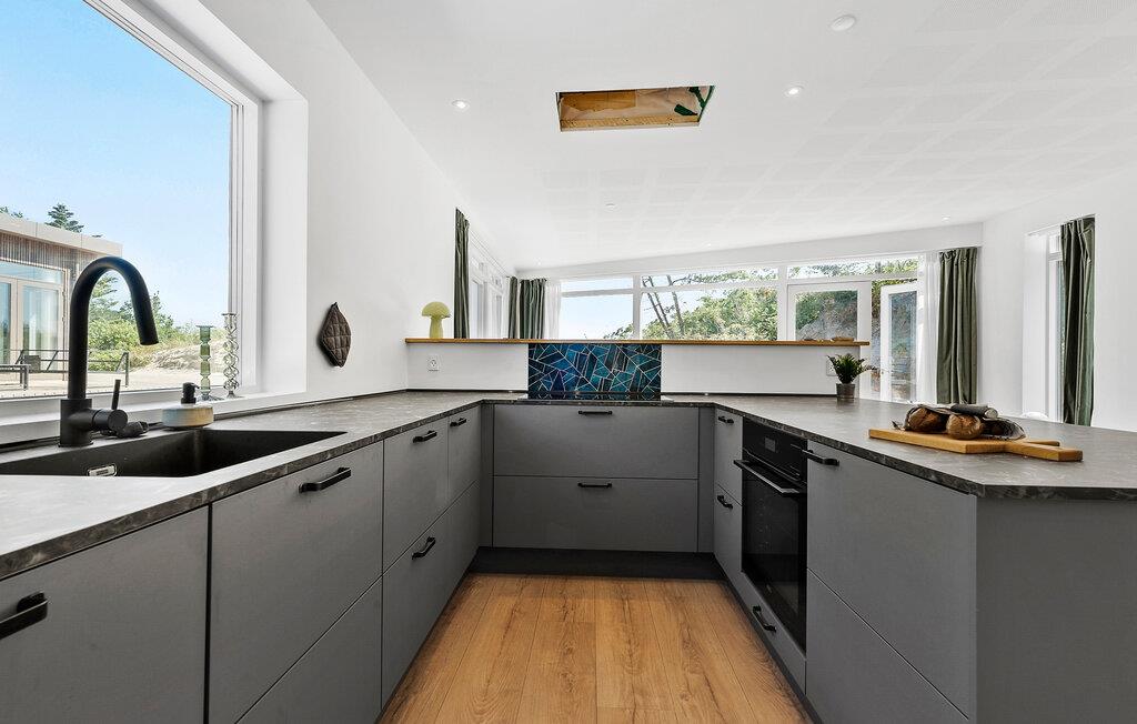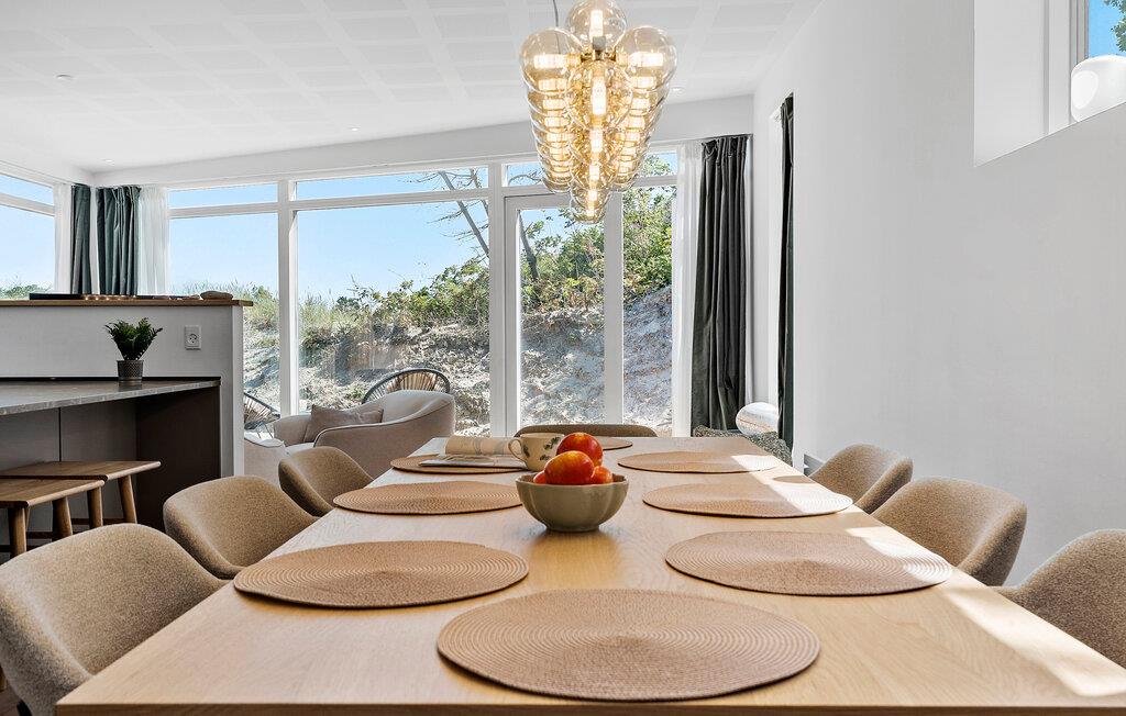 Hvis I skal forkæle familien med et ekstraordinært lækkert ophold i virkelig dejlige omgivelser, er dette flotte hus ved Hvidbjerg det helt rette valg for jer. Indretningen fremtræder virkelig flot med materialer af høj kvalitet, gennemtænkte rumløsninger og store vinduespartier, der giver lækre lysindfald og en skøn udsigt til det grønne. Køkkenet er moderne og fuldt udstyret, så lad blot familiens kokke kræse om livretterne, inden der dækkes op til aftensmad med udsigt til klitterne. Rund aftenen af i stuen med et glas vin, snacks og en god film på tv'et, mens I lægger planer for de kommende dage.