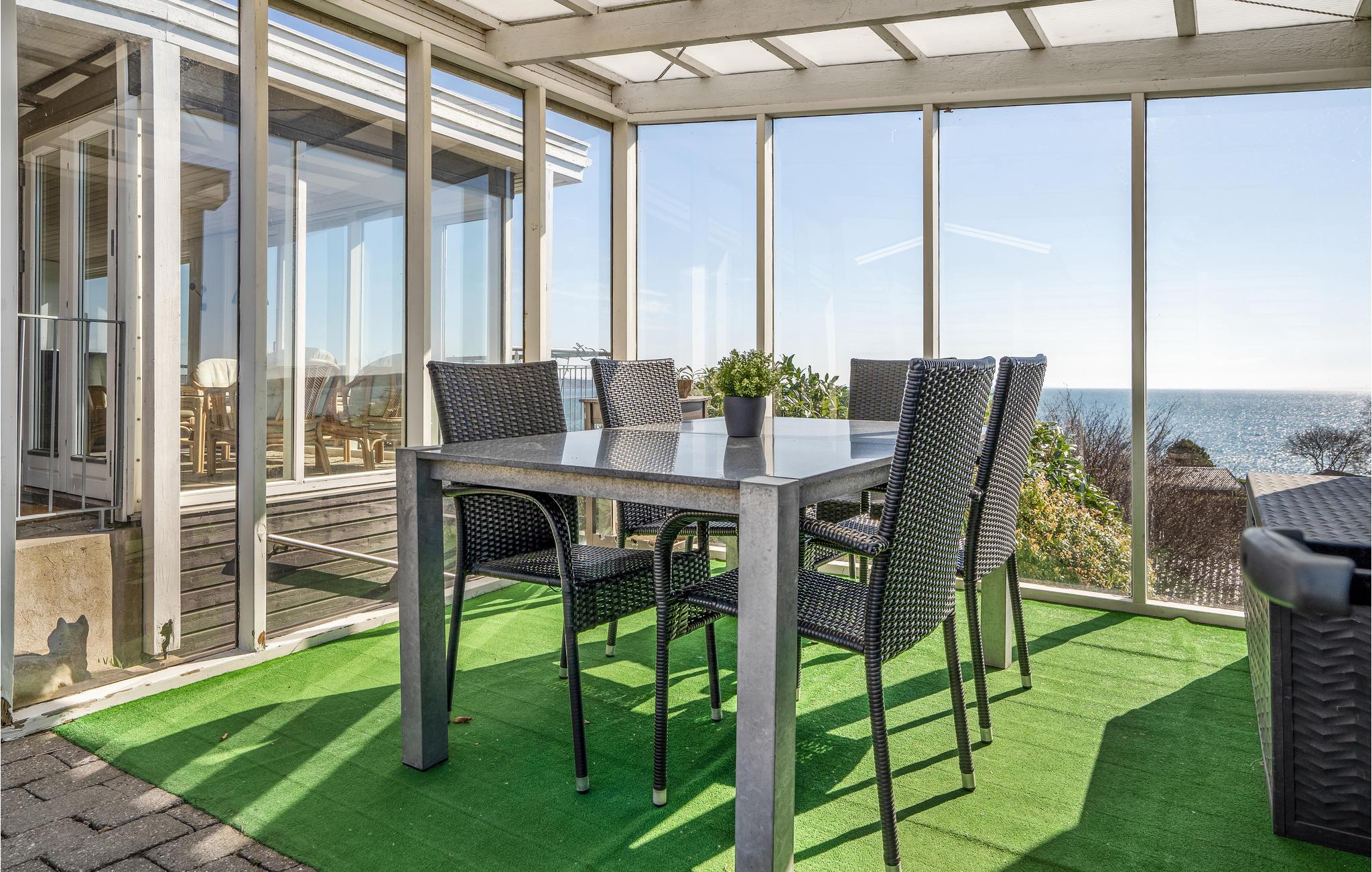 Dette lyse og attraktive feriehus byder op til 6 gæster og et barn velkommen. Det imponerer især med sin vidunderlige panoramaudsigt, som I kan nyde hele året rundt. Om vinteren kan I nyde varmen fra brændeovnen, mens I kigger ud over vandet gennem de store panoramavinduer. Om sommeren kan I tilbringe hele dagen på den skønne terrasse. Start dagen her med morgenmaden og afslut den med en hyggelig grillaften.