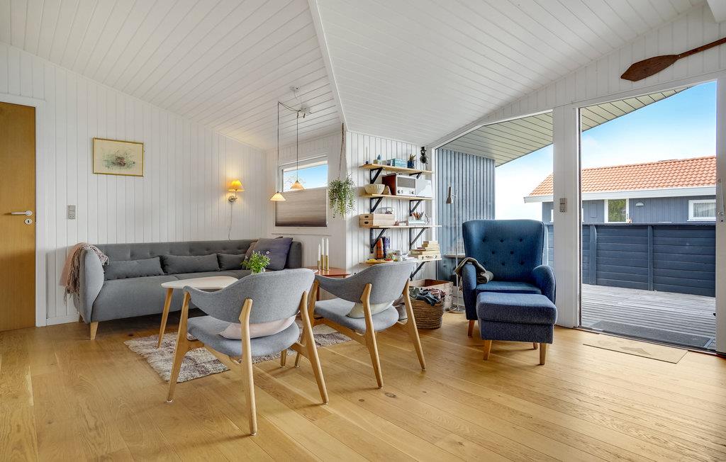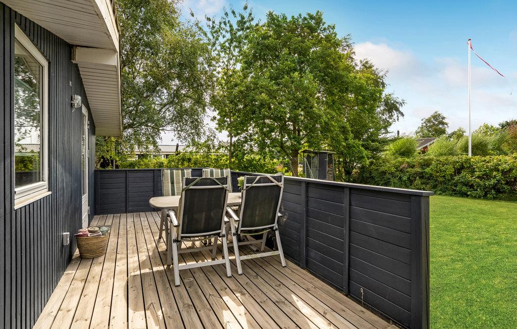 Velkommen til dette moderne og pænt indrettede feriehus med havudsigt, en dejlig terrasse og en privat have. Husets hjerte er den rummelige og lyse spise- og opholdsstue med brændeovn og TV. Her kommer I til at tilbringe mange hyggelige stunder sammen. Den åbne, delvist overdækkede terrasse med havemøbler og grill er det perfekte sted at sidde og nyde solen eller læse en god bog, mens børnene og jeres hund leger, gynger eller rutcher i haven. Om aftenen kan I tænde op i grillen og tilberede et lækkert feriemåltid.