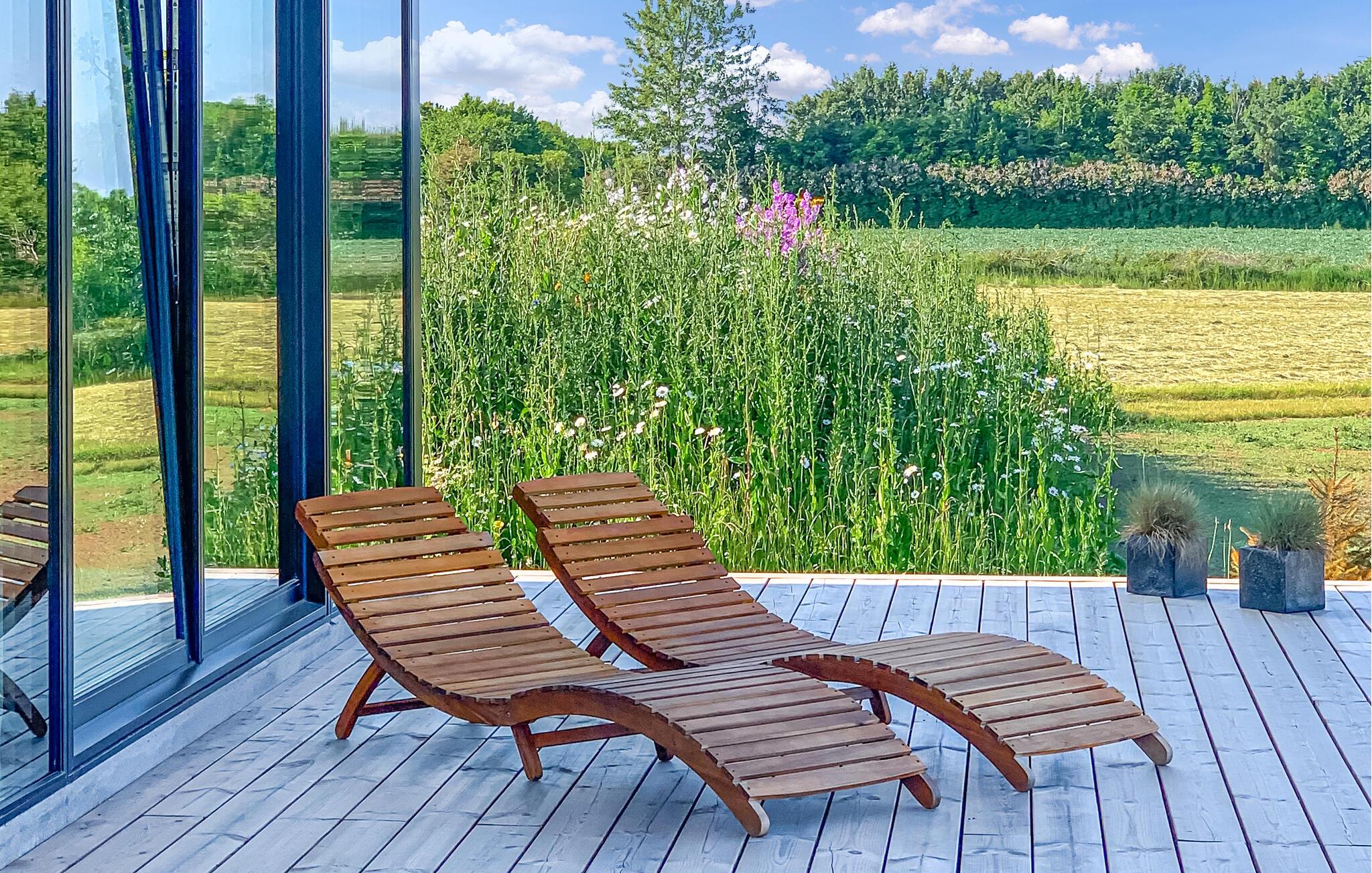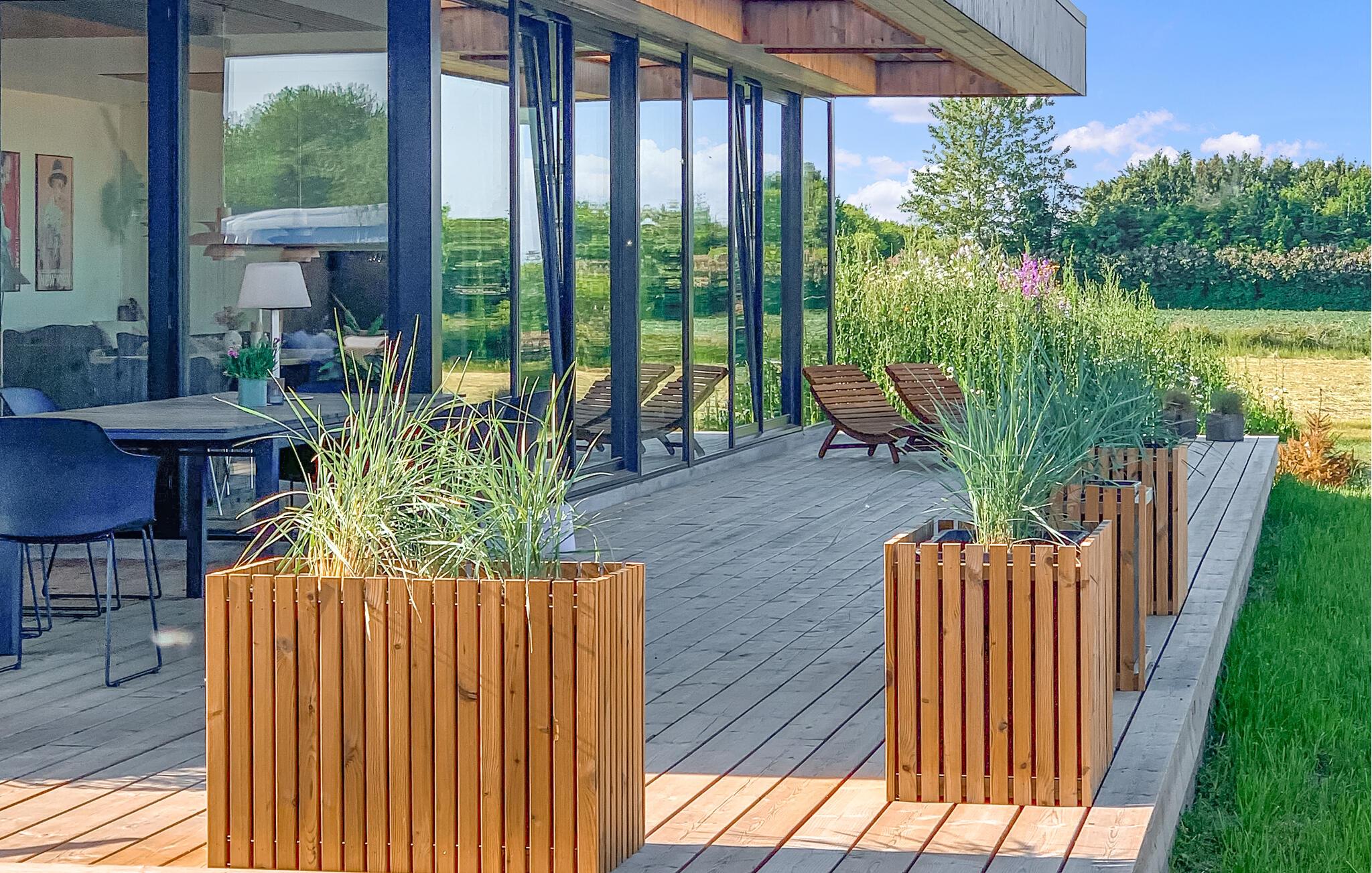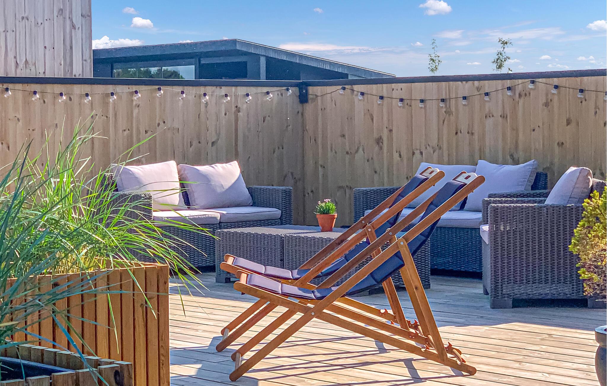 Glæd jer til ren afslapning på jeres rummelige træterrasse, hvor I kan finde jer tilpas i det fri i komfortable loungemøbler og liggestole. Lad børnene lege i haven, mens I forbereder stemningsfulde grillaftener.