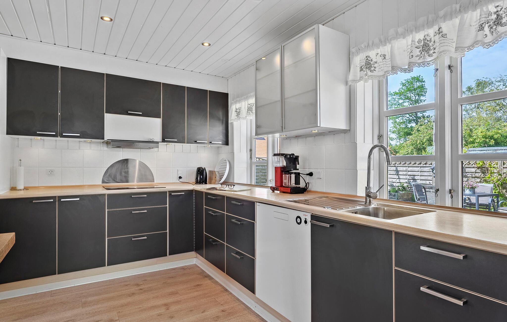 Jeres rummelige hus er ideelt for dem, der søger en kombination af komfort, nærhed til havet og privatliv. Nyd den rolige beliggenhed, den veldesignede planløsning og de forskellige opholdsmuligheder, både indendørs og udendørs. Tilbring tiden i et lyst og indbydende interiør med masser af plads til socialt samvær. Lav mad i det moderne, veludstyrede køkken og spis sammen ved det lange spisebord, der kan rumme hele familien.