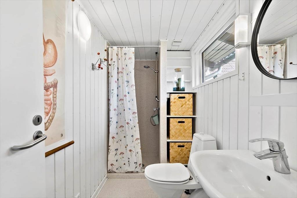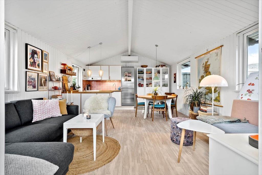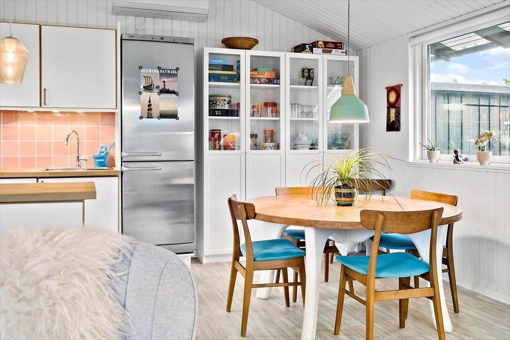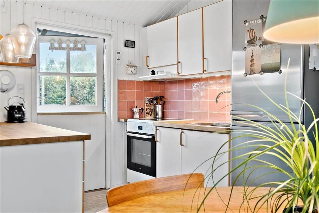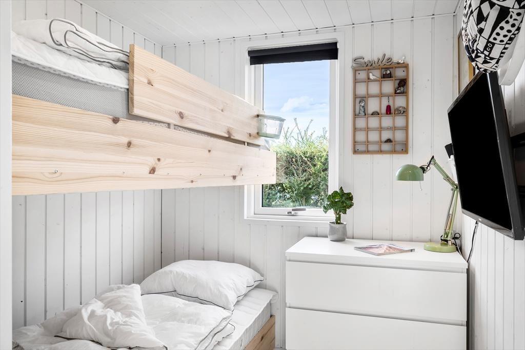 Gå en tur til stranden der kun ligger 130 meter fra huset. Efter du har dyppet tæerne i vandet, kan du skylle dig under den udendørs bruser i haven (1/5-1/10). Der er en rigtig dejlig terrasse, der helt naturligt bliver en forlængelse af stuen. Her kan man sidde i læ for vind og vejr under den delvist overdækkede terrasse. Der er udstyret med både grill og havemøbler. Et oplagt sted for feriens samlingspunkt til både morgenkaffe og grill-hygge om aftenen. Har du elbil er der etableret fælles ladeplads kun 100 meter fra huset.