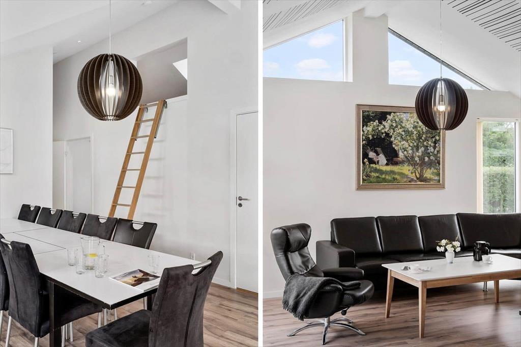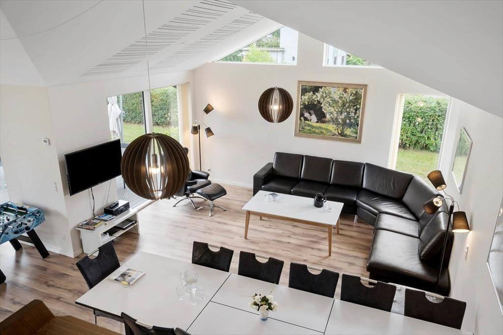 Når du træder ind i dette rummelige sommerhus, mødes du af en lys og indbydende atmosfære. Stuen er indrettet med komfortable møbler og store vinduespartier, der giver masser af naturligt lys og udsigt til den smukke natur udenfor. Her kan hele familien samles omkring spisebordet til hyggelige måltider, eller slappe af i sofaen med en god film. Køkkenet er moderne og veludstyret, så det er nemt at tilberede lækre måltider til alle. Husets højdepunkt er dog det luksuriøse spa- og saunaområde, hvor du kan nyde en afslappende stund efter en dag fuld af aktiviteter.