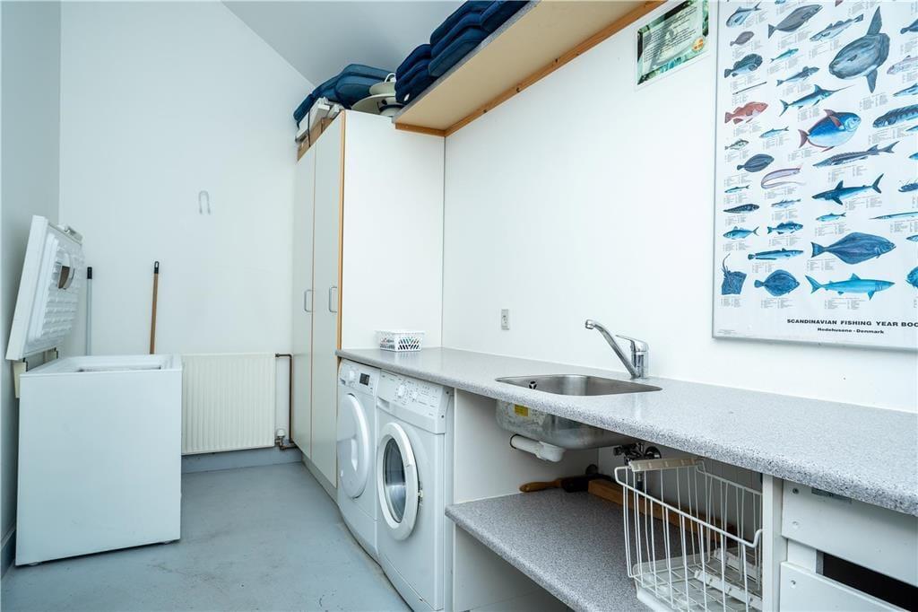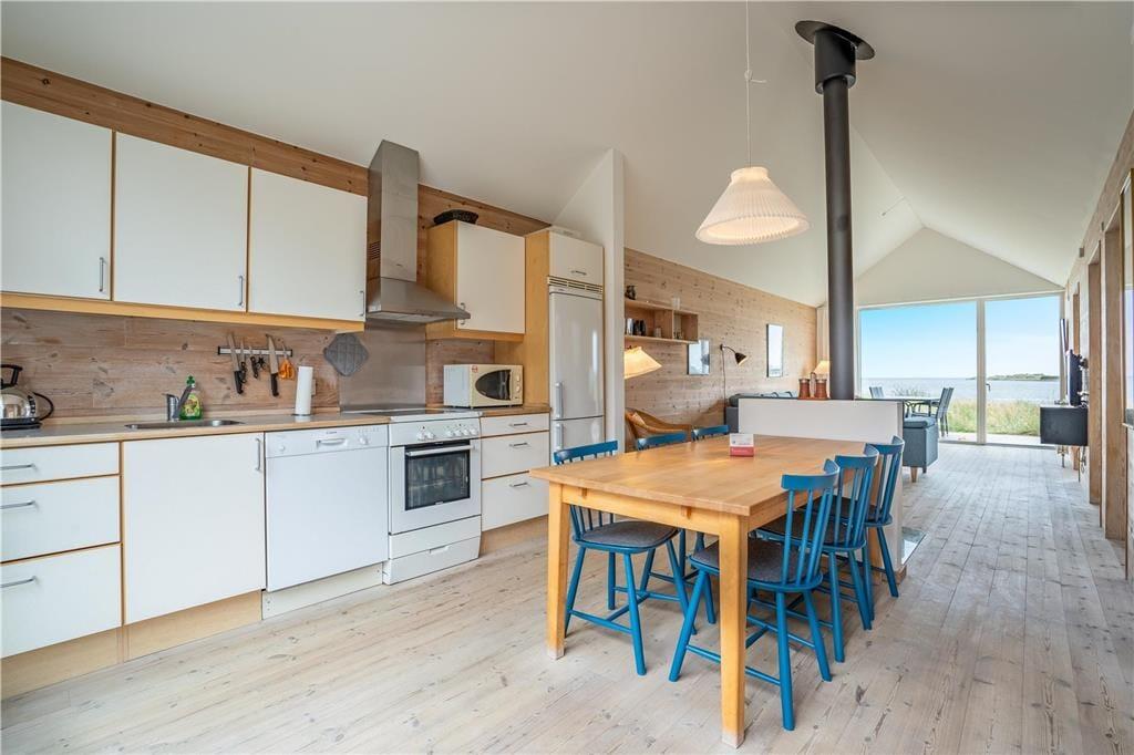 Terrassen vender stik syd, og den ligger direkte ud til strandengen og fjordens bred, og her kan I nydes sommerens sol dagen lang med en uspoleret panoramaudsigt til vandet. Blæser brisen, er der læ i den godt afskærmede og uforstyrrede solgård. Garagen har ladeboks med stik til elbiler, og udhuset byder på vaskemaskine, tørretumbler, fryser og et grovkøkken, hvor lystfiskeren kan rense dagens fangst.