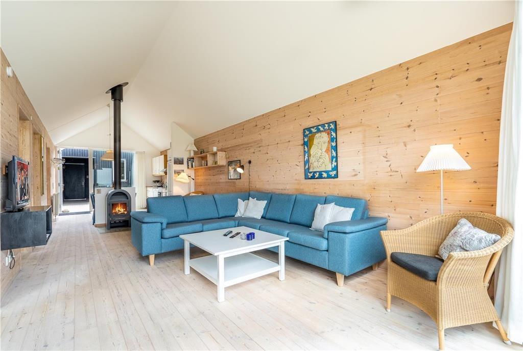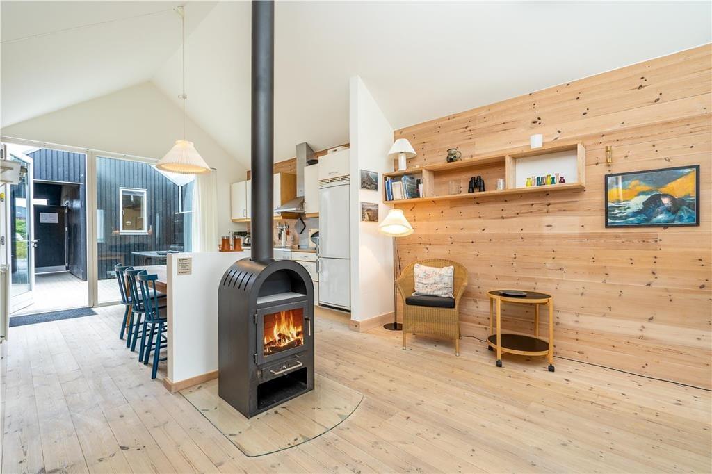 Feriehuset byder på et stort, åbent opholdsområde, hvor loft til kip giver en luftig atmosfære, mens knitrende ild i brændeovnen spreder en hyggelig stemning på de mørke aftener. Køkkenet er veludstyret, spisebordet har god plads til brætspil og måltider, og med opvaskemaskinen er rengøringen hurtigt overstået. Her er wi-fi, og stuen byder på tv, et hyggeligt sofaarrangement samt et stort vinduesparti med en smuk, uforstyrret udsigt til fjorden. De to badeværelser med gulvvarme giver wellness til feriedagene, for det ene byder på bruseniche og sauna, mens det andet er indrettet med et spabad. De to soveværelser har tilsammen sengepladser til fire personer, og det ene har direkte adgang til solgården, mens det andet har direkte adgang til terrassen.