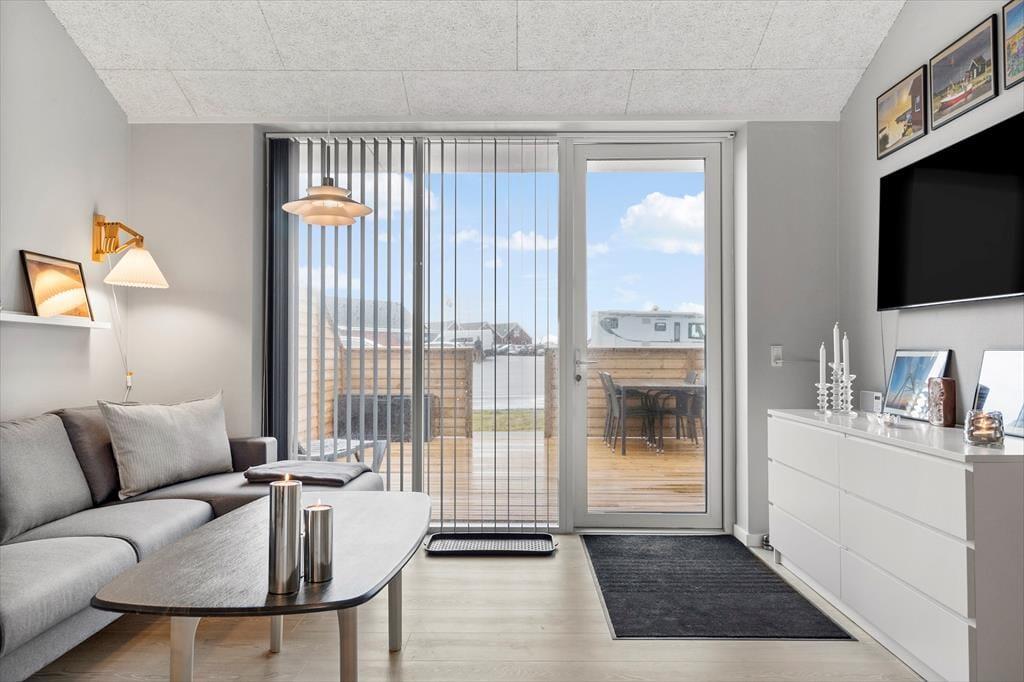 I får et fremragende udgangspunkt for at holde en skøn ferie, når det foregår i denne nyindrettede ferielejlighed fra 2023. Den ligger i det tidligere Hotel Holmsland Klit – og hvis I er stedkendte i Hvide Sande, vil I vide, at det er en supercentral adresse tæt på fiskemuligheder, spisesteder, butikker og det spændende havnemiljø.