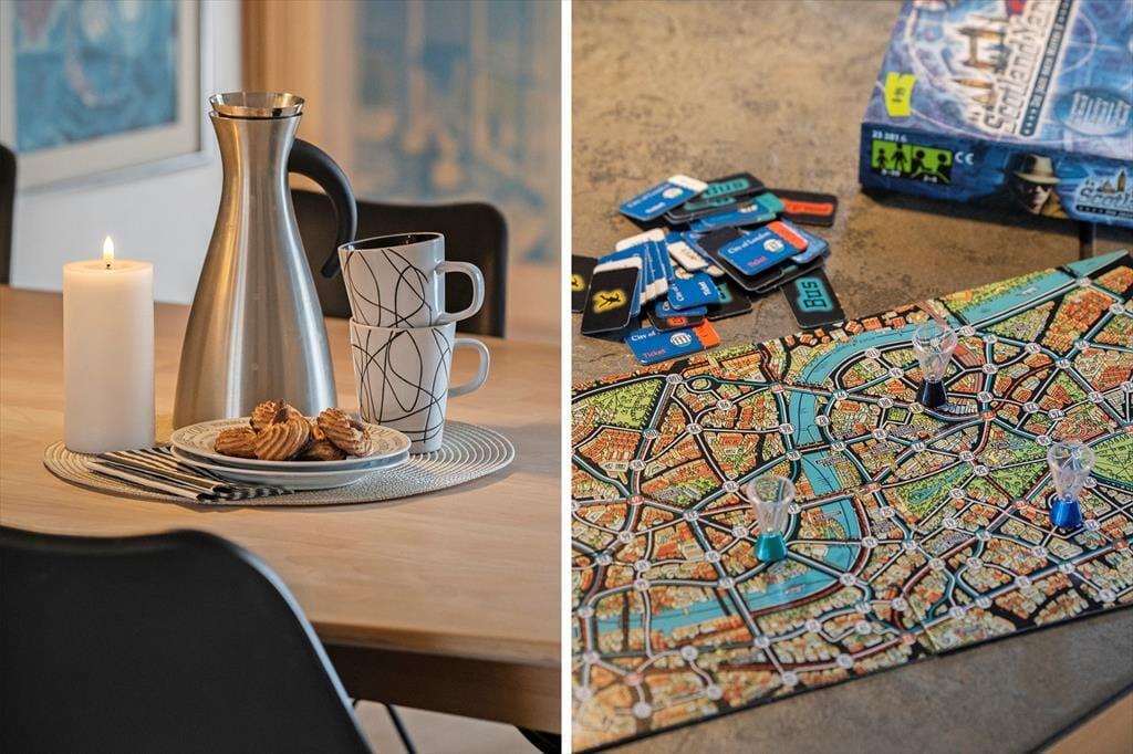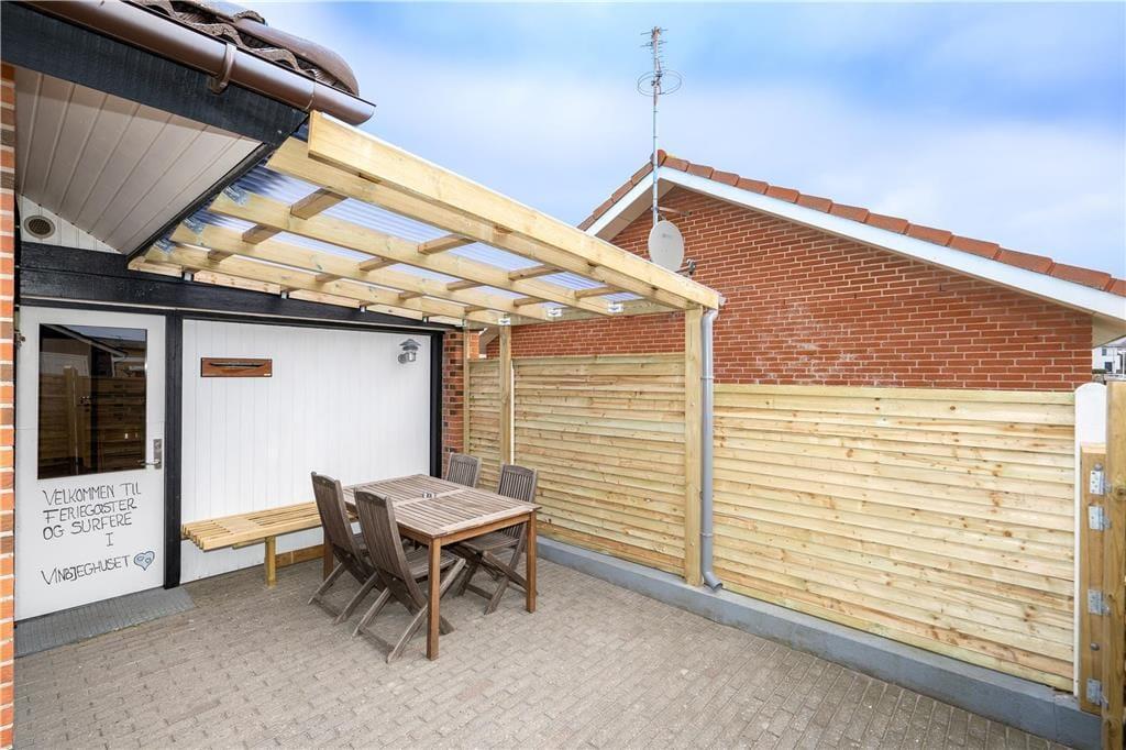 Vinbjerghusets udendørsfaciliteter er bestemt også velfungerende. Der er både et åbent og et overdækket terrasseområde, så I kan finde sol eller skygge alt efter humøret, og begge har for øvrigt gode læmuligheder. Hvis I har lyst til at lege, kan det foregå på den indhegnede græsplæne, der har god plads til fodbold og havespil. Garagen kan aflåses, så hvis I har medbragt surfudstyr, cykler eller fiskegrej, kan det opbevares sikkert. Udenfor garagen er der mulighed for at vaske surfbræt og våddragter, og hvis I er i elbil, kan I benytte jer af husets Easee ladeboks – den fungerer med en nøglechip, som kan afhentes hos i Hvide Sande.
