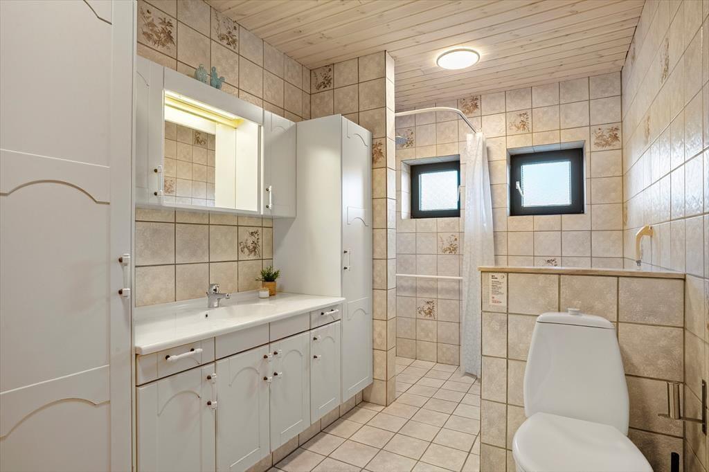 Det 139 m2 store hus har en glimrende planløsning til seks personer, for der er tre soveværelser, et badeværelse, køkken-alrum og stue inden døre. Alle rum har en god størrelse, selv entréen, der er indrettet med vaskemaskine og tørretumbler. Der er tv i stuen såvel som i køkken-alrummet, så I kan både følge med i nyhederne under madlavningen og se film sammen i sofaen. Og hvis I ikke kan blive enige om valget af tv-kanal, er der sågar tv på det ene soveværelse. Badeværelset har både bruser og badekar, så aftenen kan også byde på en rolig wellness-stund i form af et varmt bad – det kan være den perfekte afslutning på en lang dag fuld af sjove ferieaktiviteter.