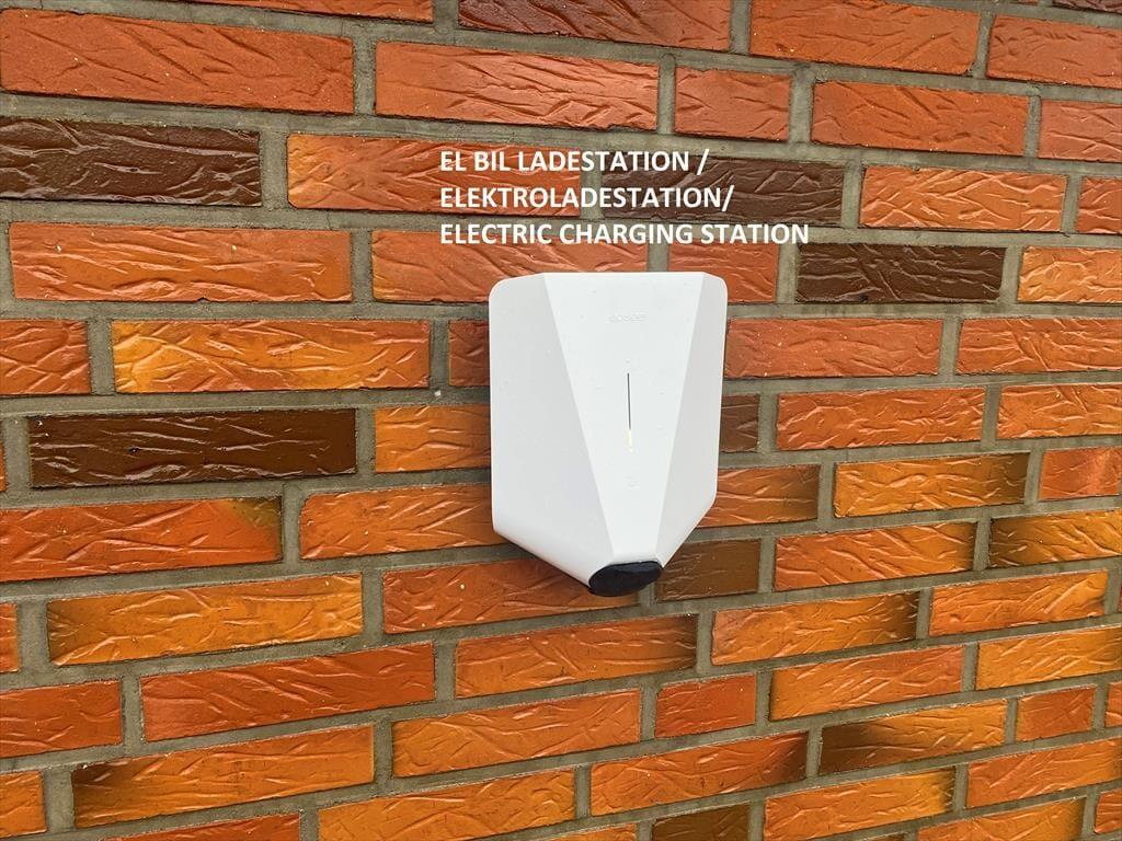 Opladning af elbil tilladt / Lader til elbil forefindes (Type 2-stik, medbring kabel)El-lade stander EASEE boks - type 2 stik. Nøgle hertil afhentes hos Feriepartner