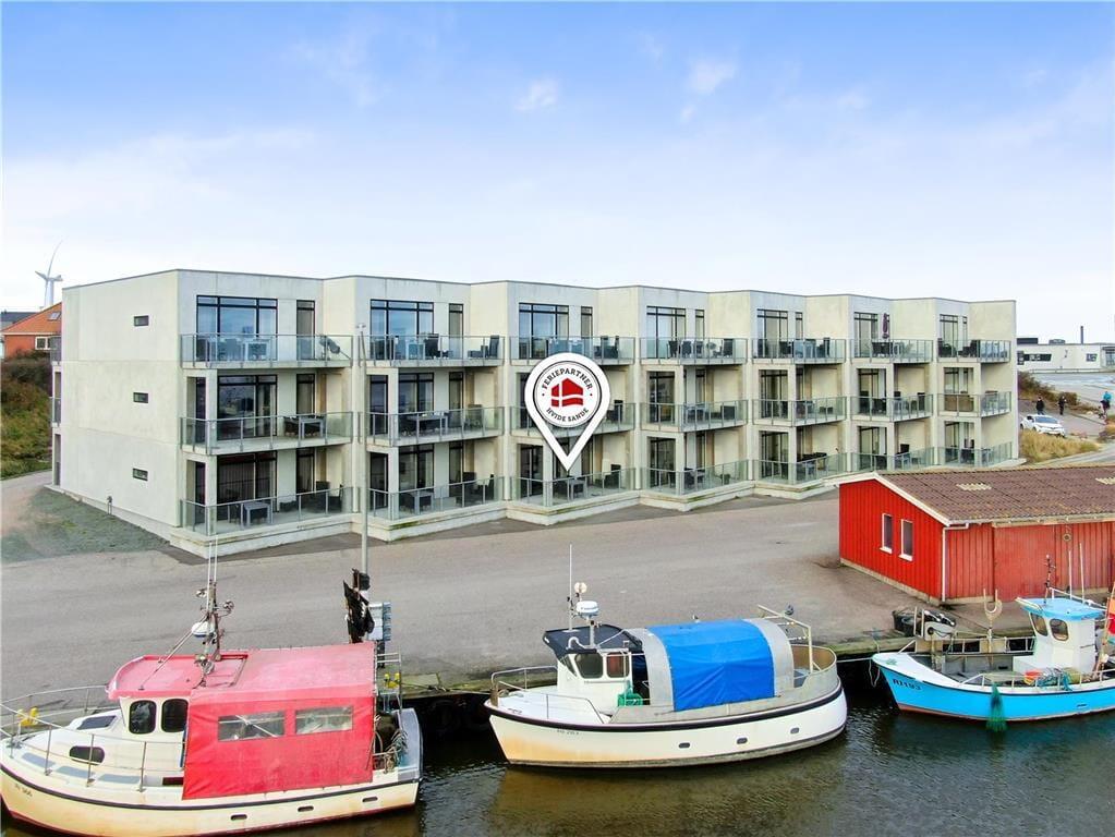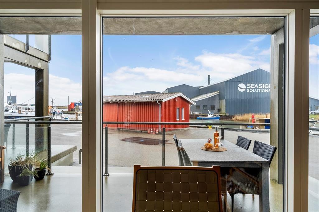 Der er mange plusser ved denne fine ferielejligheds beliggenhed i Hvide Sande. Fra boligen er der særdeles kort afstand til bymidten og slusen, og Vesterhavet er i kort gåafstand. Måske bedst af alt ligger lejligheden i første række ud mod havnen, så fra både stuen og terrassen har I udsigt til Ringkøbing Fjord.