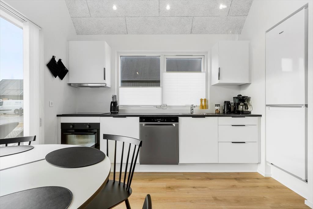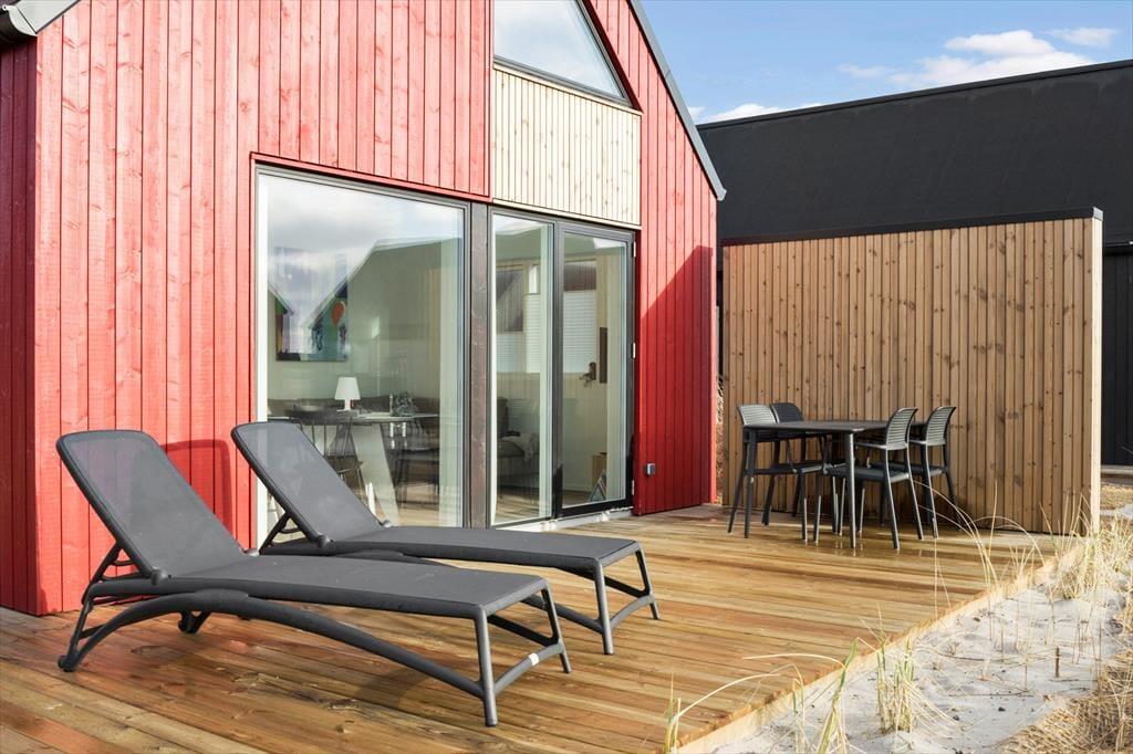 Langsand Langs Sand er en samling af charmerende sommerhuse, hvis arkitektur minder om klassiske, farvestrålende fiskerhytter. Netop dette eksemplar har rød træfacade, og inden døre er atmosfæren lys, let og indbydende. Som man kan forvente af et nyopført byggeri, er der tjek på tingene, og komfortniveauet er højt. Der er for eksempel gulvvarme i hele huset, og opholdsafdelingens åbne køkken er veludstyret, så madlavningen kommer til at gå som en leg. Det lækre badeværelse er med bruser og kombi-vaskemaskine, og på de to soveværelser kan I se frem til at sove både godt og længe. Desuden er der et ekstra TV i det ene soveværelse, så alle kan se yndlingsprogrammet eller streame via chromecast på hurtig internet 200/200 Mbit.