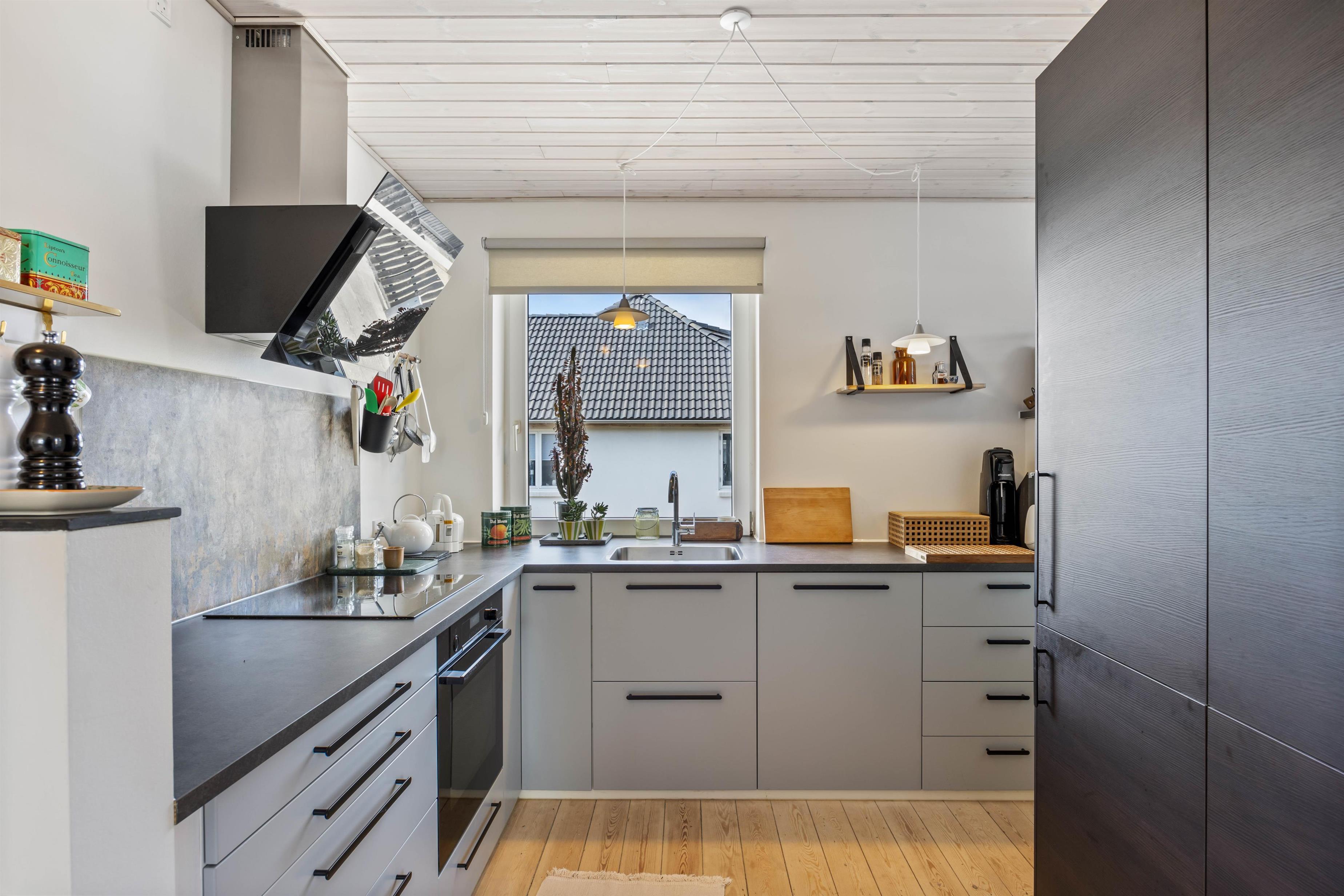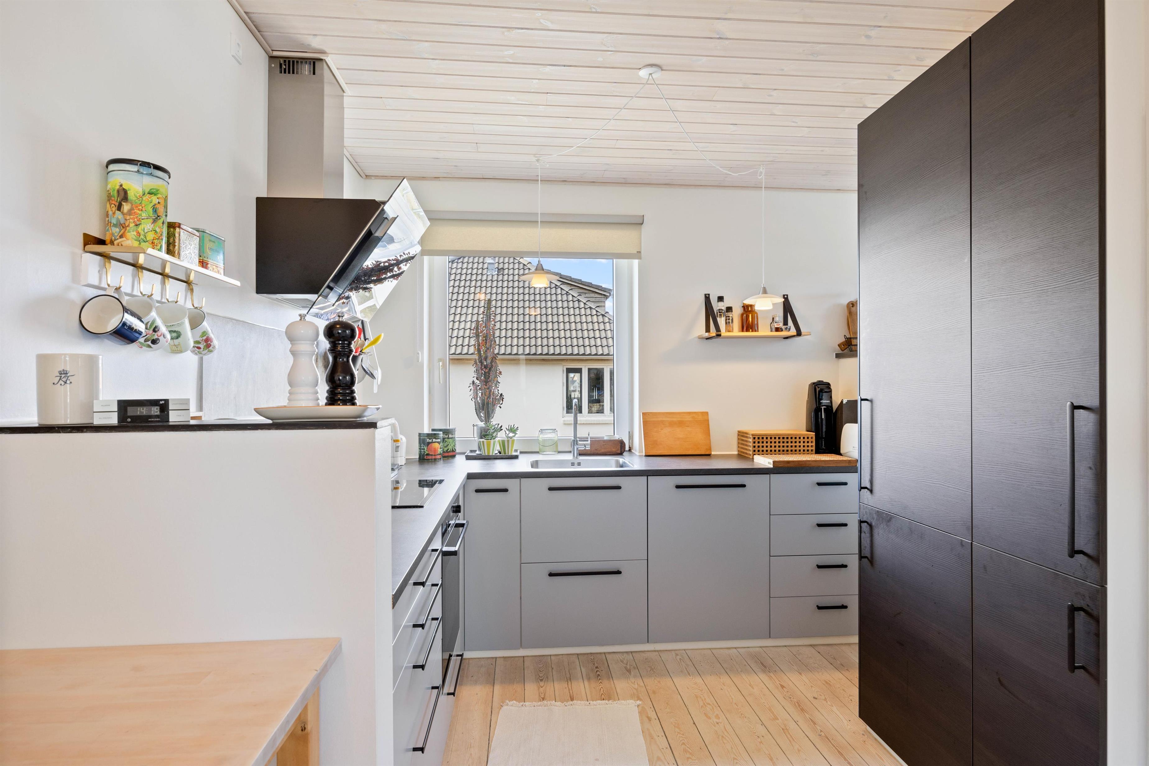 Efter en dag med masser af aktiviteter i byen eller afslapning ved stranden, kan I afslutte og starte dagen på bedste vis i byhuset. Her kan familien samles – enten til et lækkert aftensmåltid ved spisebordet eller en god film i sofaområdet. Til aftensmad kan I med fordel tilberede jeres friskfanget fisk, som I kan opbevare i 90 liter fryseren. Både i køkkenet og i kælderen er der køleskab og fryser. I kælderen finder I desuden også et tekøkken.