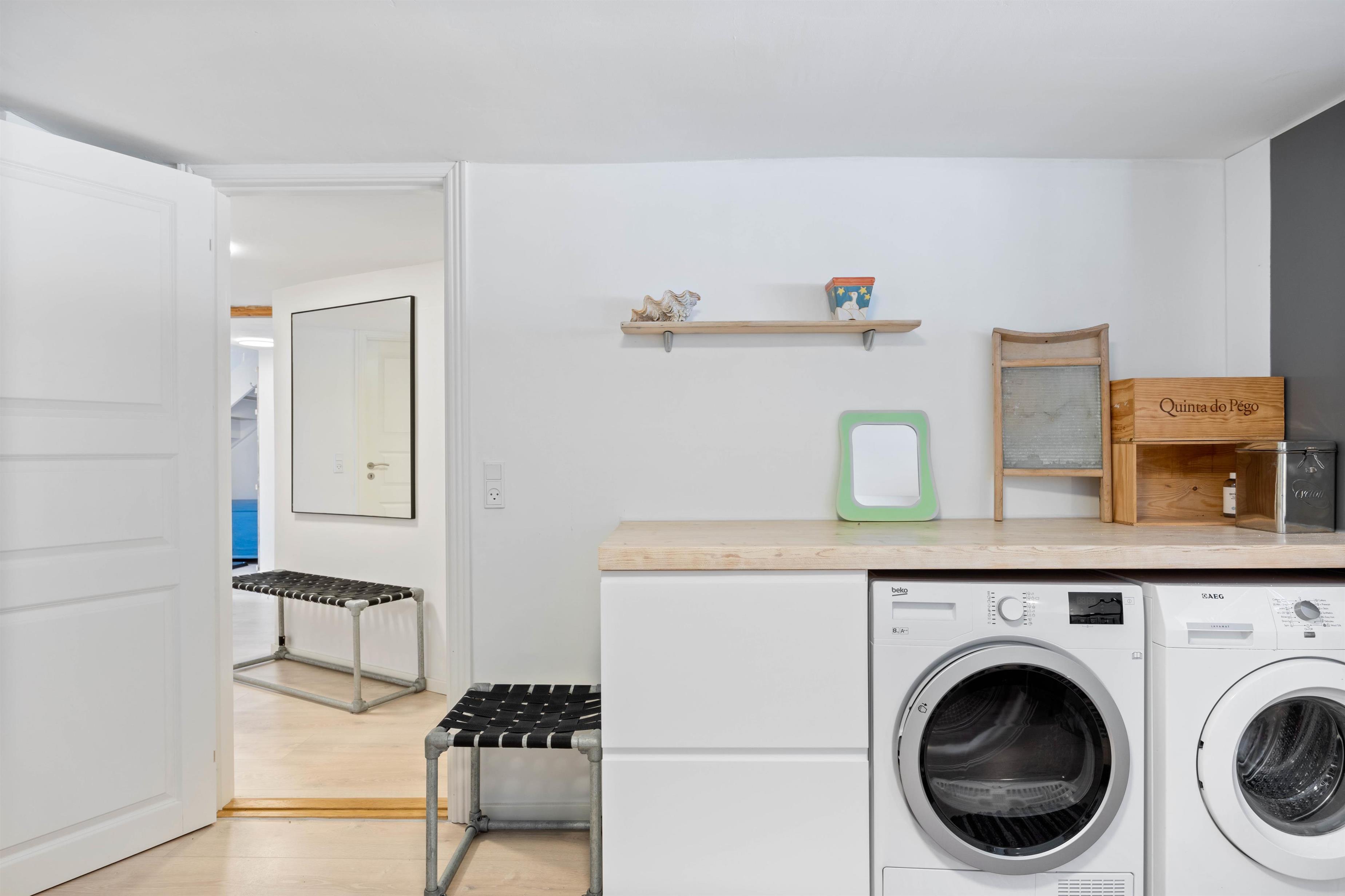 Desuden er der både tørretumbler og vaskemaskine, så I kan få rent tøj på efter en dag ved stranden eller ude i naturen.