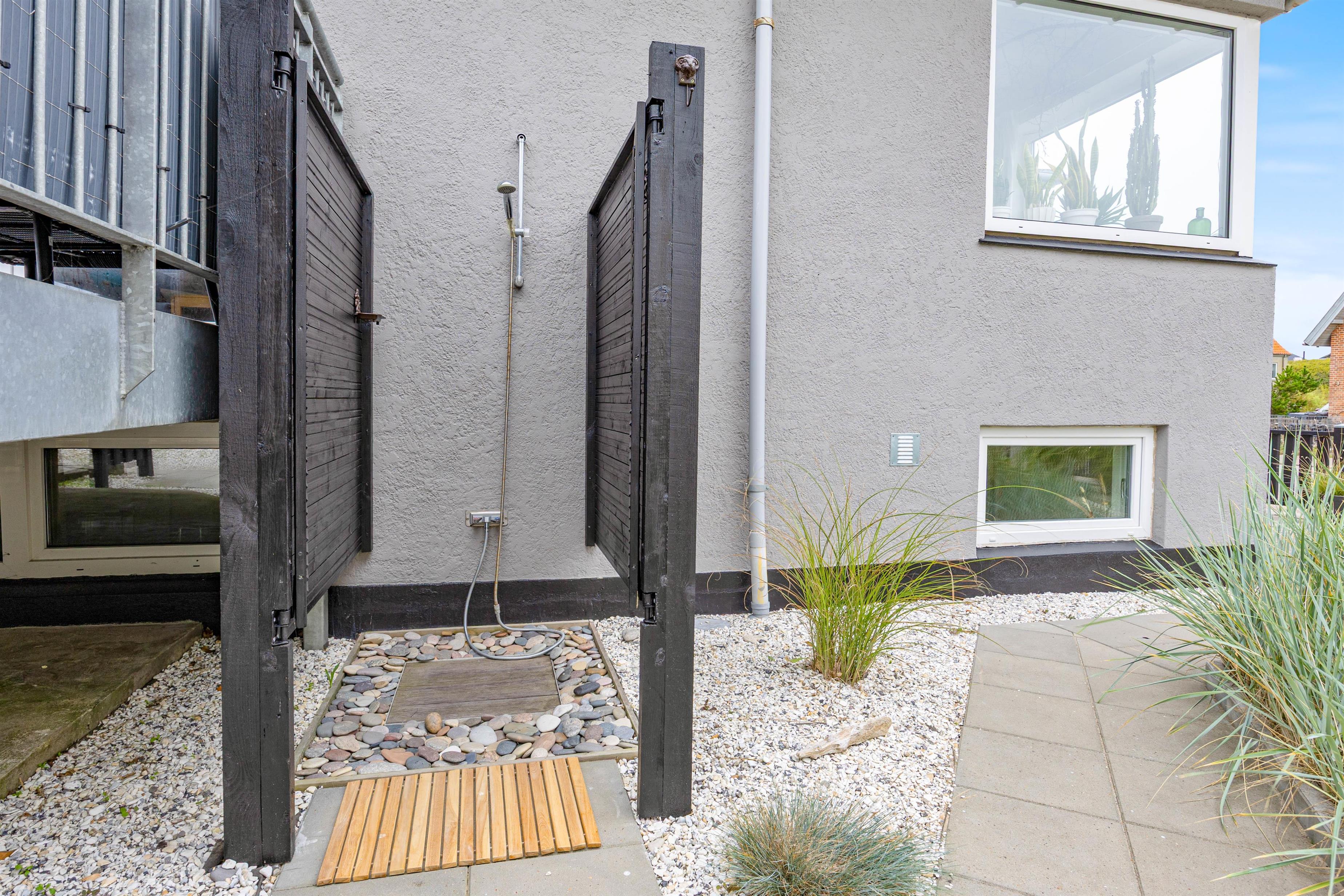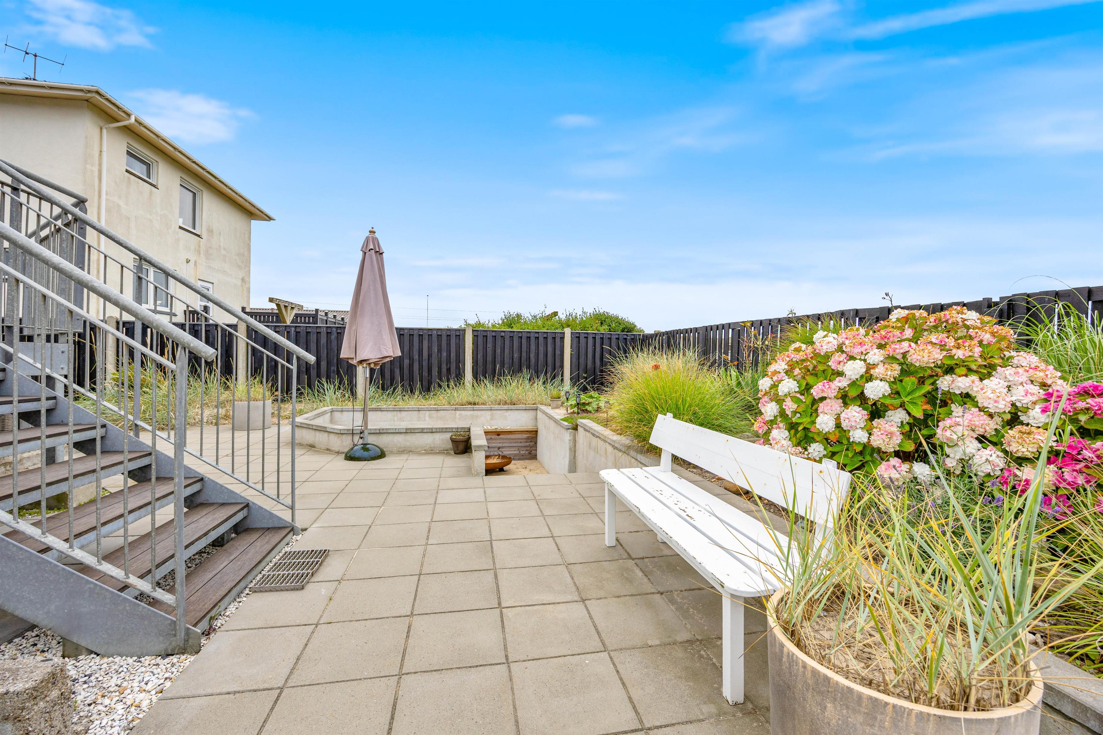 Tilhørerende byhuset er en hyggelig, afskærmet og åben terrasse. Her kan I nyde de komfortable havemøbler i det skønne danske vejr. En kop kaffe eller frokost kan med fordel nydes i solens stråler på terrassen. Her er der desuden en gasgrill, så I kan lave et lækkert grillmåltid til aftensmad. Hvis I er fiskeriinteresserede kan I grille jeres friskfanget fisk til aftensmaden.