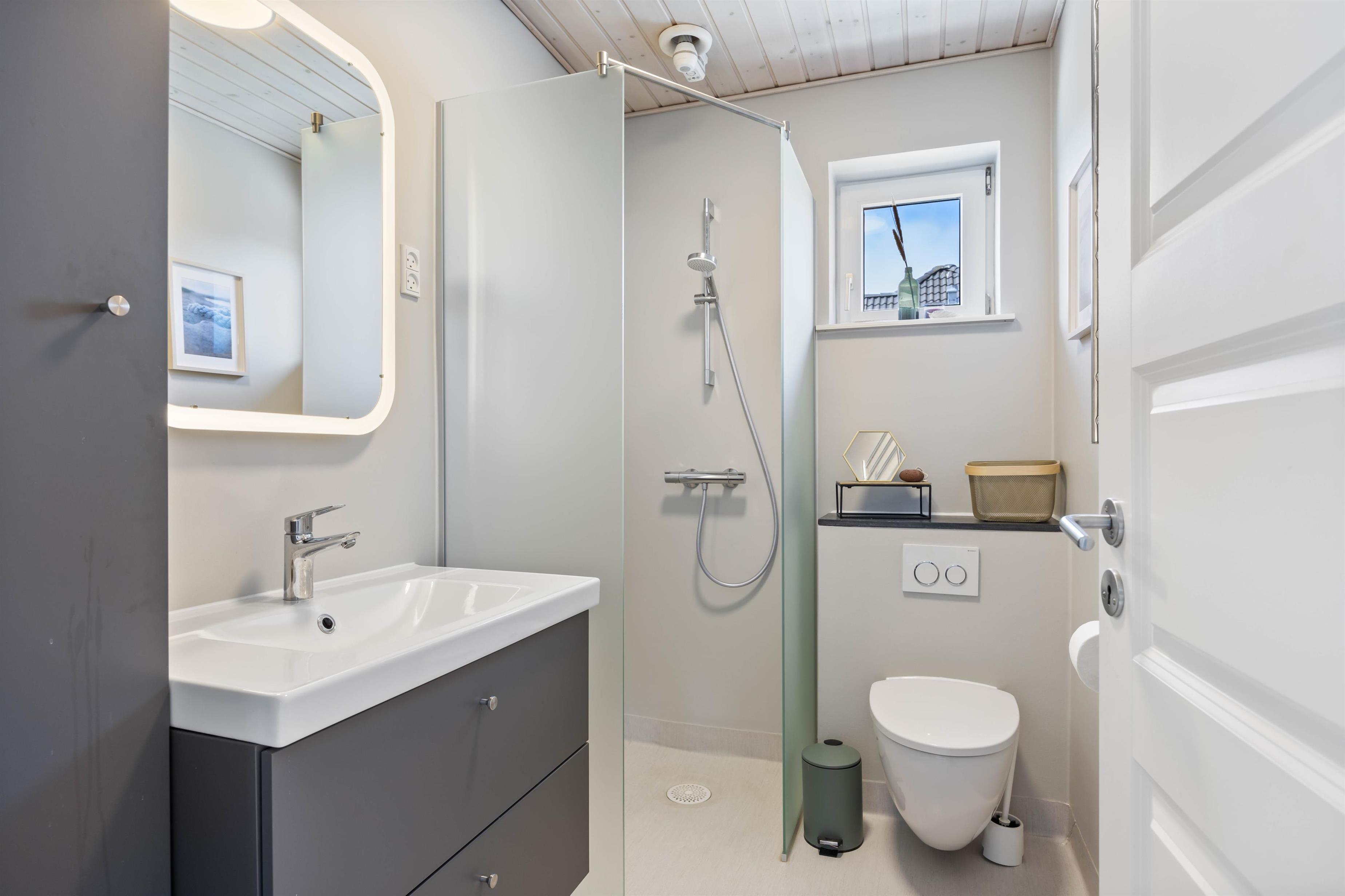 Byhuset har to badeværelser, så I ikke behøver at stå i kø om morgenen for at gøre jer klar til dagens oplevelser. Begge badeværelser er velindrettede og med gulvvarme, så I ikke skal fryse fødderne om morgenen. Desuden er der billig fjernvarme i huset, så I kan sørge for at holde omkostningerne nede.