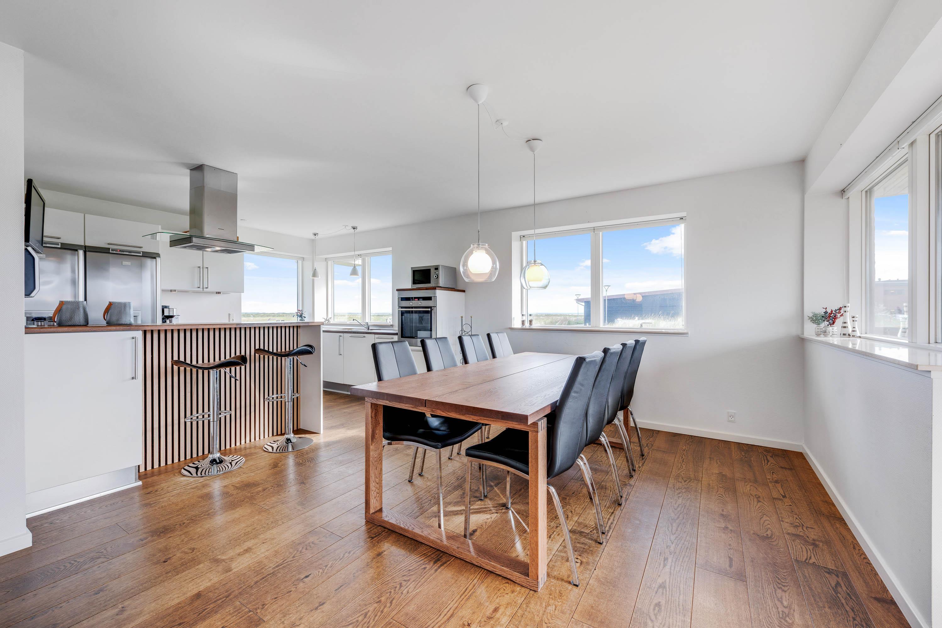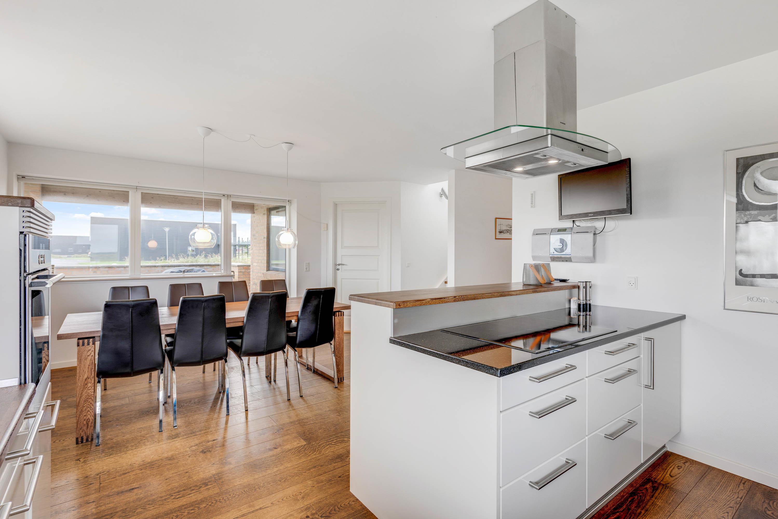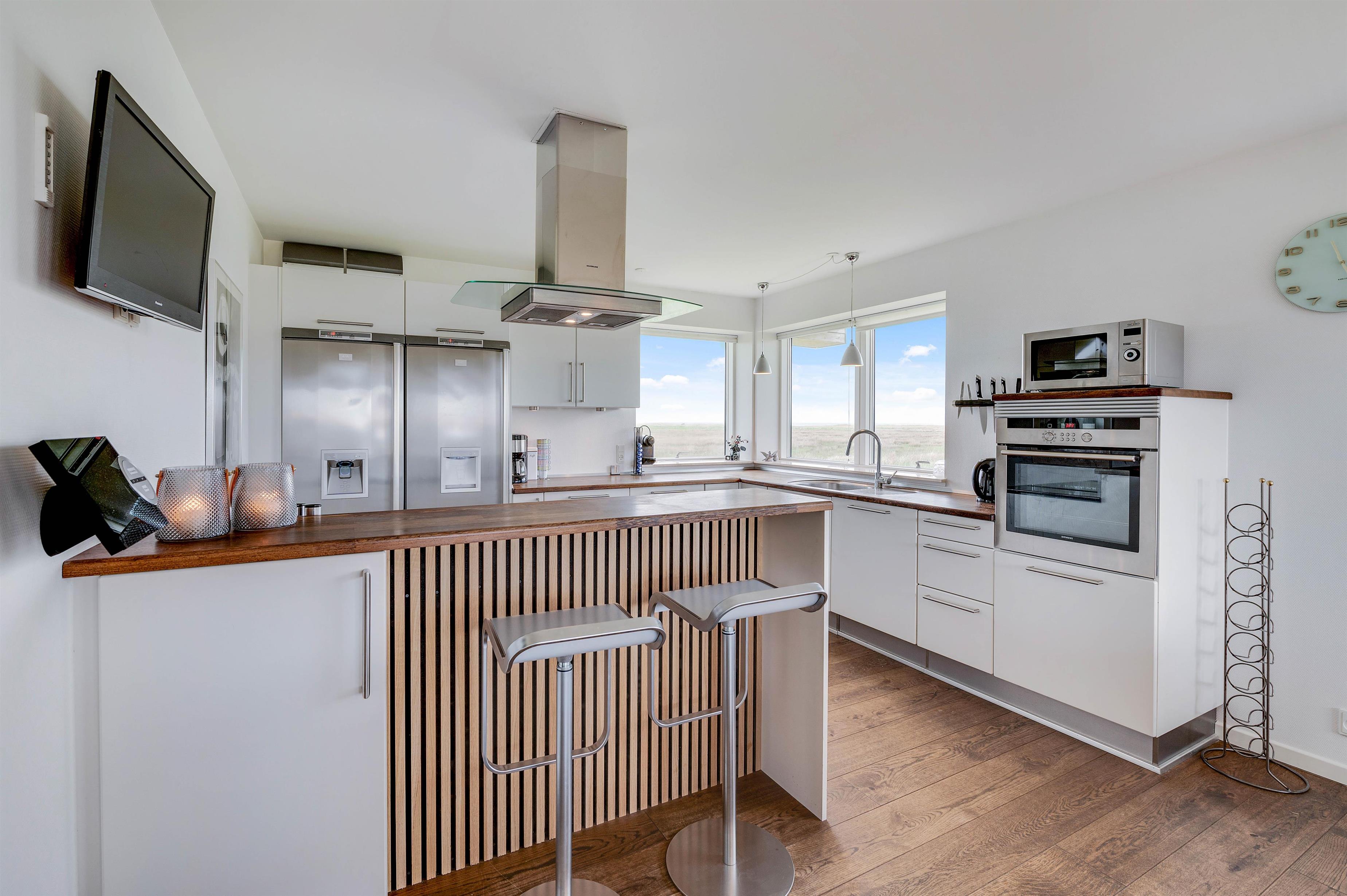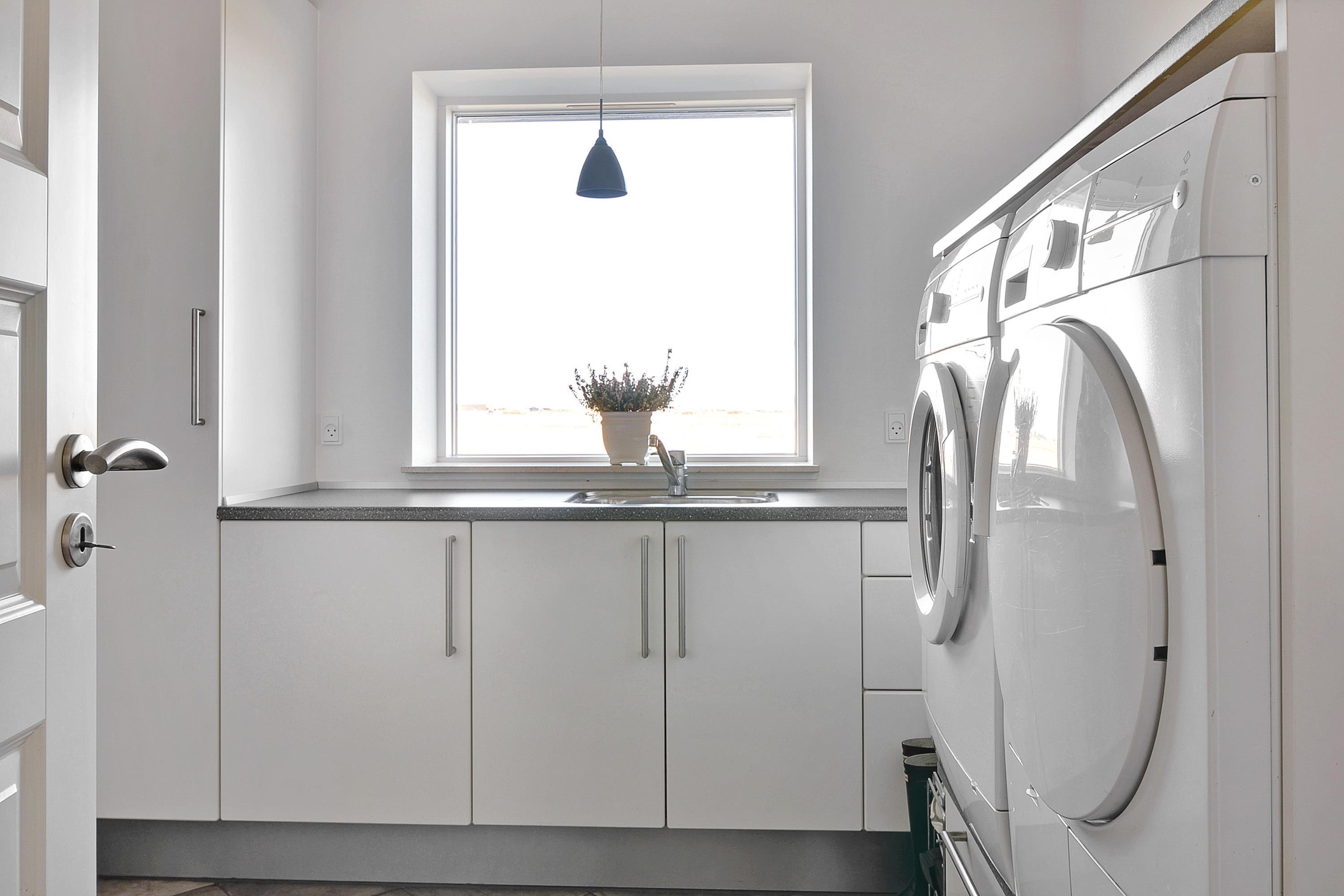 Sommerhuset er dejlig rummeligt og lyst, og de mange vinduer giver jer en fantastisk udsigt ud over engen og fjorden, både under madlavningen og fra sofaen. Der er både opvaskemaskine, vaskemaskine og tørretumbler i huset, og de praktiske opgaver er hurtigt overstået. Desuden er der gulvvarme på stueetagen.