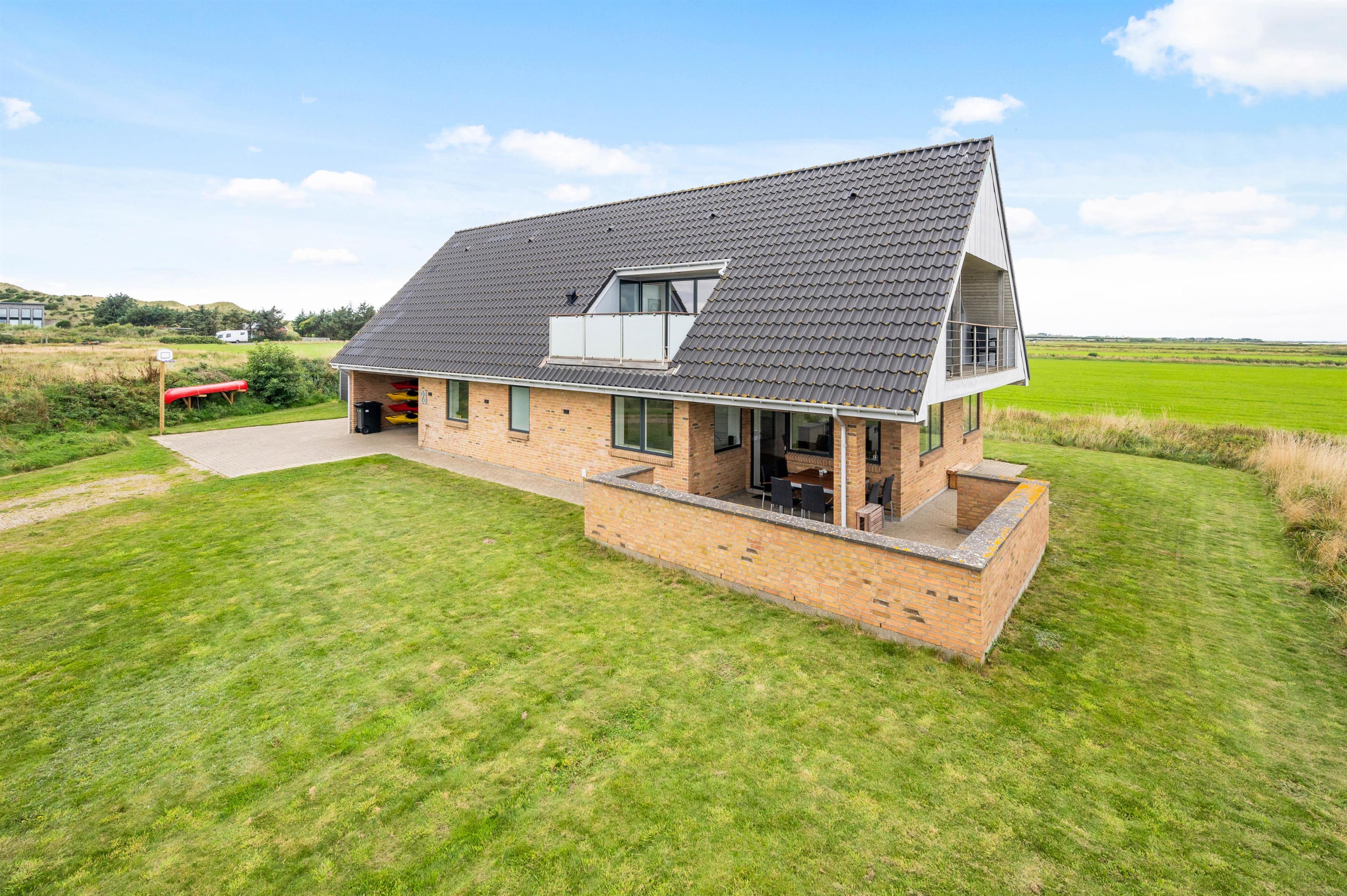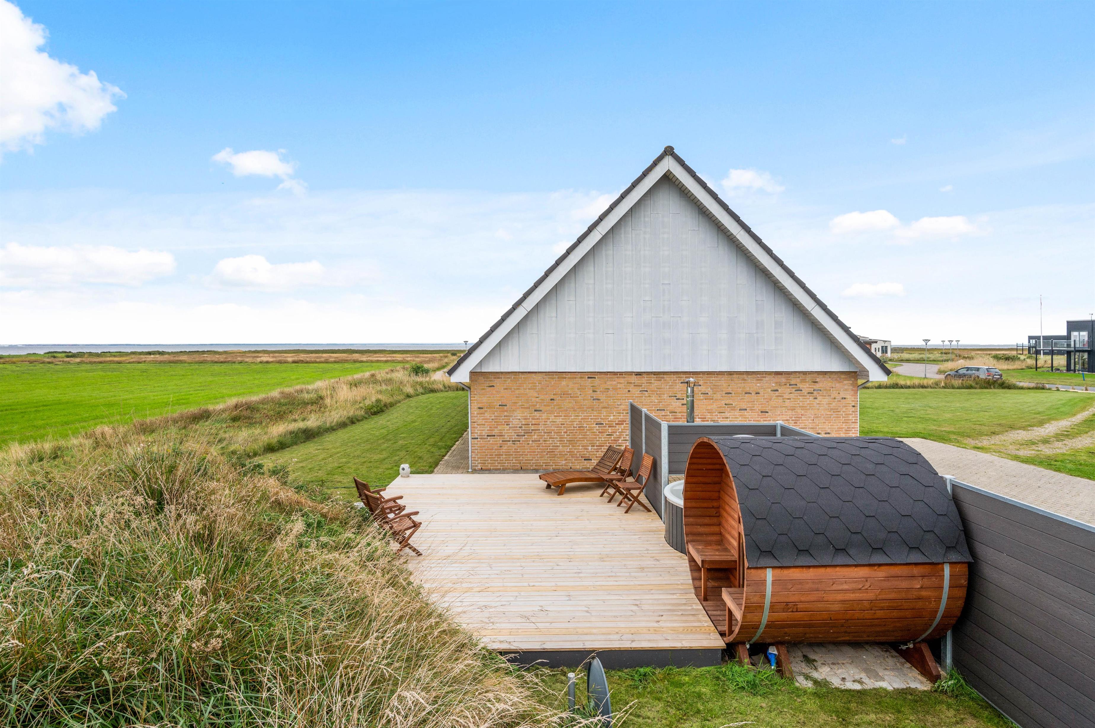 På Fjordengen i udkanten af Hvide Sande ligger dette moderne feriehus med plads til 8 personer (og 1 hund). Feriehuset er moderne indrettet og råder blandt andet over et fitnessrum, spabad, vildmarksbad, saunatønde, flere balkoner og udsigt ud over de grønne enge og Ringkøbing Fjord.