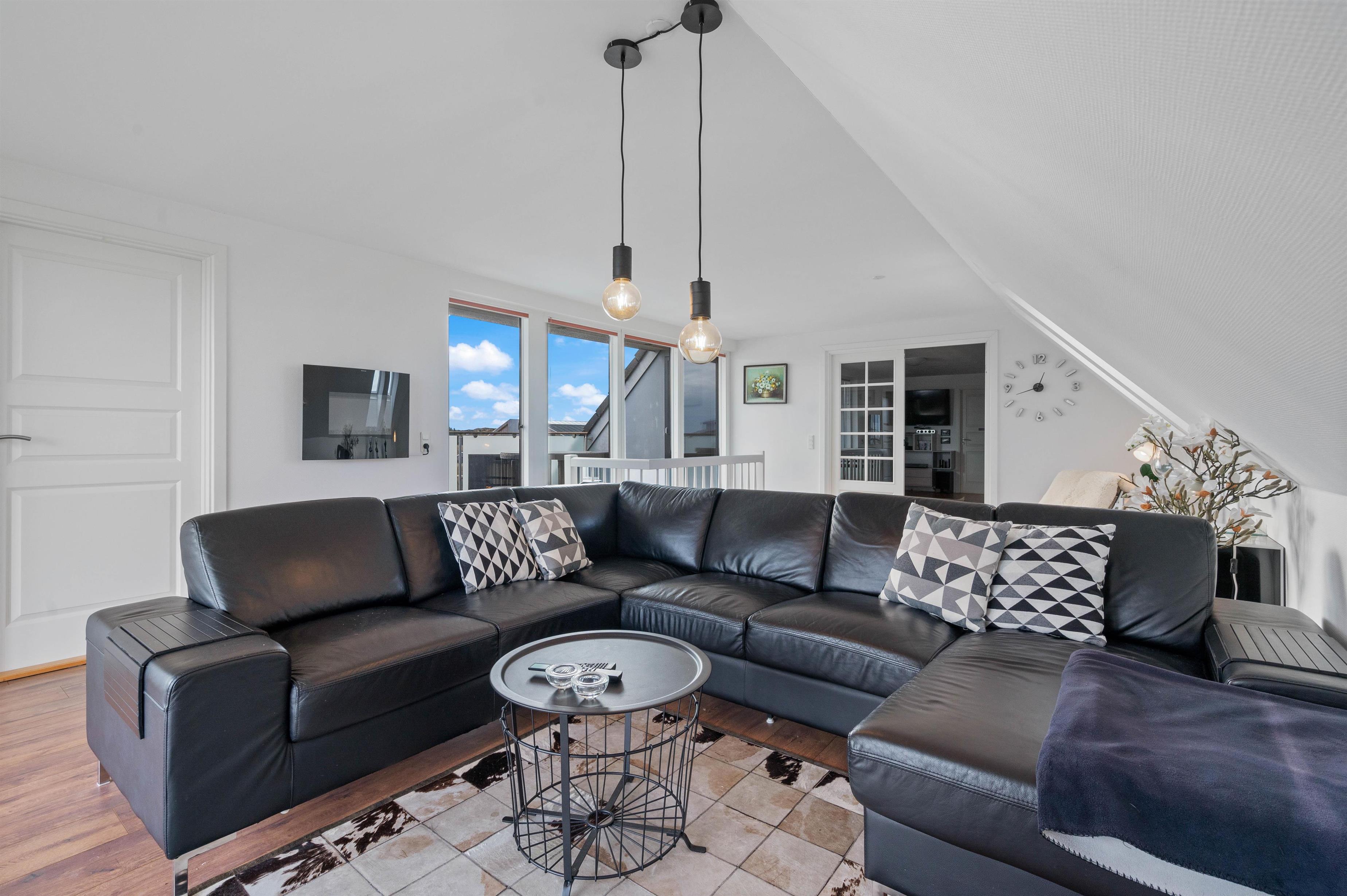 Hvide Sandes charmerende bymidte ligger kun få minutters kørsel fra huset. Det lille havnemiljø oser af feriestemning, især i sommersæsonen, og et stort udvalg af forretninger, restauranter og caféer venter på jer.
