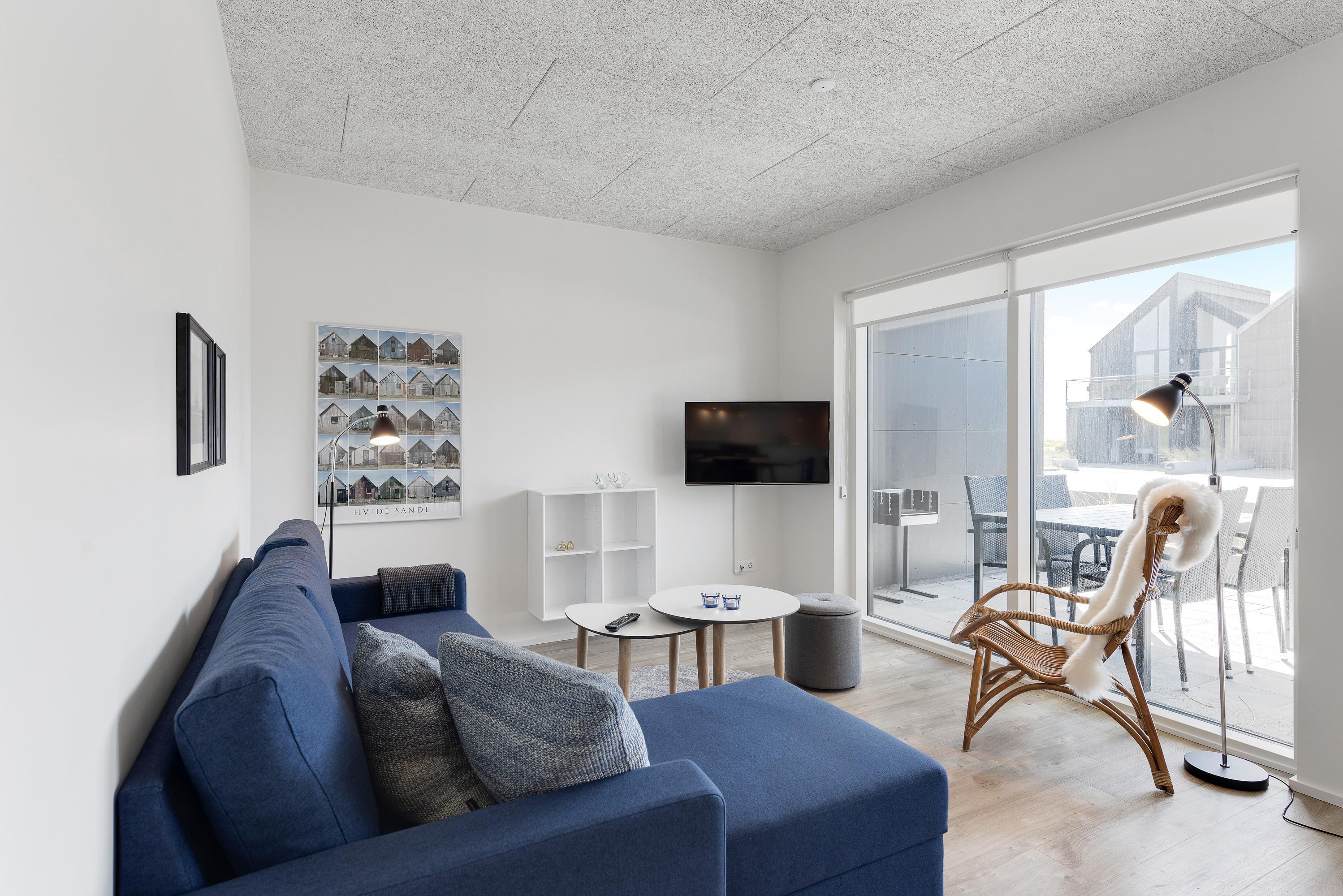 Lys og smagfuld ferielejlighed med stor terrasse mod vandet
