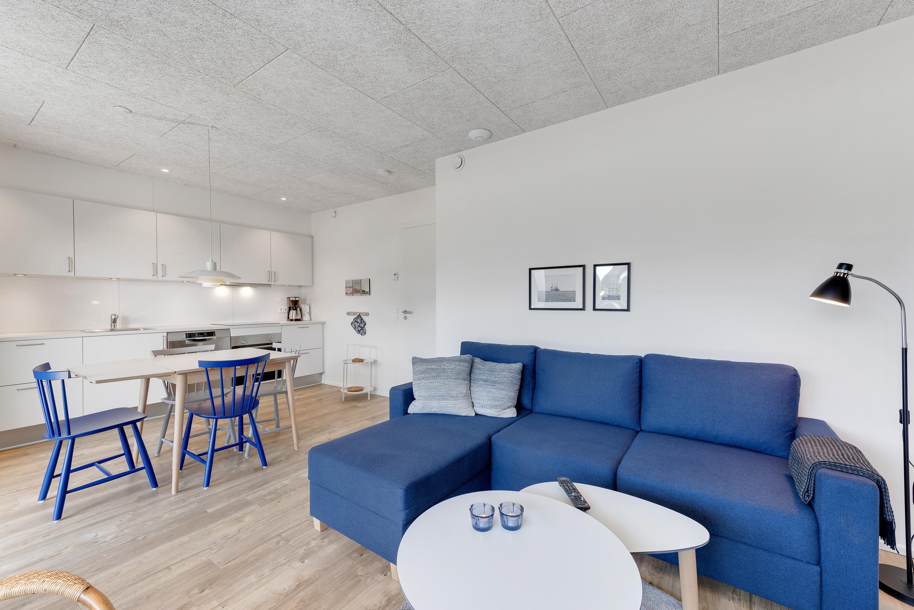 I den flotte og hyggelige lejlighed finder I et soveværelse med dobbeltseng, et fint badeværelse med brusekabine. Det kombinerede spise- og opholdsrum er lyst og flot indrettet med en veludrustet køkkenafdeling, bl.a. med opvaskemaskine. Gulvene er flot lys træ-laminat.