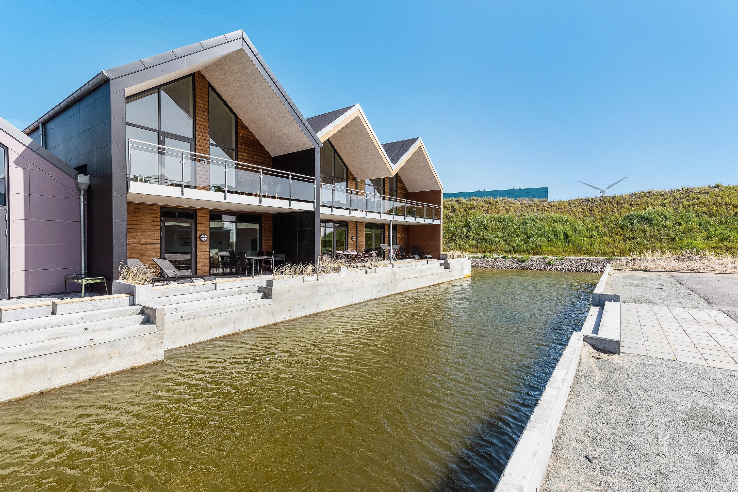 Nyd fjorden og miljøet ved vandet i kanal-feriebyen
