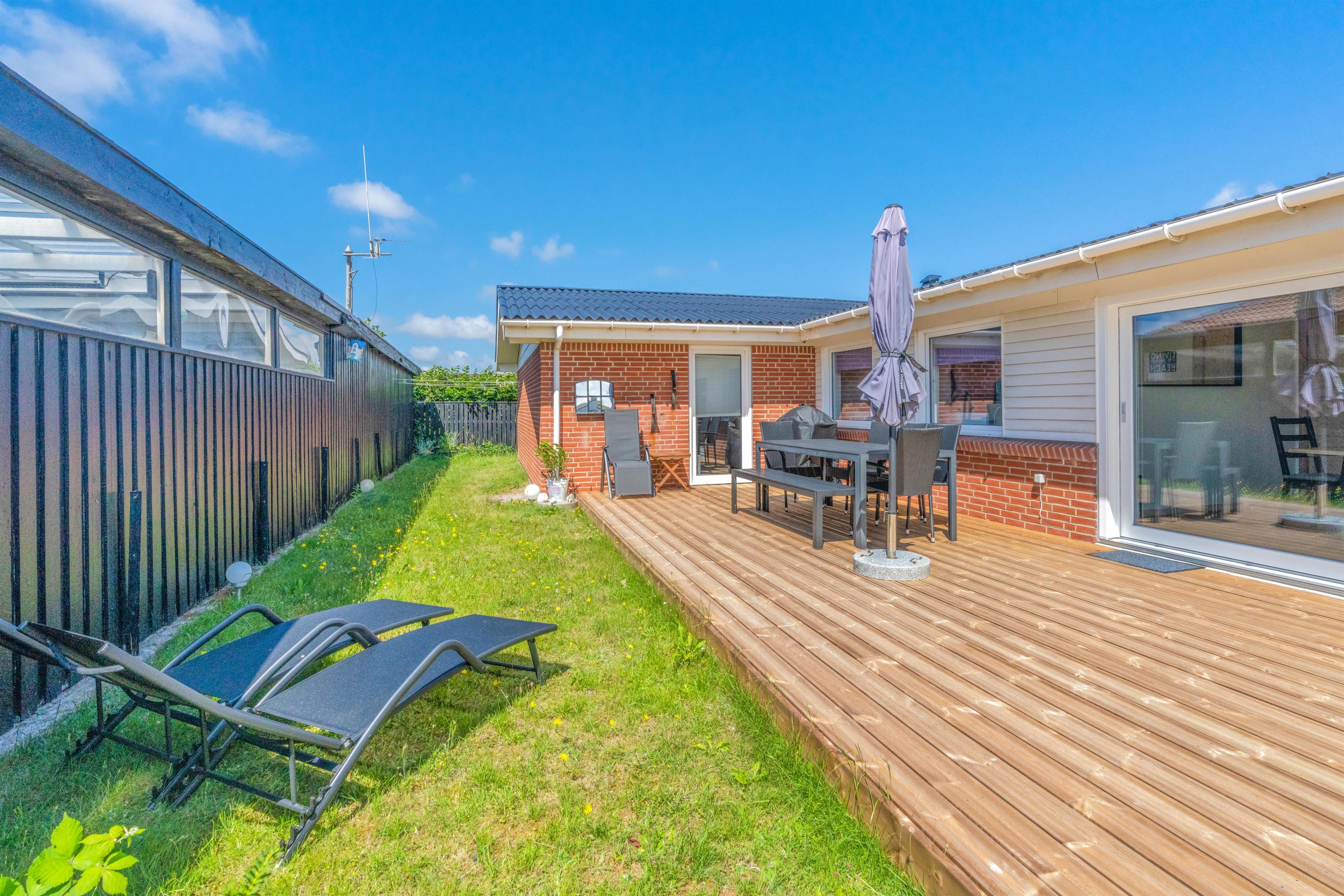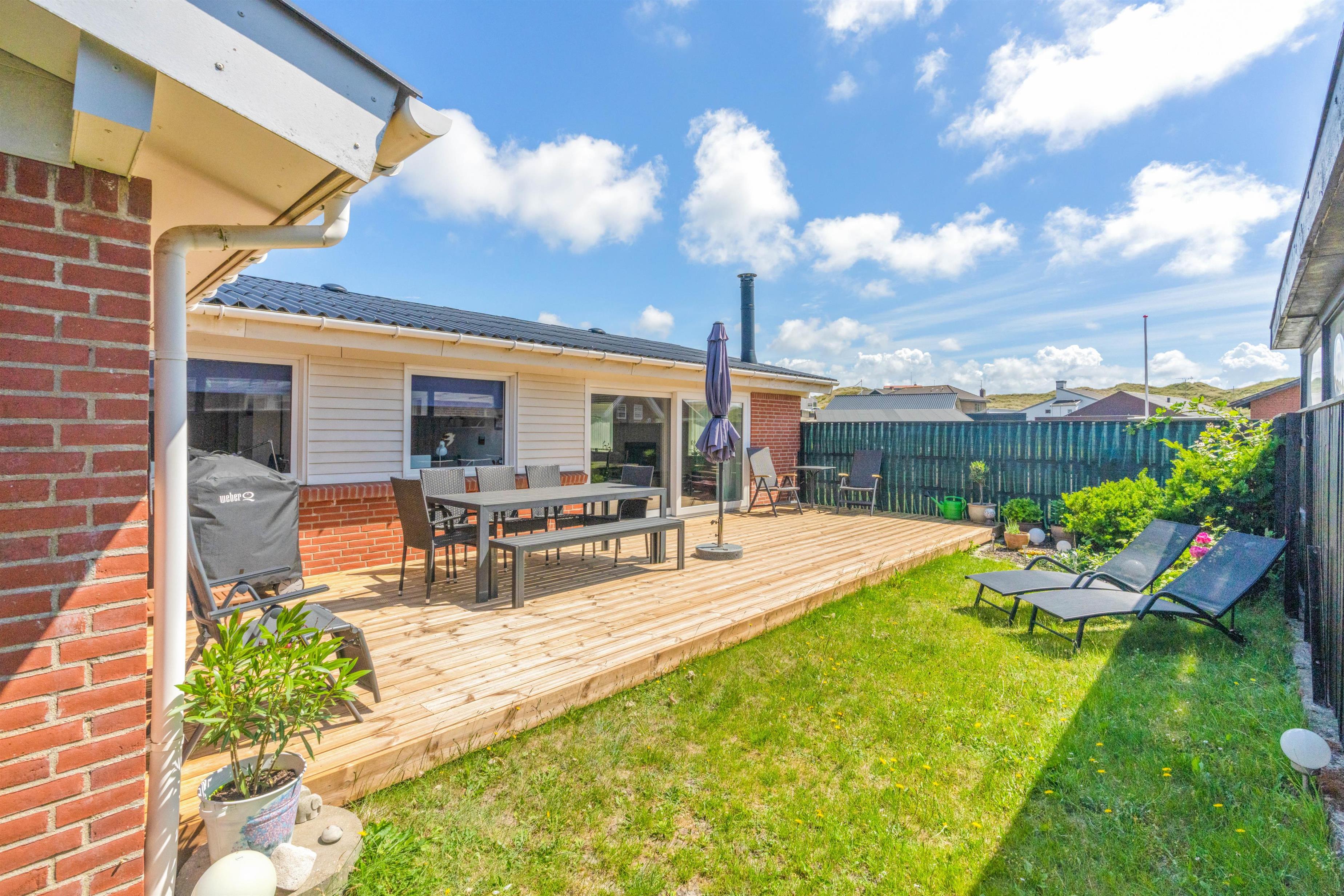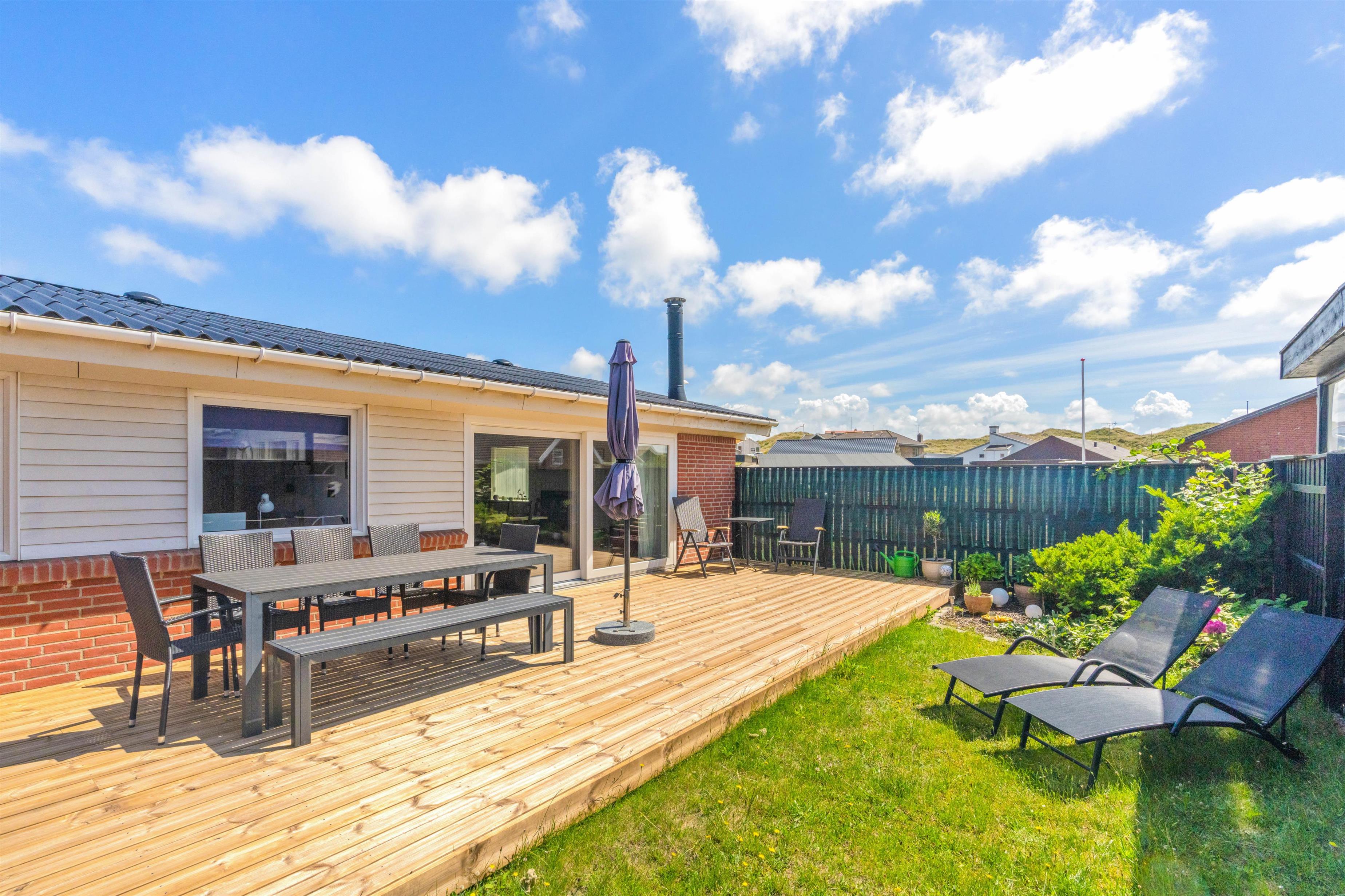 Feriehuset har en fin beliggenhed, hvor der hverken er langt til indkøb, restauranter eller Vesterhavet. Går I 250 meter mod vest ender I ved Vesterhavet og den fine sandstrand. Her er der både mulighed for skønne gåture eller leg med børnene. Derudover har I til aften mulighed for at se en smuk solnedgang til lyden af havets brusen.