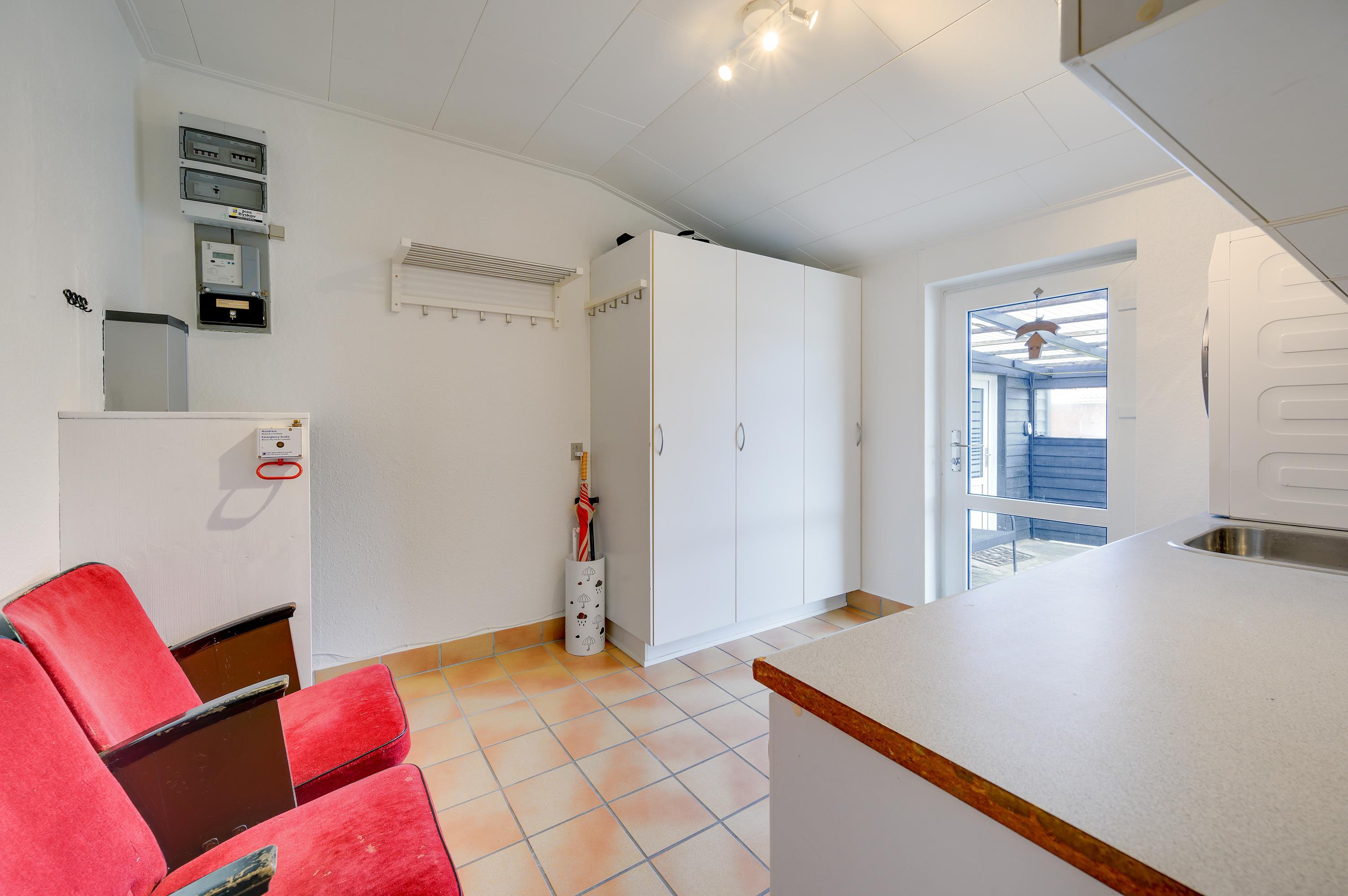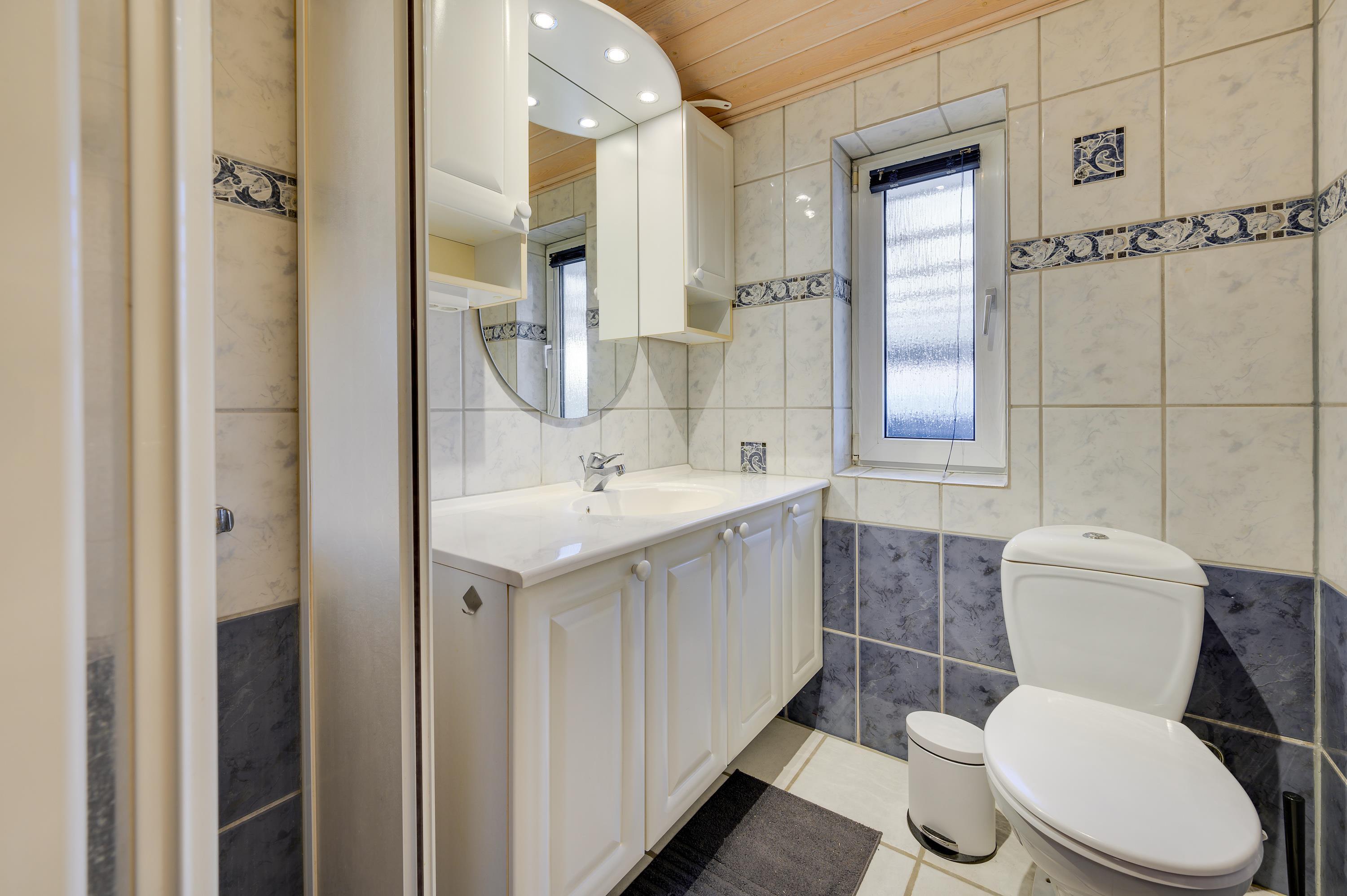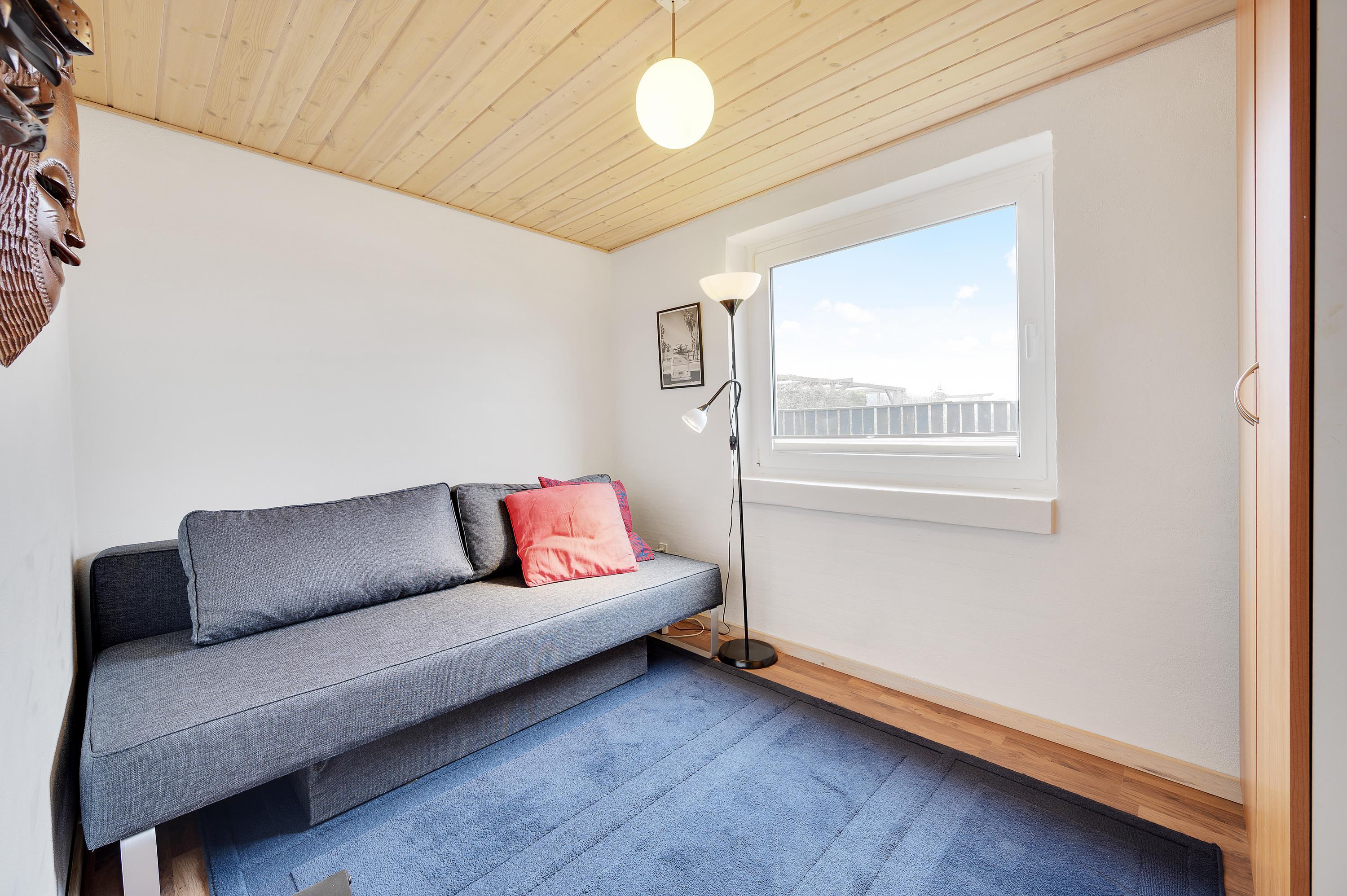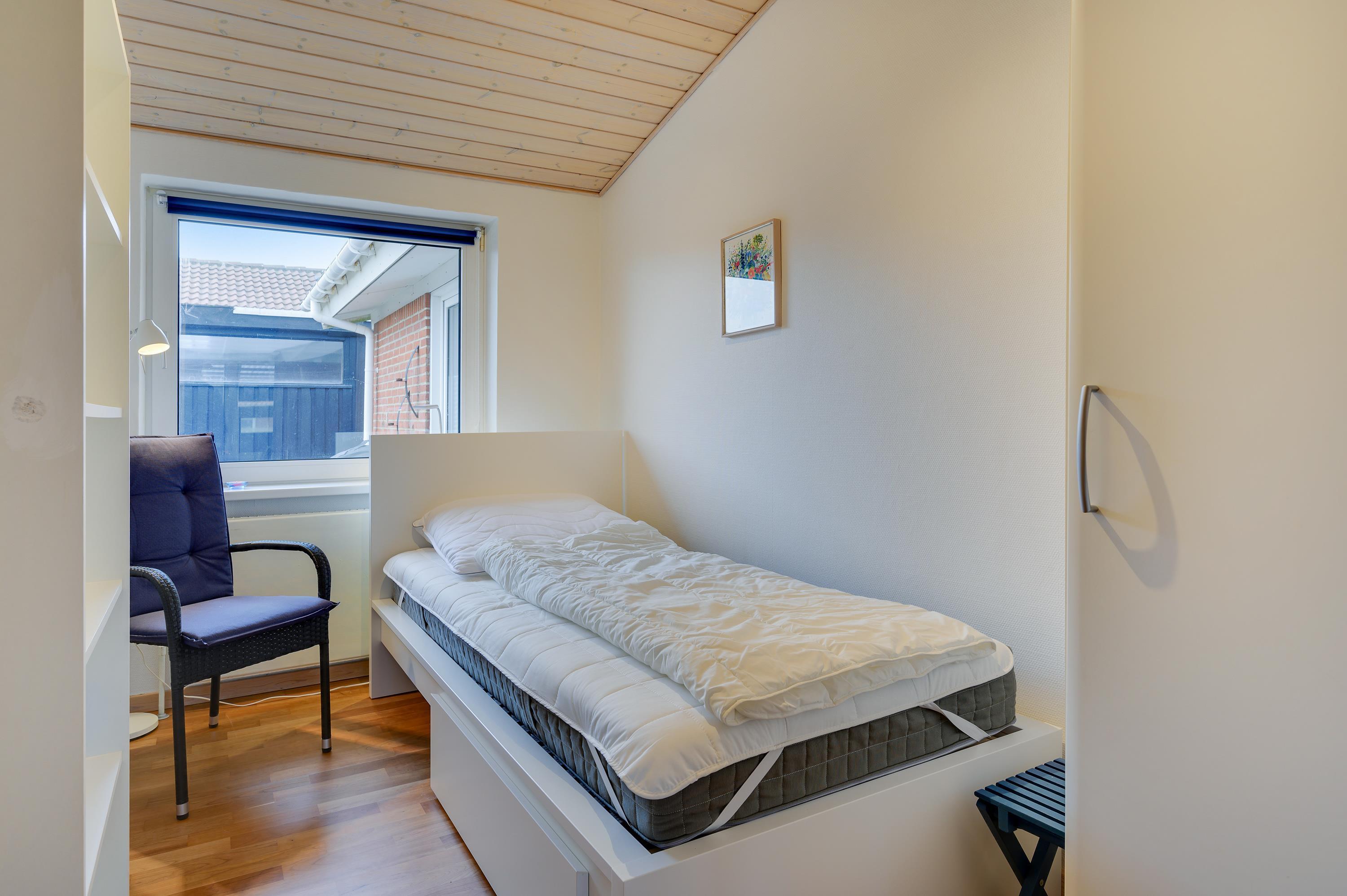 Feriehuset har i alt 5 soveværelser, hvor de 8 sovepladser fordeler sig på 2 dobbeltsenge, 2 enkeltsenge samt en sovesofa. Der er 2 badeværelser i sommerhuset – begge med gulvvarme. Desuden er der mulighed for at få vasket tøj under ferien, da der både er vaskemaskine og tørretumbler i sommerhuset.