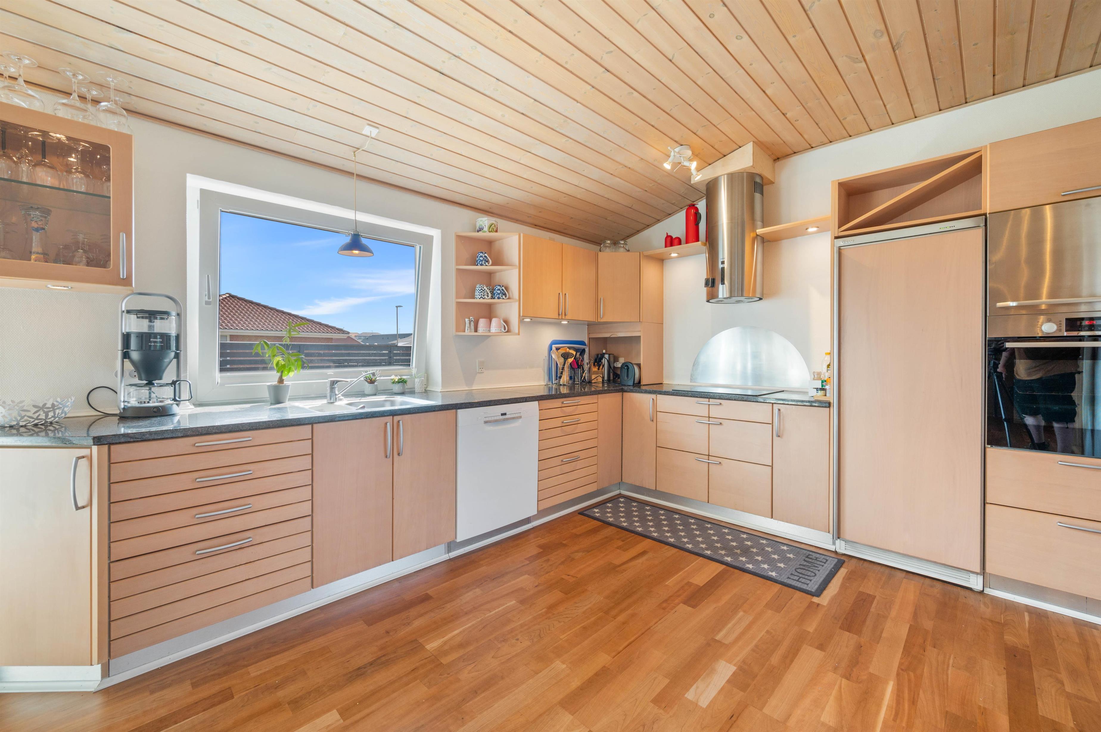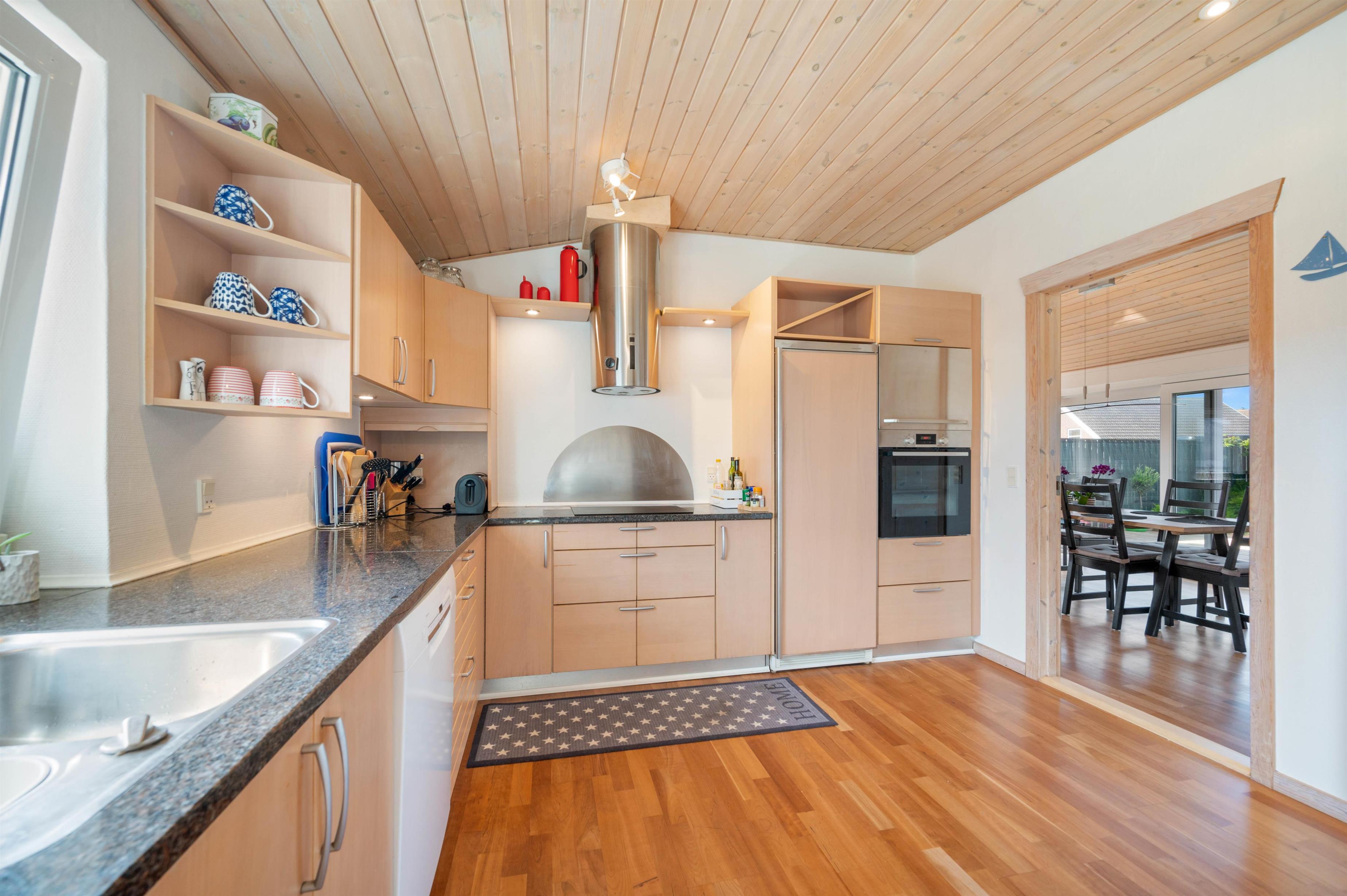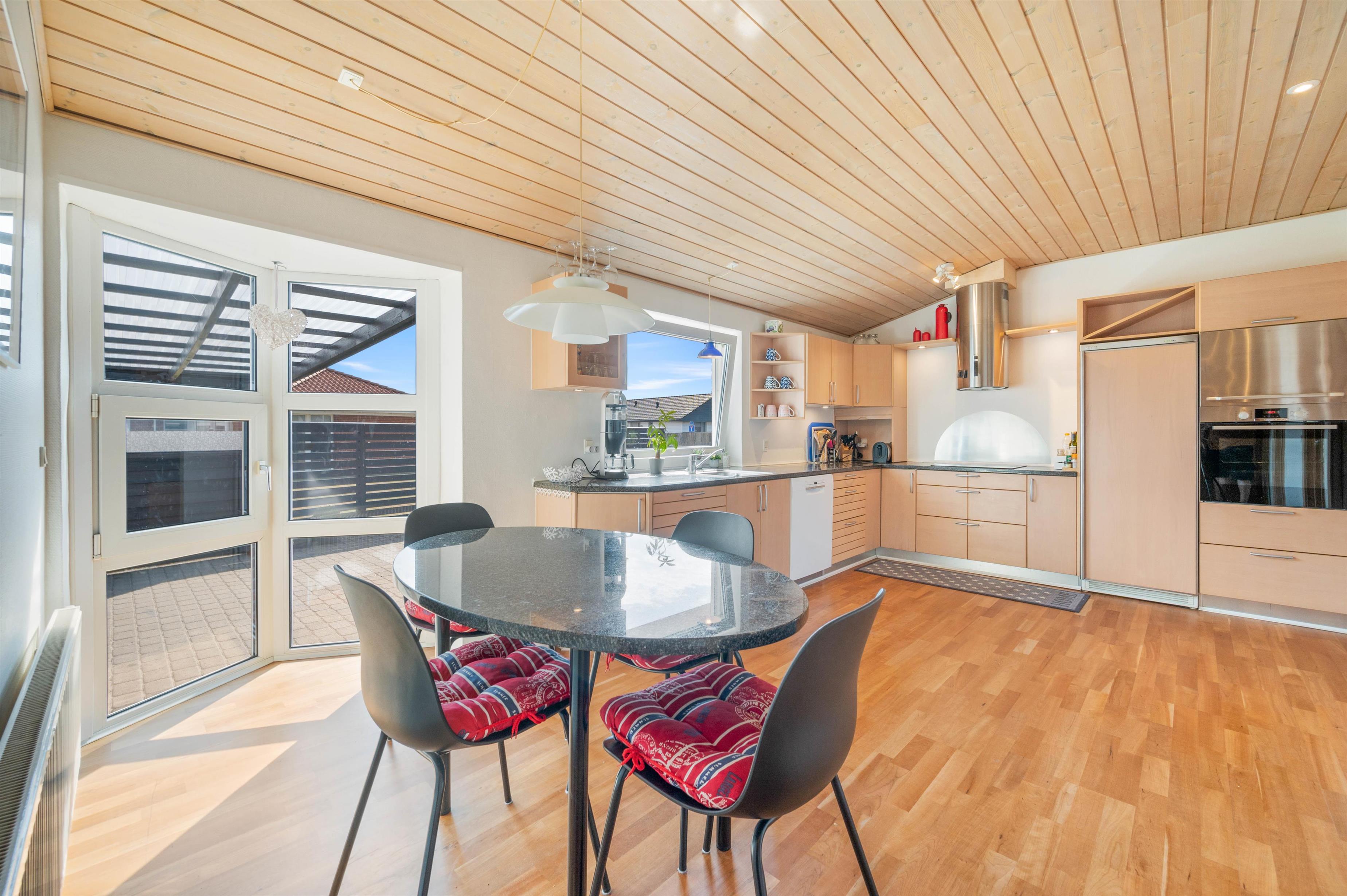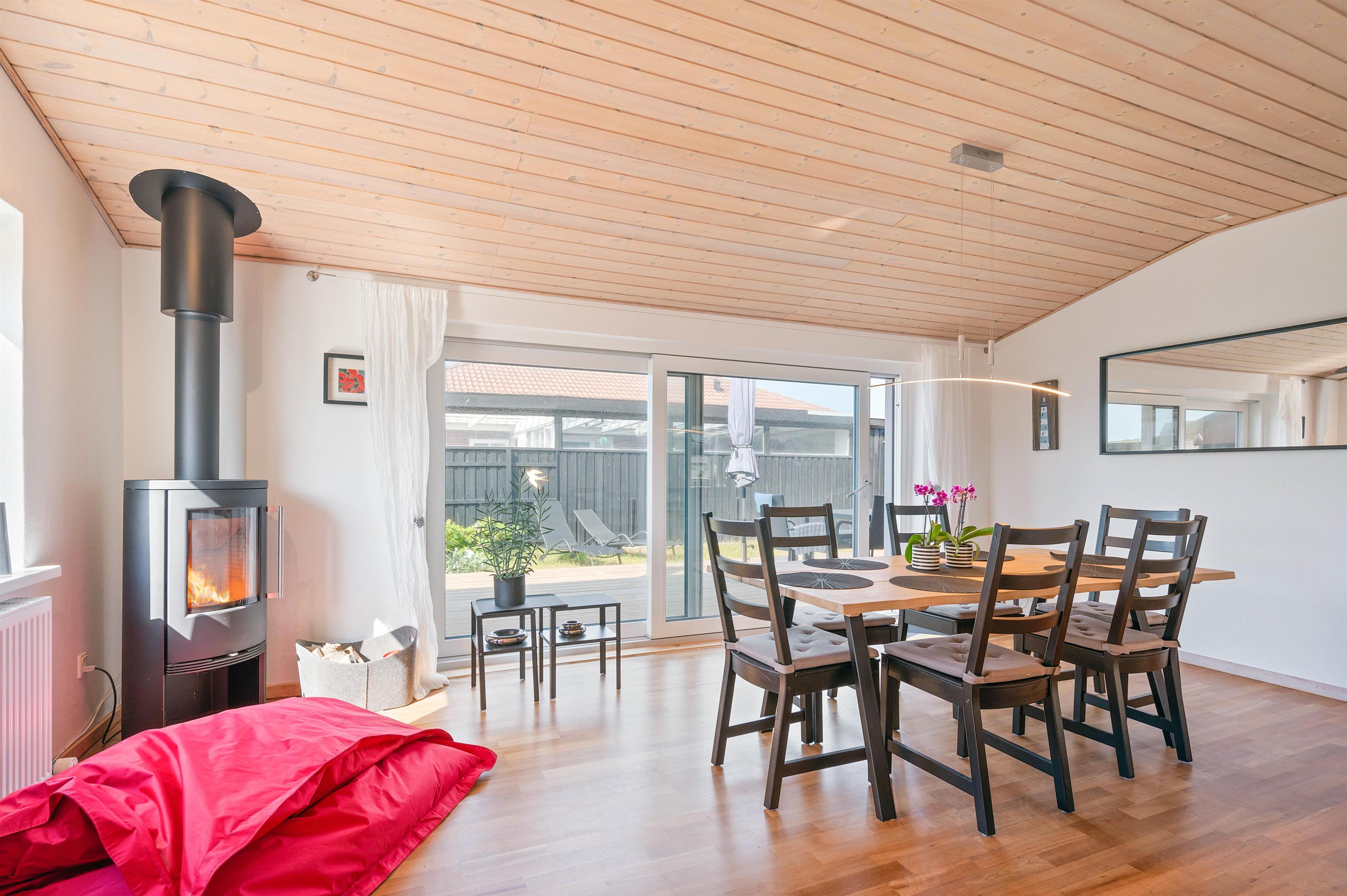 På Stormgade 55 i Hvide Sande ligger dette fine 8-personers feriehus på 155 m2, som er blevet renoveret i 2020. I sommerhuset finder du et veludstyret køkken med god plads til madlavningen efter en oplevelsesrig dag i Hvide Sande. I opholdsstuen er der lagt op til hygge på sofaen eller spil ved spisebordet, imens I får varmen fra brændeovnen. Fra opholdsstuen er der også udgang til den lukkede terrasse, hvor man kan nyde et lækkert grillmåltid eller spille kort i ly for vinden.